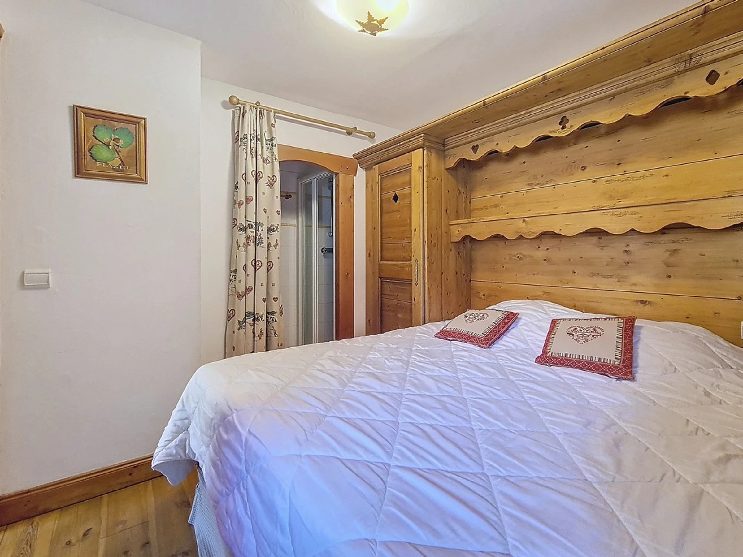 Dormitorio 1 con baño en suite: cama doble y baño con ducha en suite.