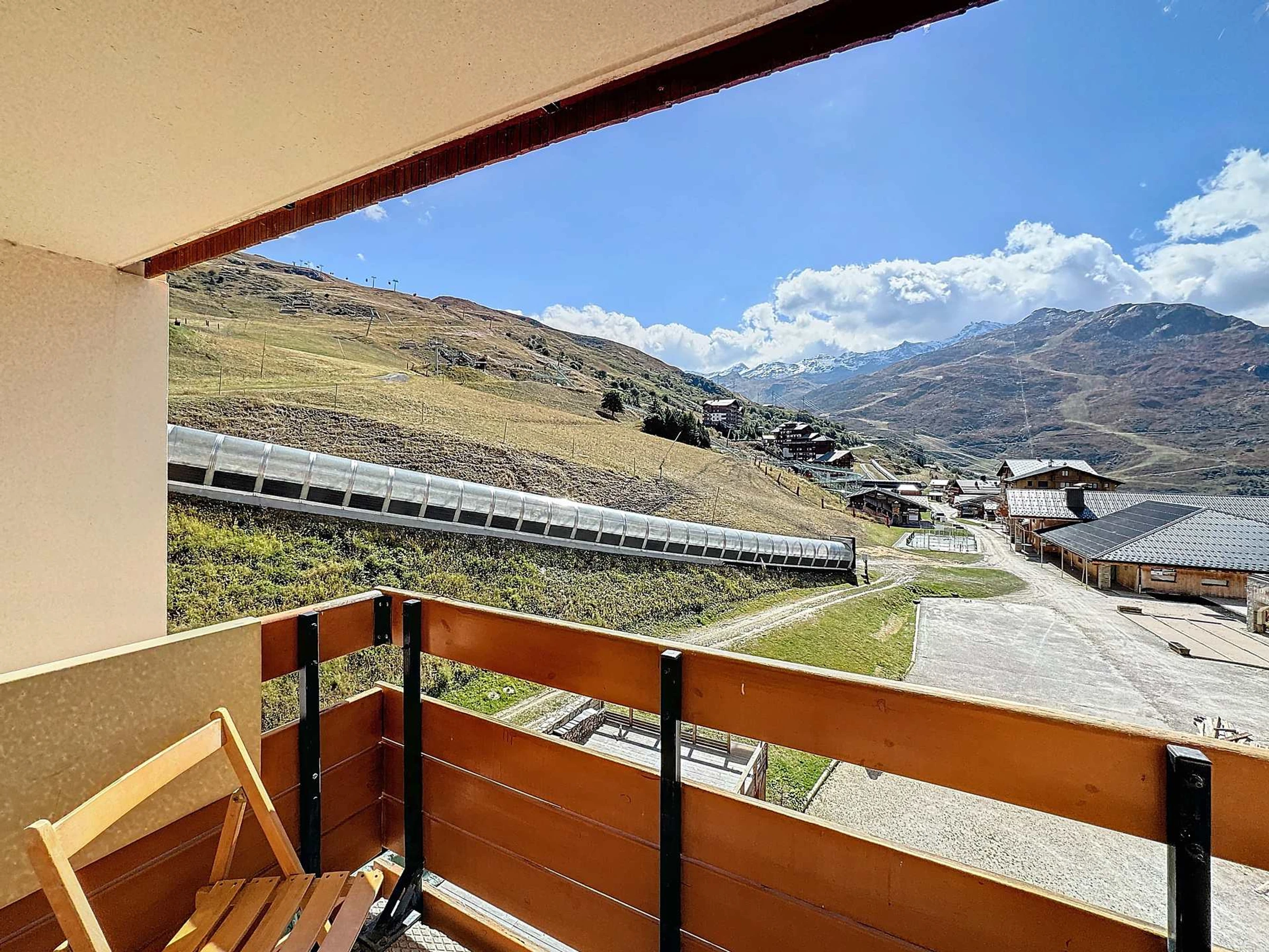 Estudio + cabaña, 4 plazas, 21 m², 4.ª planta con ascensor. Balcón orientado al sur con vistas a las pistas.