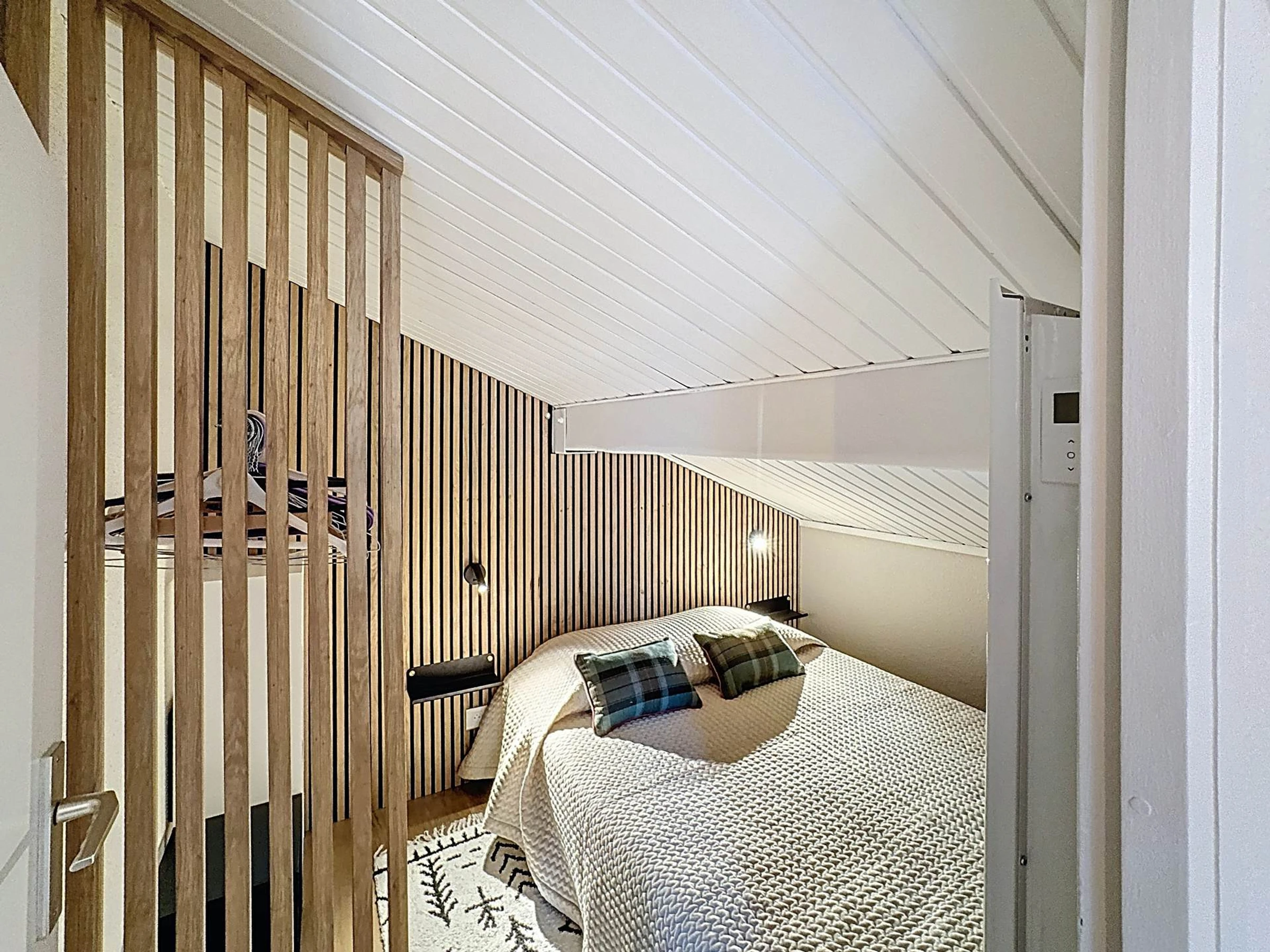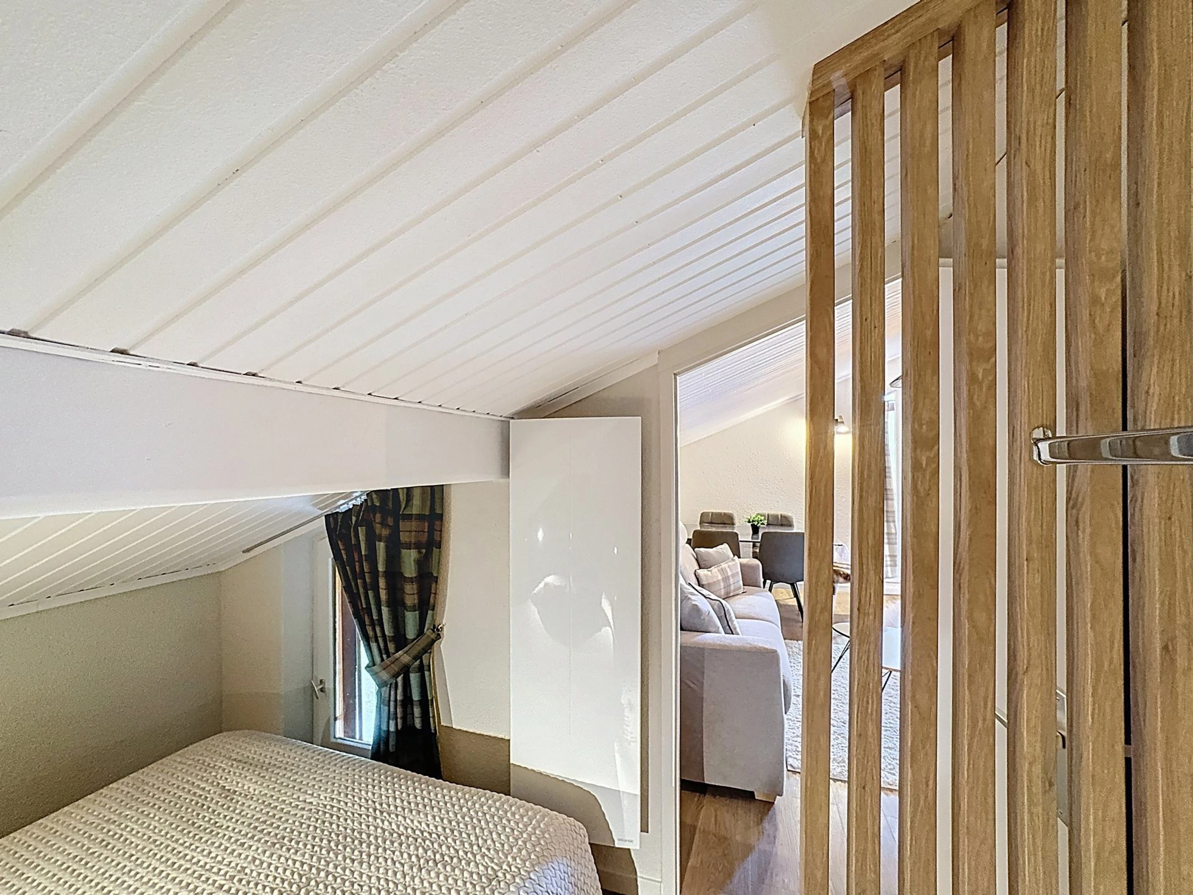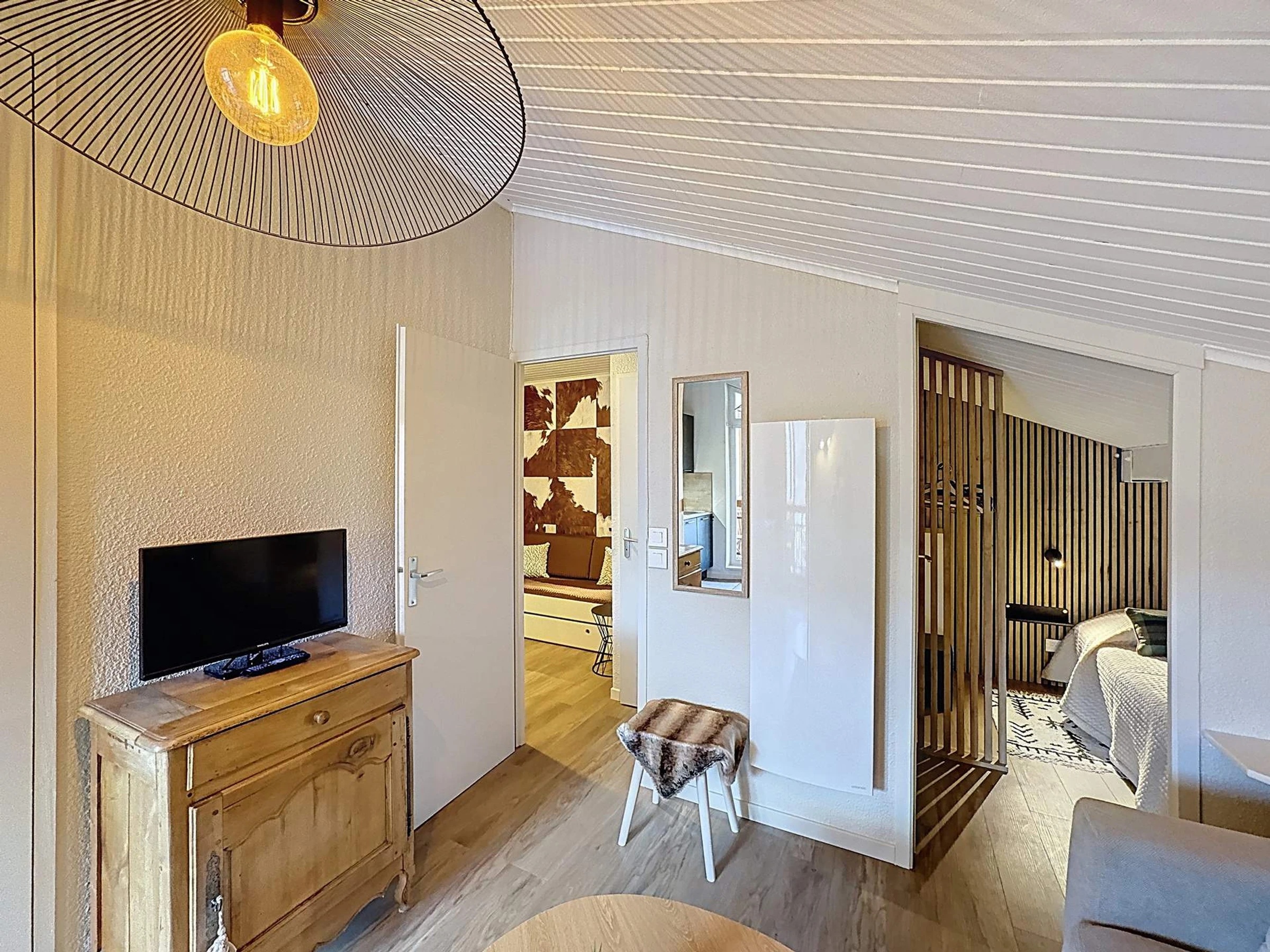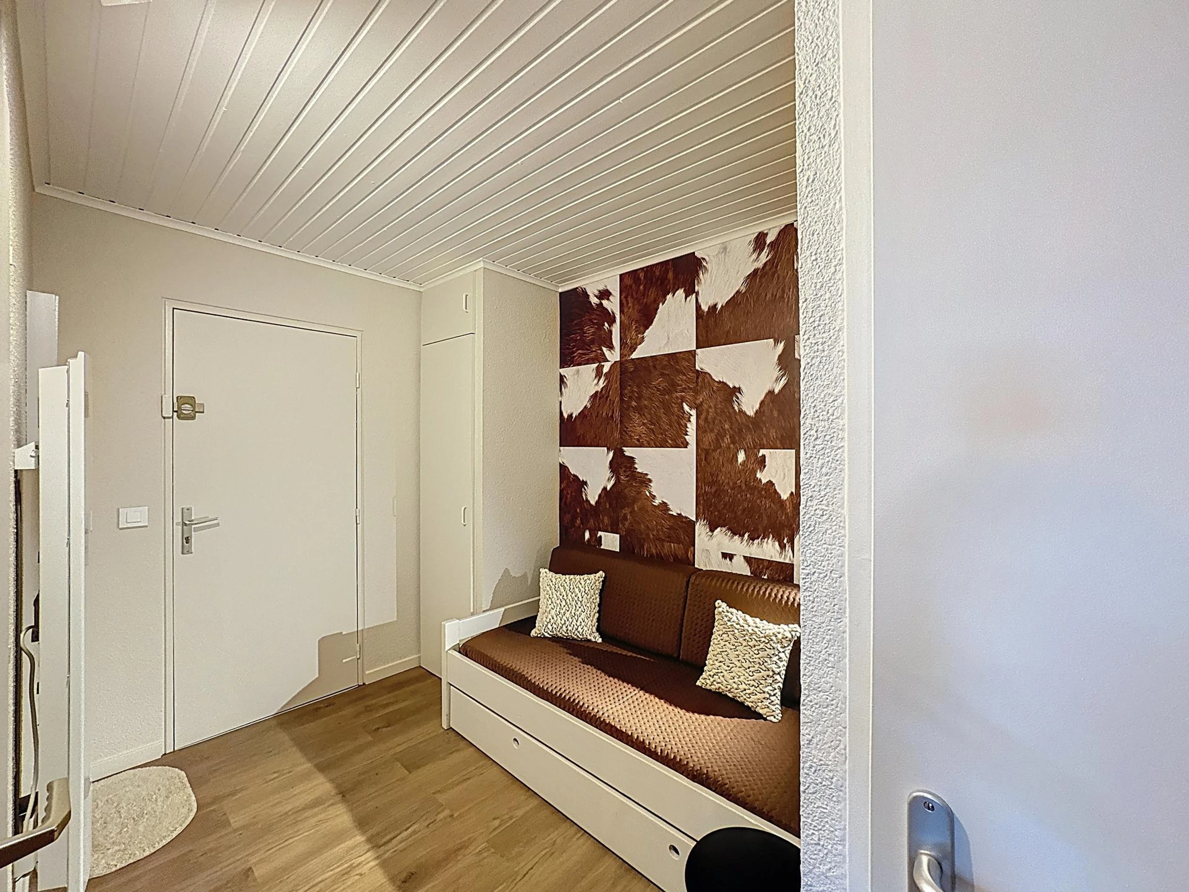 Precioso apartamento de 2 habitaciones + cabaña, 4 plazas, 30 m², reformado, 6.ª planta con ascensor, balcón orientado al sur y vistas a la montaña. Residencia situada a pie de pistas y con comercios.