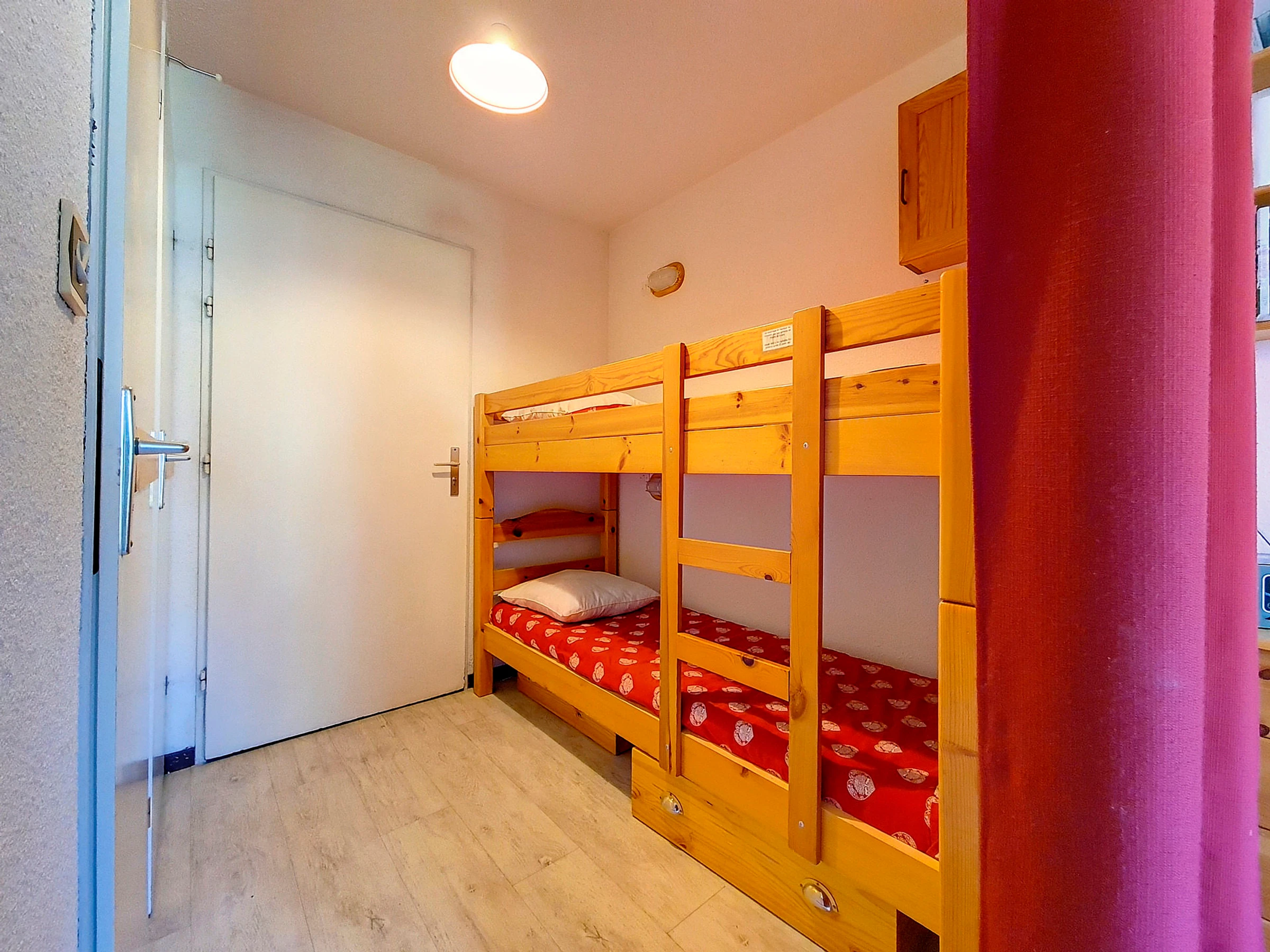 Zona de dormitorio en la entrada (separada por cortinas): 2 literas (70 cm de ancho).