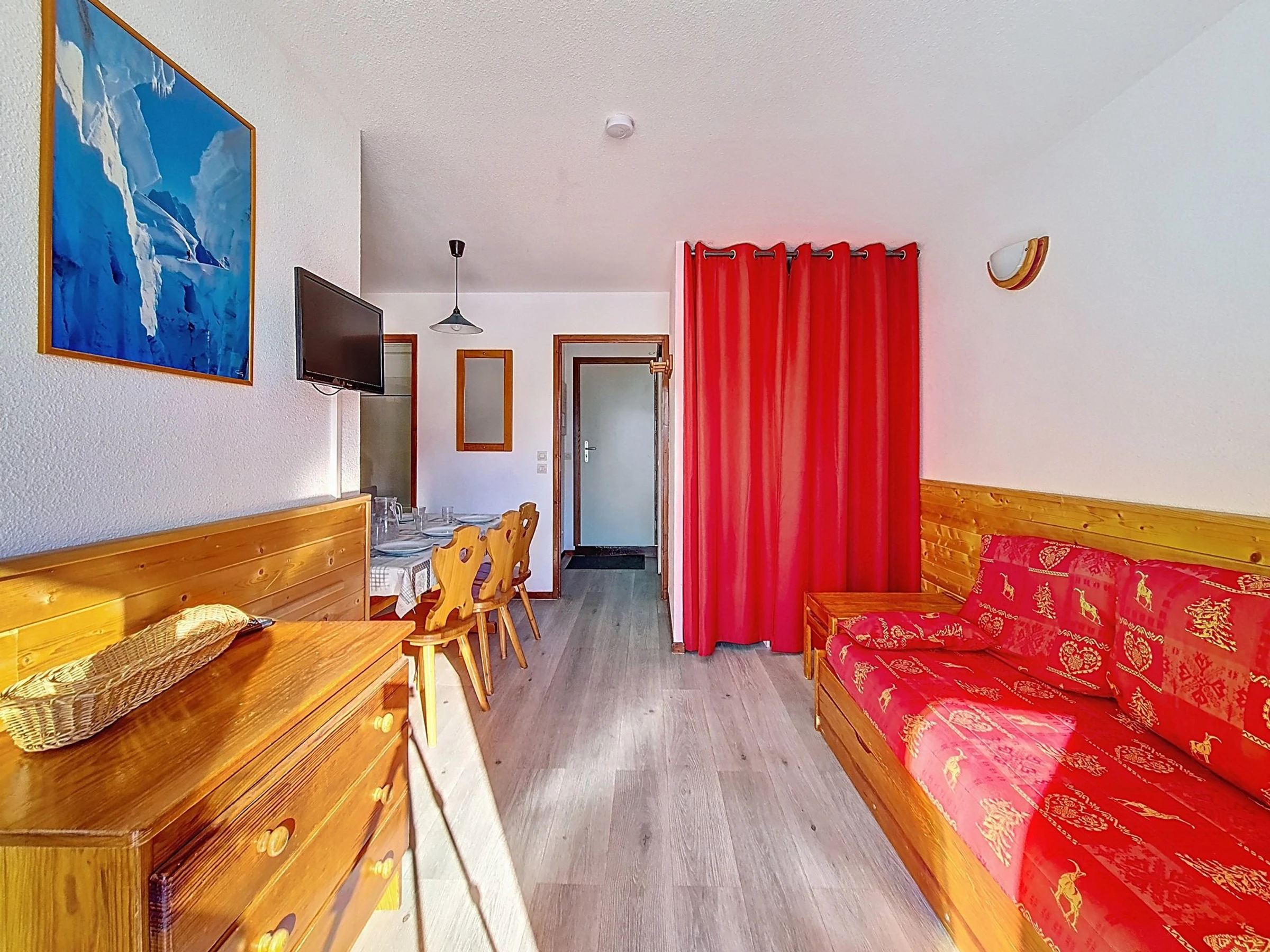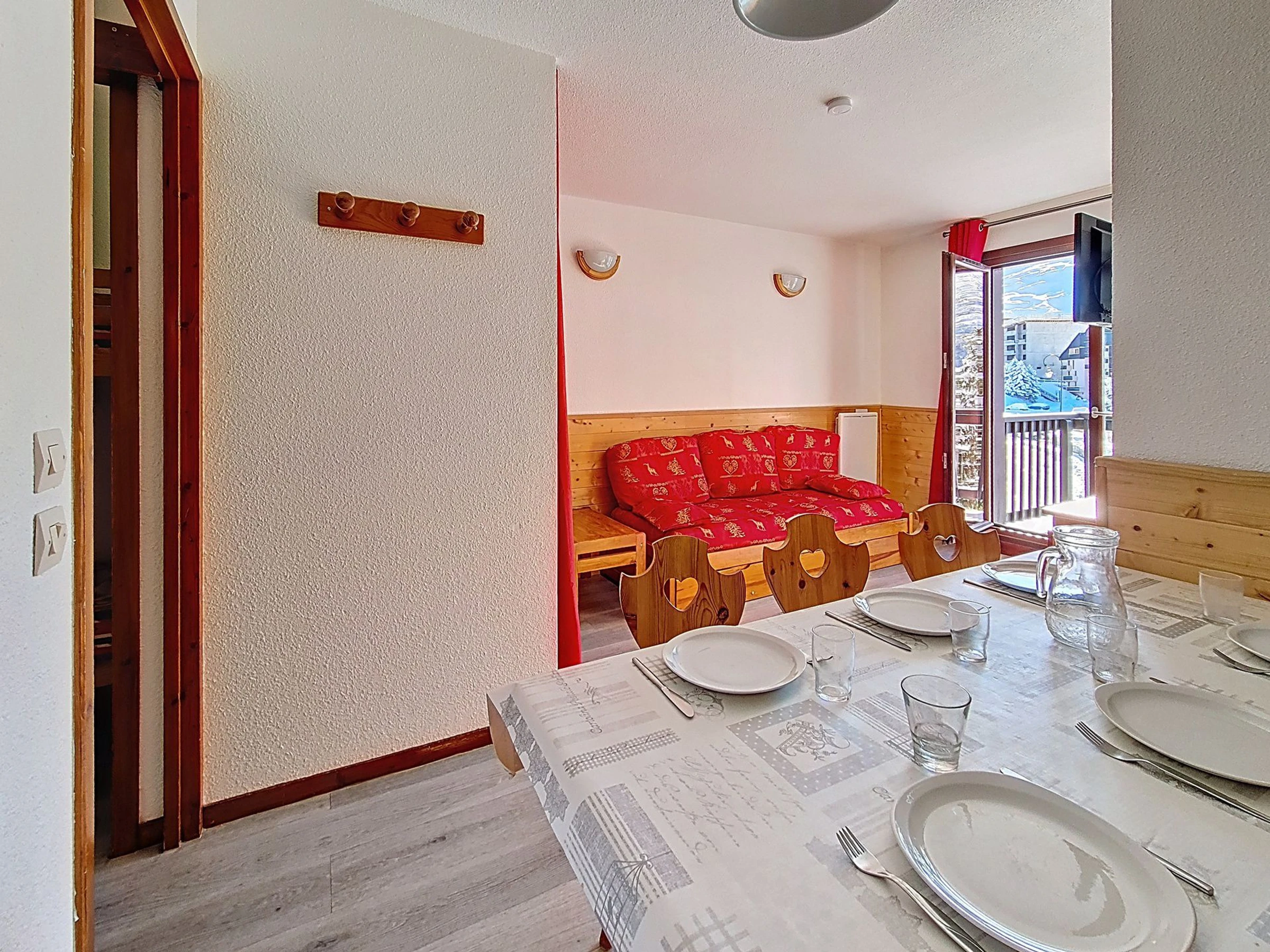 Apartamento de 2 habitaciones y cabaña de 30m² para 6 personas. Se encuentra en el 3er piso, con un balcón orientado al sur.