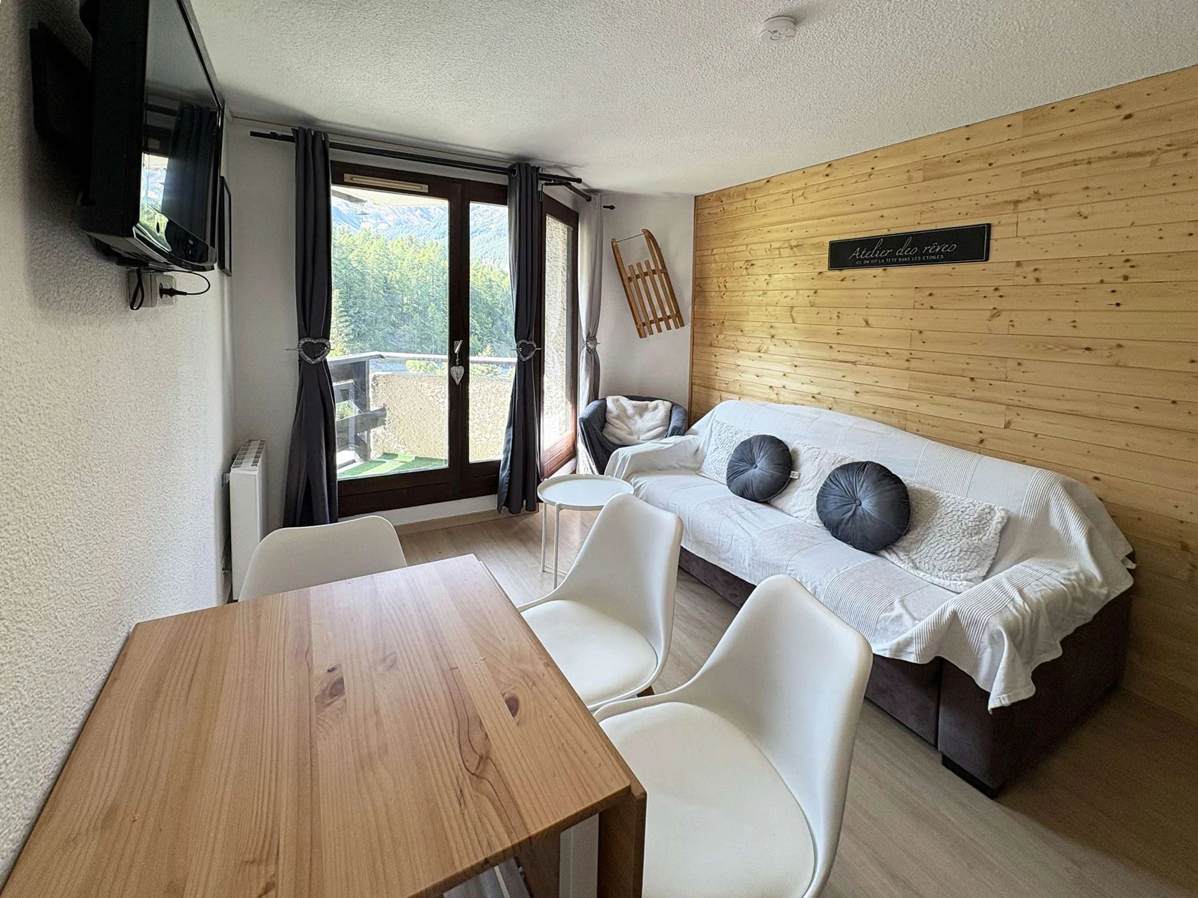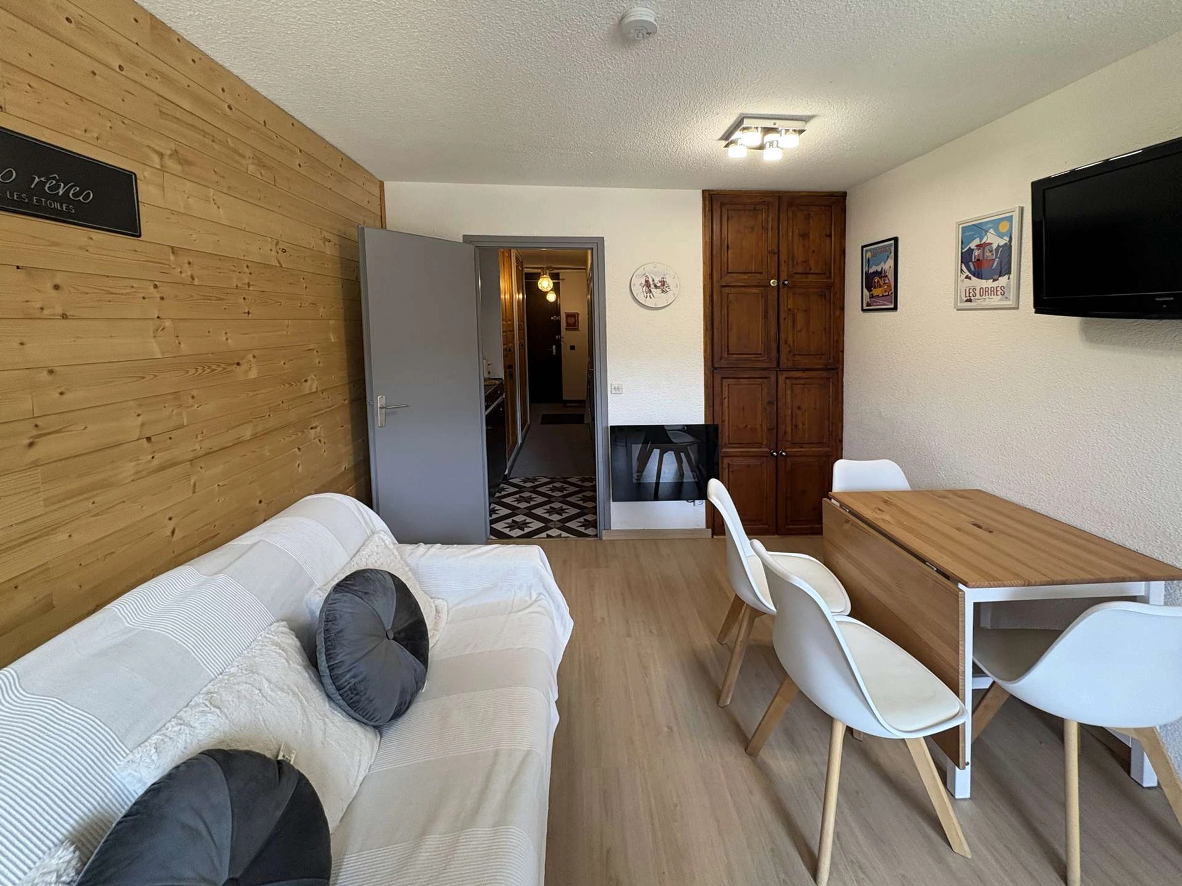 En la residencia Les Gradins, en la plaza central, acceso directo a las pistas de esquí. Estudio equipado para 4 personas situado en el corazón del complejo en el 1er piso con ascensor que consta de una entrada con 2 literas individuales, una sala de estar con 1 sofá cama doble, una zona de cocina, un baño y un WC separado. Balcón orientado al sur con una hermosa vista abierta. Acceso directo a todos los comercios y a la plaza central del complejo.