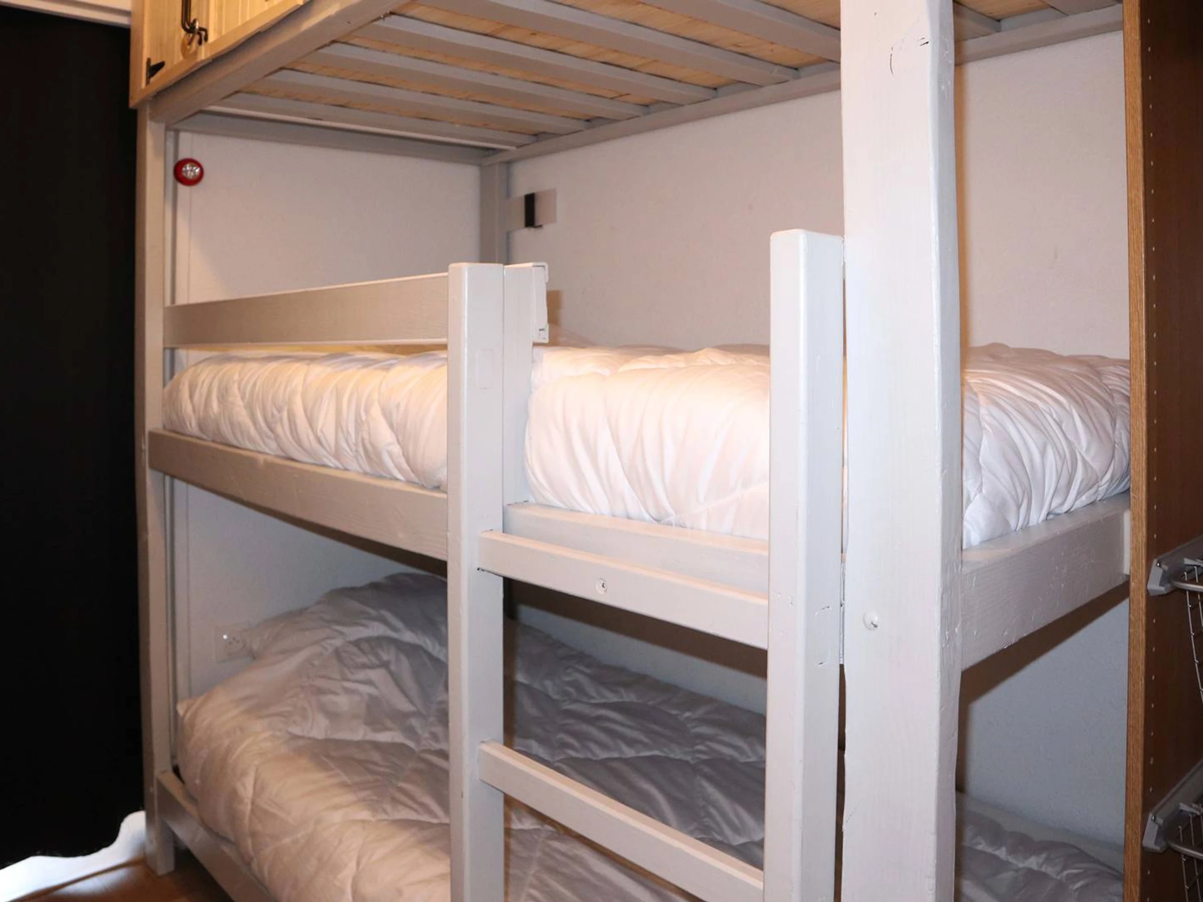 En el corazón del complejo, en el octavo y último piso de la residencia con ascensor, ski-in ski-out, cerca de actividades y tiendas, estudio muy bonito, completamente renovado, bien equipado para 4 personas, que consta de un rincón de montaña con 2 literas 1 plaza en la entrada, una sala de estar con un banco convertible para 2 personas, una zona de cocina equipada abierta al salón, un baño y WC separado con lavadora y secadora. Balcón orientado al sur que ofrece una hermosa vista abierta.