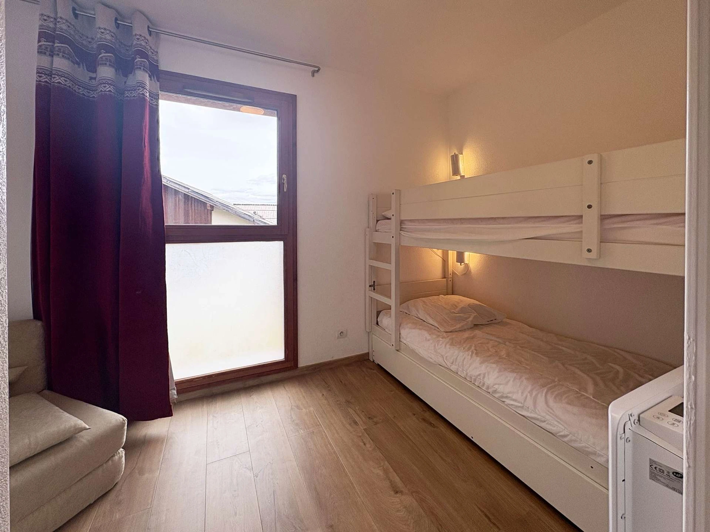 LES ORRES 1800 - RESIDENCIA de lujo con piscina, sauna y hammam - gran chalet muy confortable con chimenea, magnífica terraza, ski-in-ski-out, que comprende: nivel de entrada: pasillo con WC, gran salón con 1 sofá cama doble y chimenea, gran cocina abierta - escaleras de madera que conducen al primer piso: baño, aseo y WC separado, 2 dormitorios con 2 camas individuales, 2 dormitorios con 1 cama doble (160).