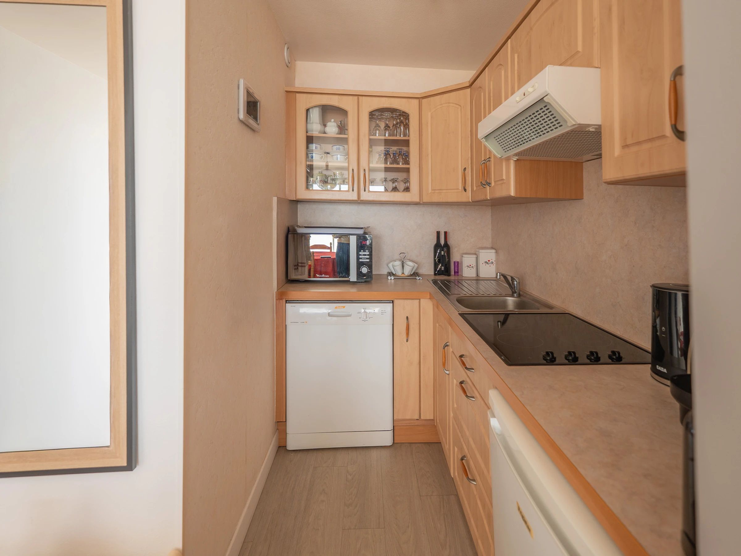 En el paseo marítimo de Les Sables d'Olonne, frente a la playa, en la séptima planta de la residencia con ascensor, este apartamento incluye un baño con ducha, inodoro y lavadora; una cocina con vitrocerámica, campana extractora, microondas, frigorífico-congelador, lavavajillas, cafetera, tostadora y lavavajillas. Un dormitorio con vistas al mar cuenta con una cama de 140 x 190 cm. Encontrará un salón con un sofá cama de 140 x 190 cm, mesa y televisión, y un balcón amueblado con vistas al mar. Referencia APPA 116. No se proporciona ropa de cama.