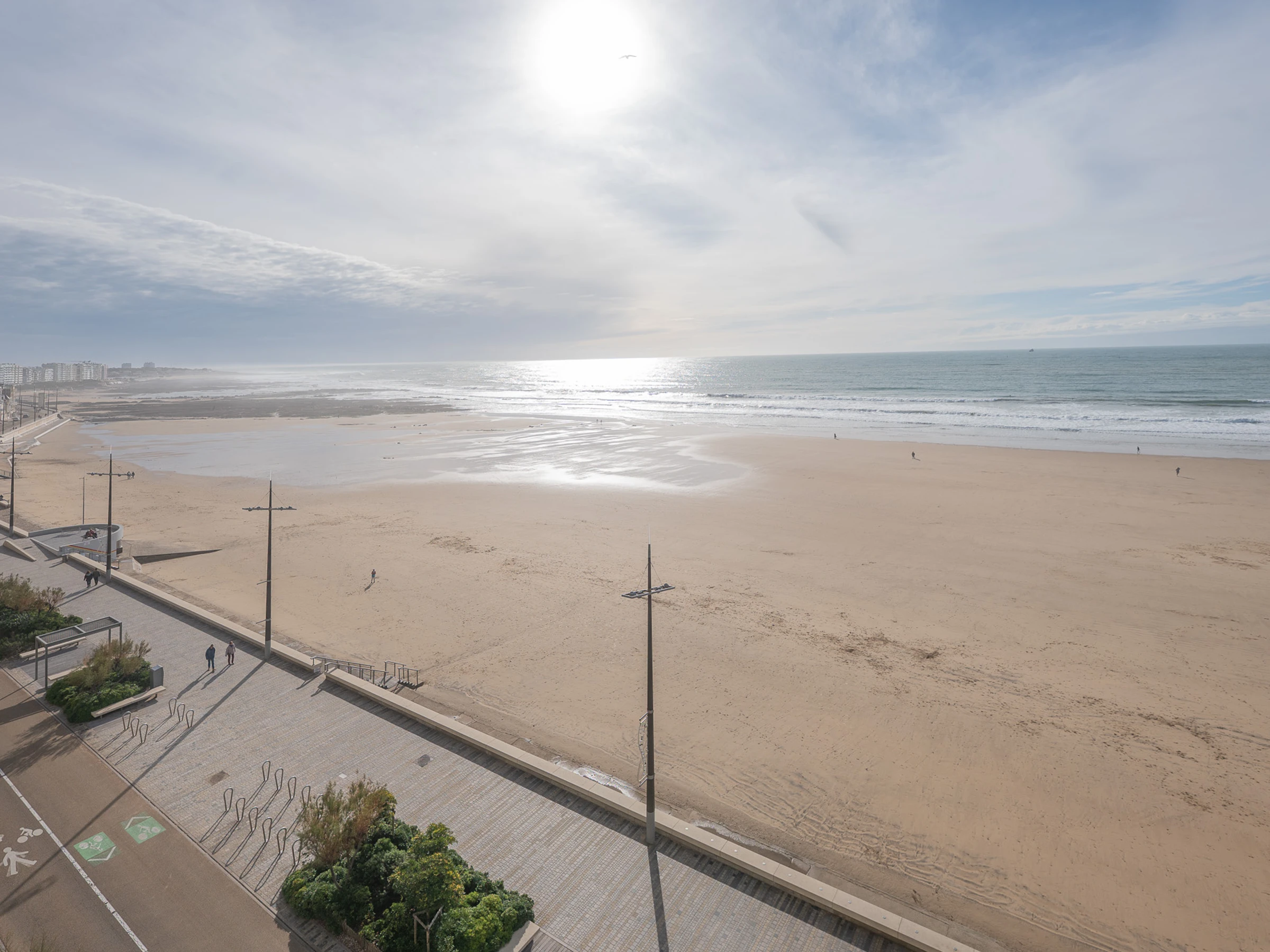 En el paseo marítimo de Sables d'Olonne, frente a la playa, cerca de tiendas y restaurantes,