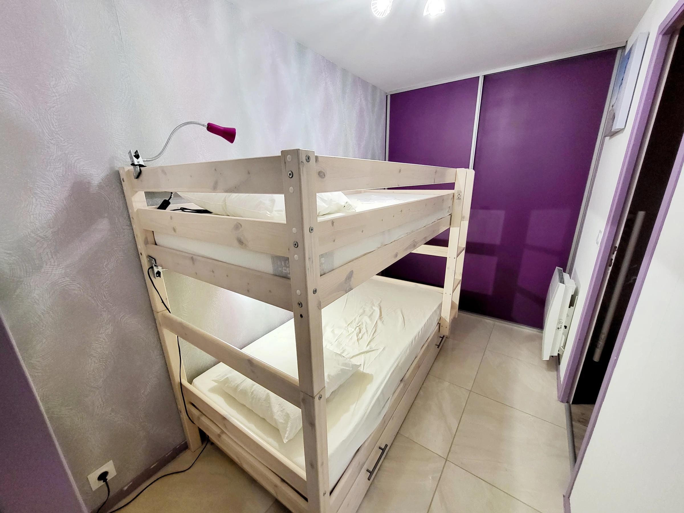 Ubicado en el 1er piso con ascensor, este apartamento le seducirá por su cuidada decoración y su funcional distribución. El luminoso salón está asociado a una zona de cocina totalmente equipada, un acogedor dormitorio con una cama de 160 cm garantiza un descanso reparador, mientras que una alcoba con dos literas de 90 cm ofrece espacio adicional para niños o amigos. El cuarto de baño con WC completa este confortable conjunto.