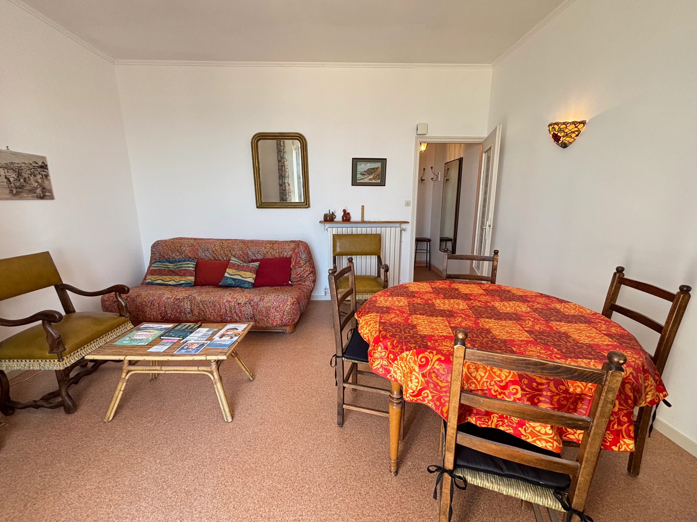 Alquiler en el centro de la ciudad, en pleno paseo marítimo, en un edificio antiguo cerca de Les Halles. Este apartamento de un dormitorio de aproximadamente 40 m² se encuentra en la 1.ª planta (sin ascensor) y consta de recibidor, salón con sofá, televisión y balcón con vistas al mar. La cocina está equipada con cocina de gas de cuatro fuegos, horno y frigorífico. El baño dispone de lavadora. El dormitorio da al pasillo y se divide en dos partes: la primera sin ventanas y con una cama doble, y la segunda con una ventana a la Rue du Remblai y dos literas. No se proporciona ropa de cama. WiFi gratuito APPA 127.