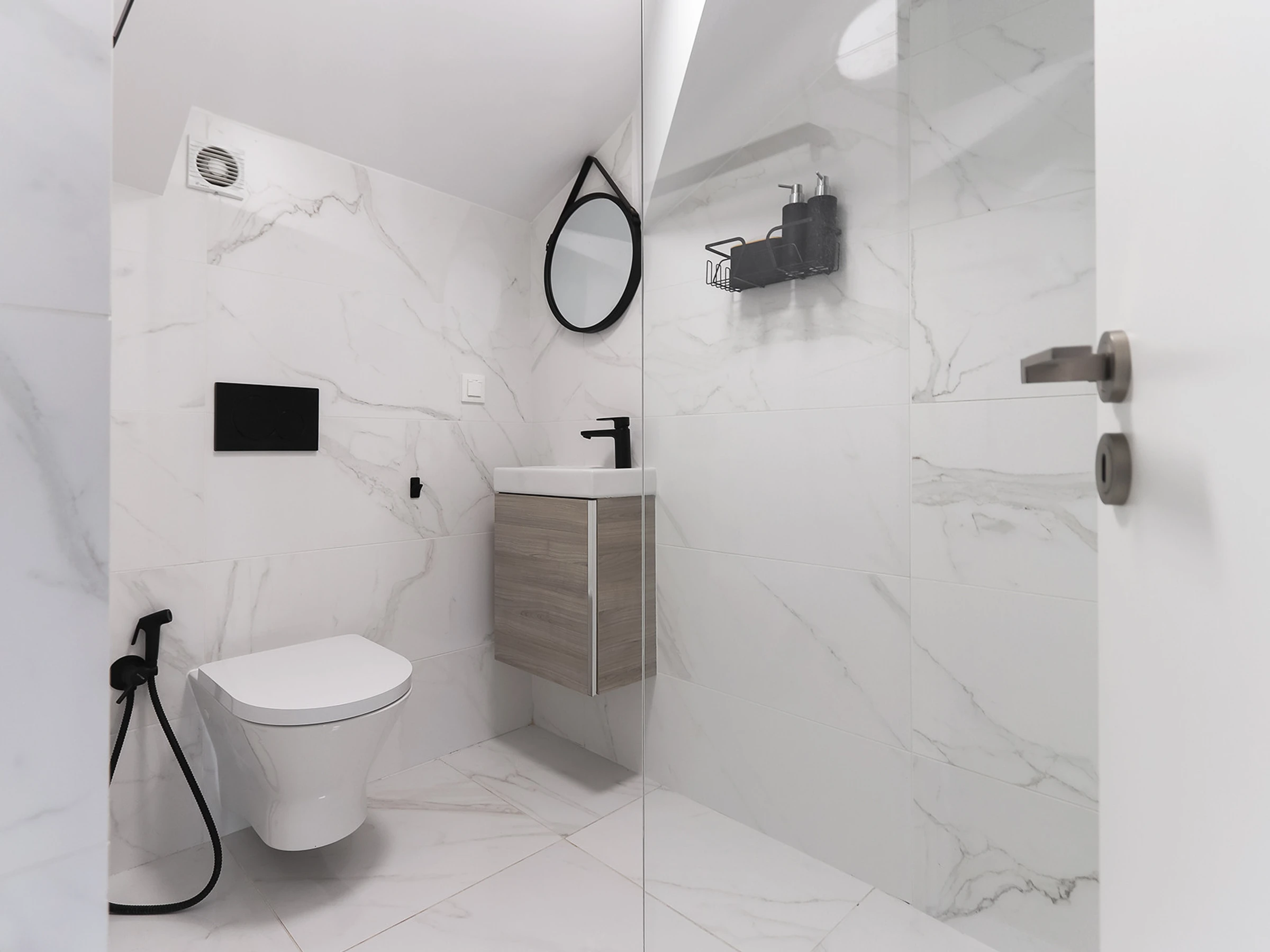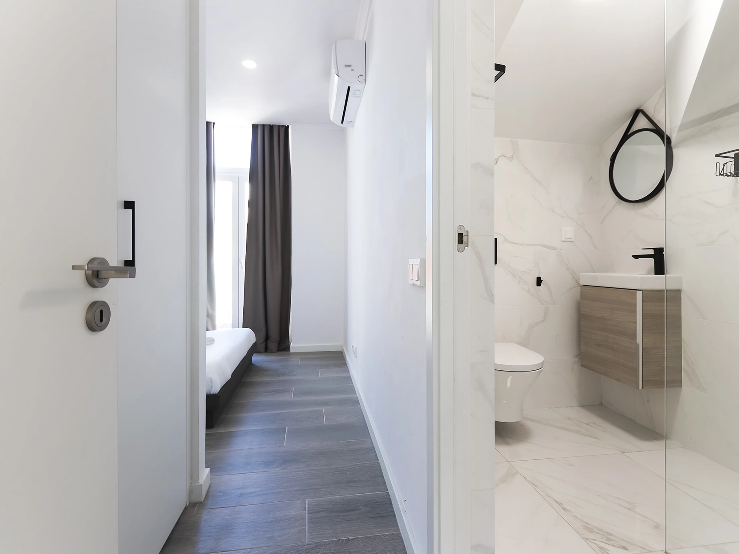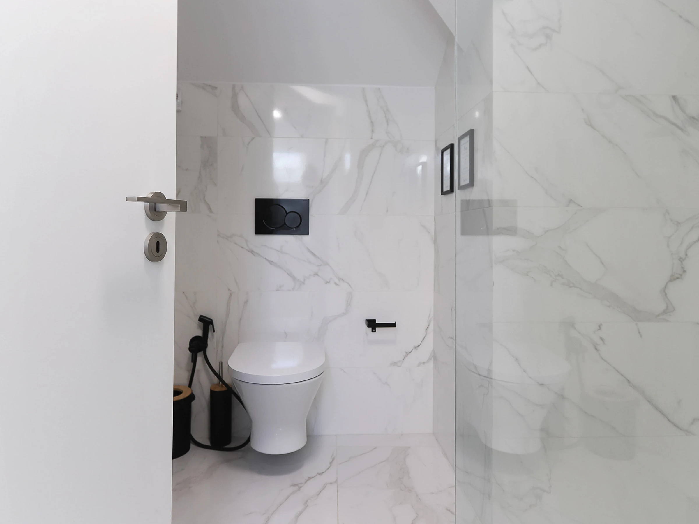 El apartamento cuenta con 2 amplias habitaciones, cada una con una cómoda cama doble, proporcionando un descanso reparador después de un día de exploración. Además, dispone de 3 baños, uno de ellos con ducha, y otro solo con inodoro, garantizando la comodidad de todos los huéspedes.