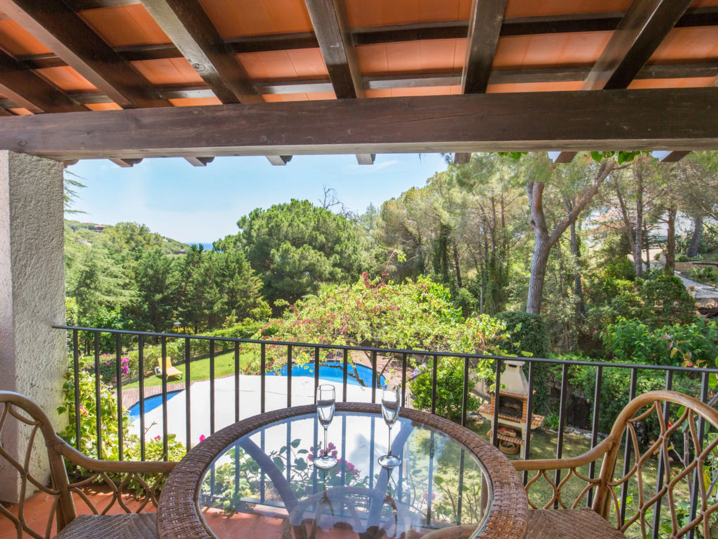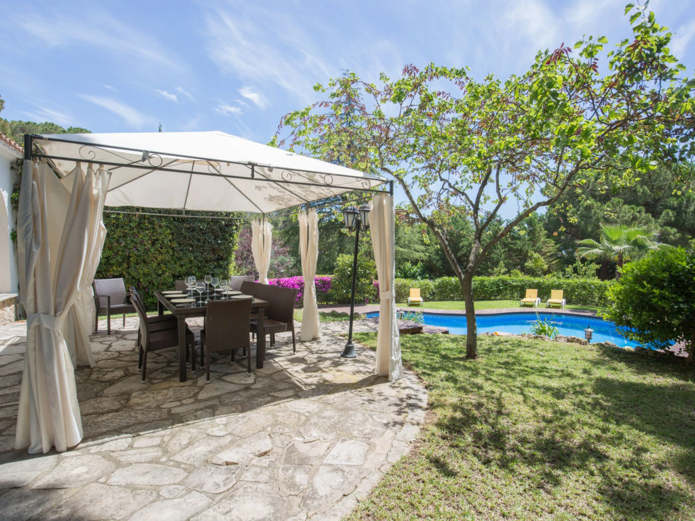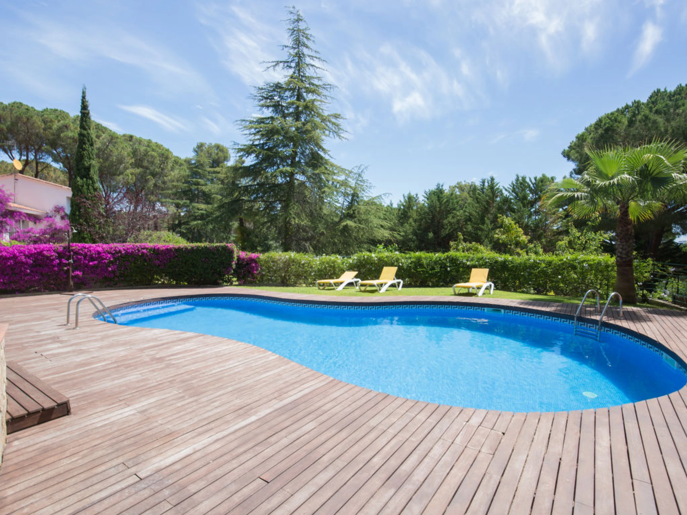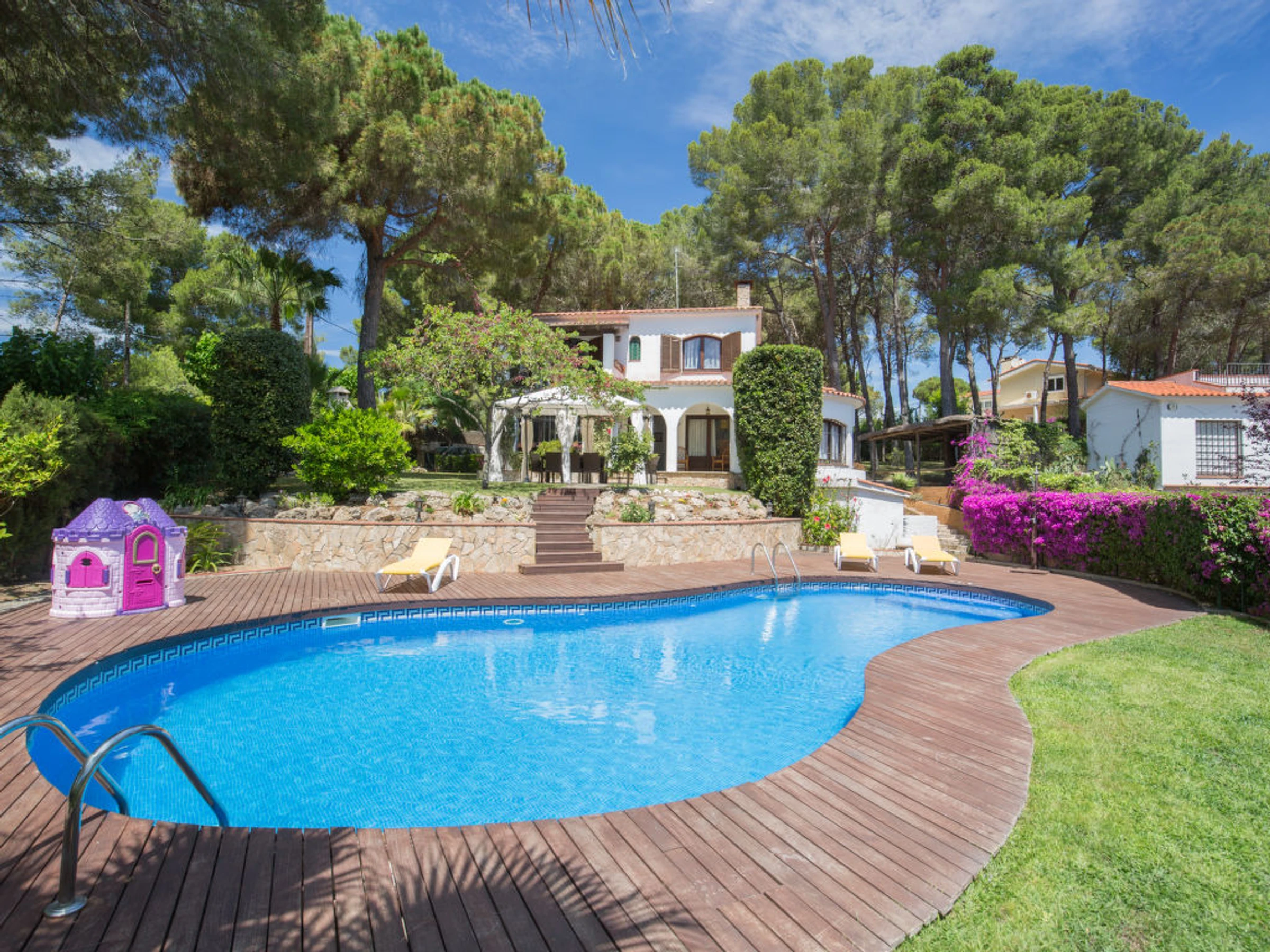 Villa "Palangre", muy bonita, lujosa de 3 plantas. En la localidad, a 500 m del centro de Lloret de Mar, lugar soleado, a 150 m del mar, a 150 m de la playa. Privado: terreno en estado natural 250 m2, jardín natural, bonito jardín para relajarse, piscina en forma de riñon (9 x 5 m,[hidden].) con escalera interior. Ducha/WC en zona de piscina, tobogán, barbacoa, parque infantil (tobogán, columpio), garaje individual junto a la casa posibilidad de aparcamiento en la calle. Tienda 500 m, supermercado 2 km, restaurante, panadería 500 m. Puerto deportivo 2 km, campo de golf (18 hoyos) 8 km, minigolf 2 km. Atracciones en los alrededores: Waterworld Lloret de mar 6 km, Pueblo medieval de tossa de mar 9 km, Marinland blanes 12 km. A tener en cuenta: coche indispensable. Adecuado para familias. Grupos de jóvenes sólo bajo petición. Residencia con vigilancia.