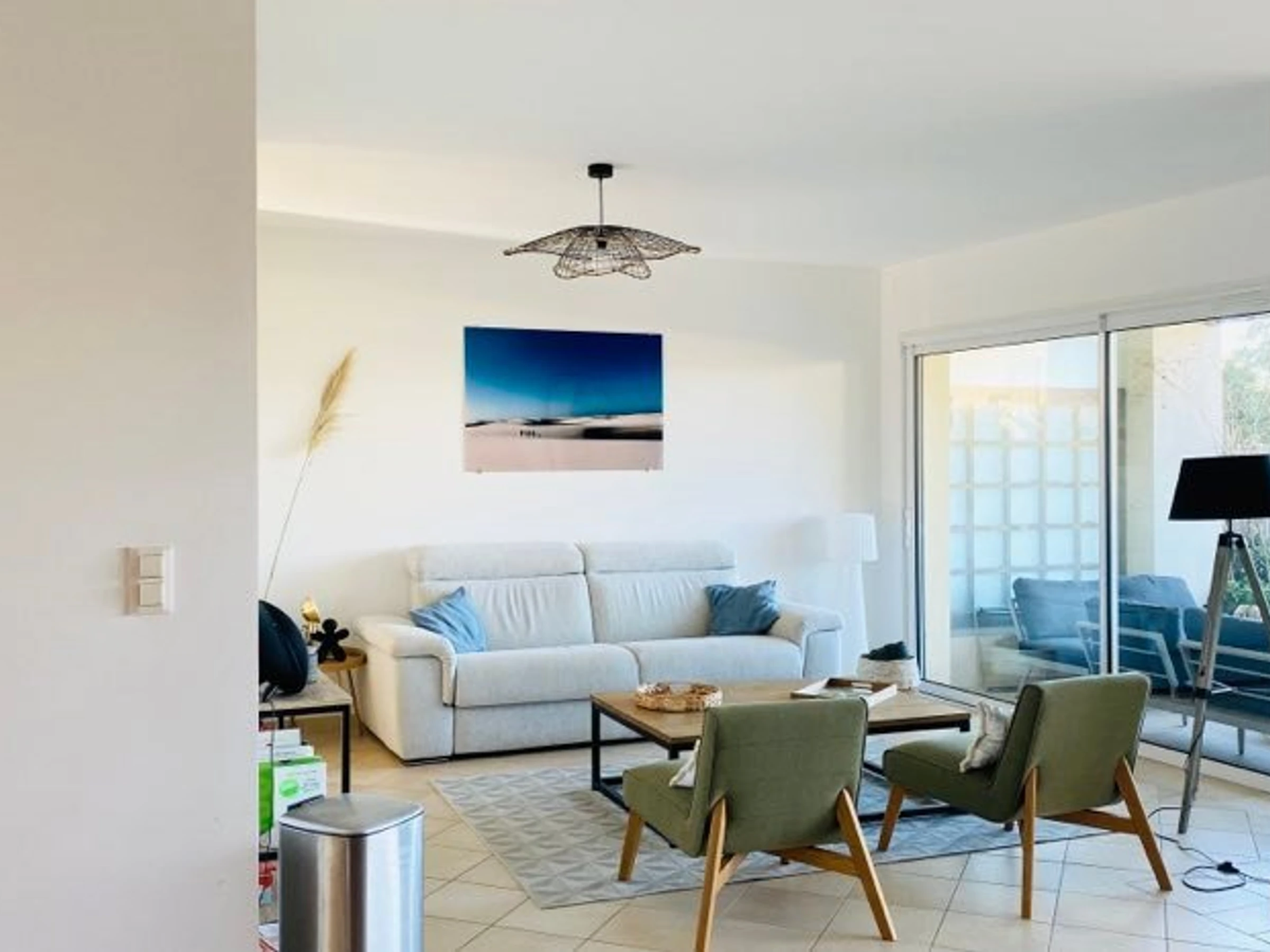 El apartamento, en la planta baja, se compone de una cocina equipada, un salón con sofá convertible, dos baños con WC, un primer dormitorio con cama de matrimonio (160), un segundo dormitorio con una cama individual y una cama doble. cama.
