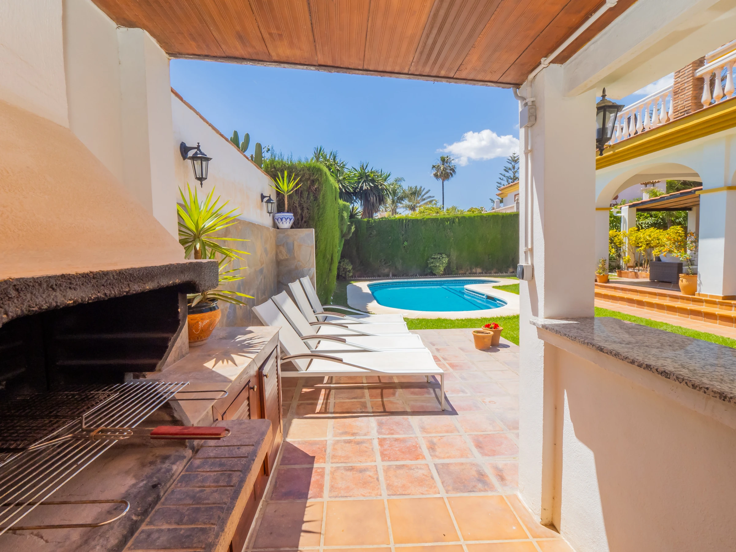 Disfruta de unas vacaciones inolvidables en esta exclusiva villa situada en una de las mejores urbanizaciones de Málaga, ideal para familias y amantes del confort. Villa Yedra Guadalmar te ofrece una parcela totalmente vallada con muros altos que garantizan tu privacidad, junto a una piscina privada climatizada con jacuzzi y hamacas de alta calidad para que te sientas como un rey 👑. La zona de barbacoa exterior es perfecta para preparar deliciosas comidas al aire libre, mientras vigilas a los niños que juegan cerca.
