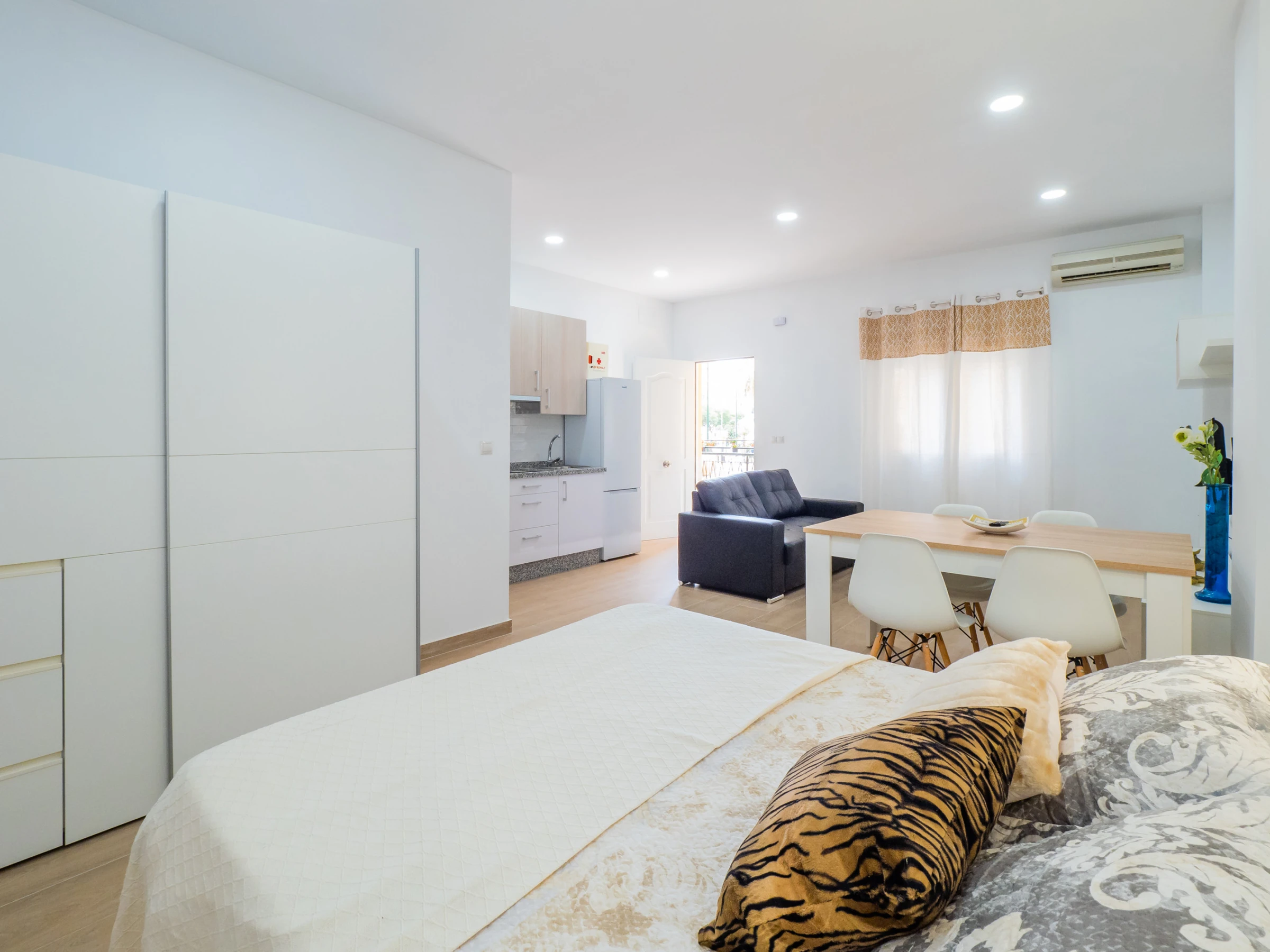 Estudio moderno y acogedor en Málaga, perfecto para parejas que buscan comodidad, proximidad a la playa y excelente conexión con transporte público para descubrir el centro y alrededores. 🌞🌊