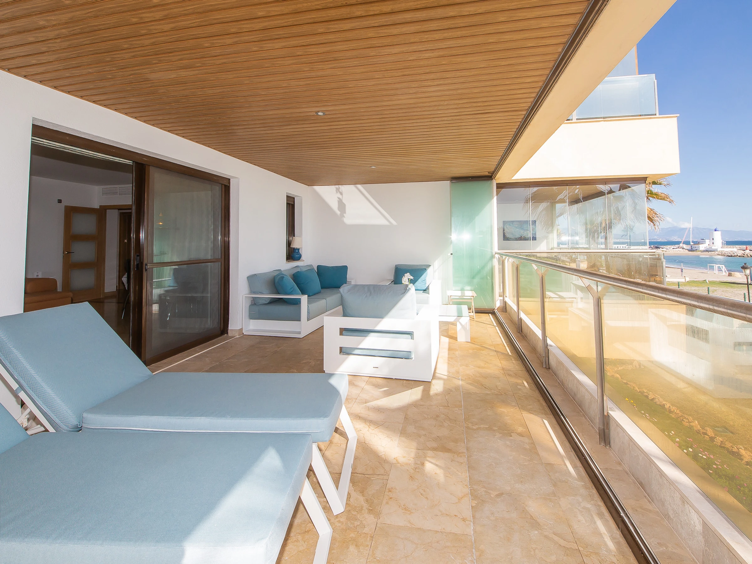 El complejo está situado en primera línea de playa y cuenta con piscina, sauna, aparcamiento subterráneo y está a pocos pasos del puerto deportivo de Duquesa o del pequeño pueblo de Castillo, ambos con una amplia selección de restaurantes.