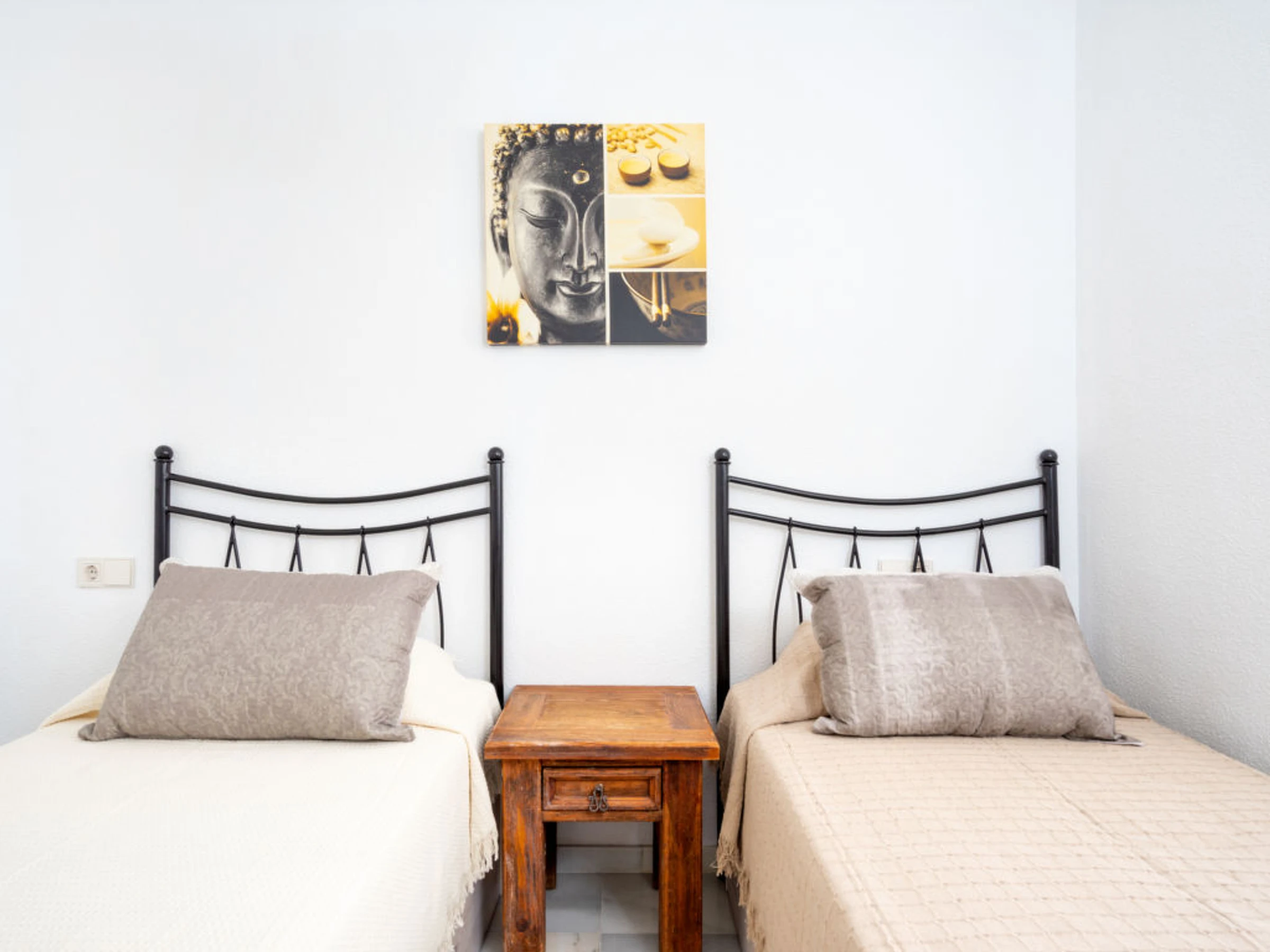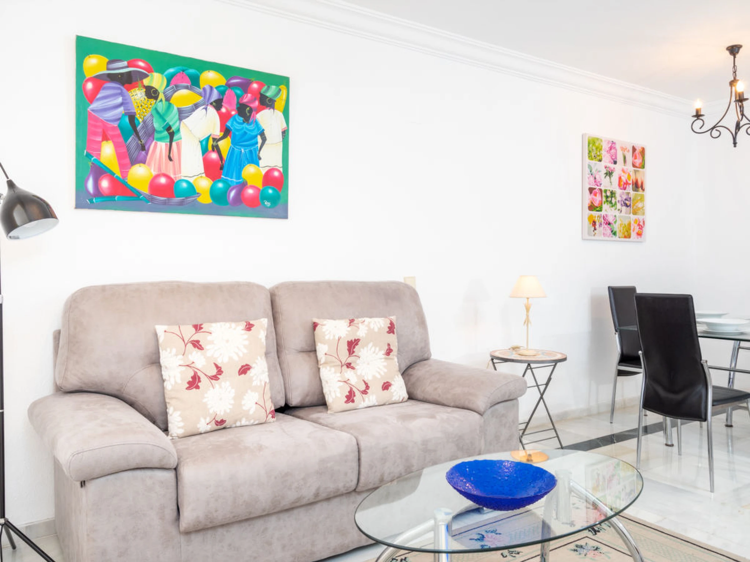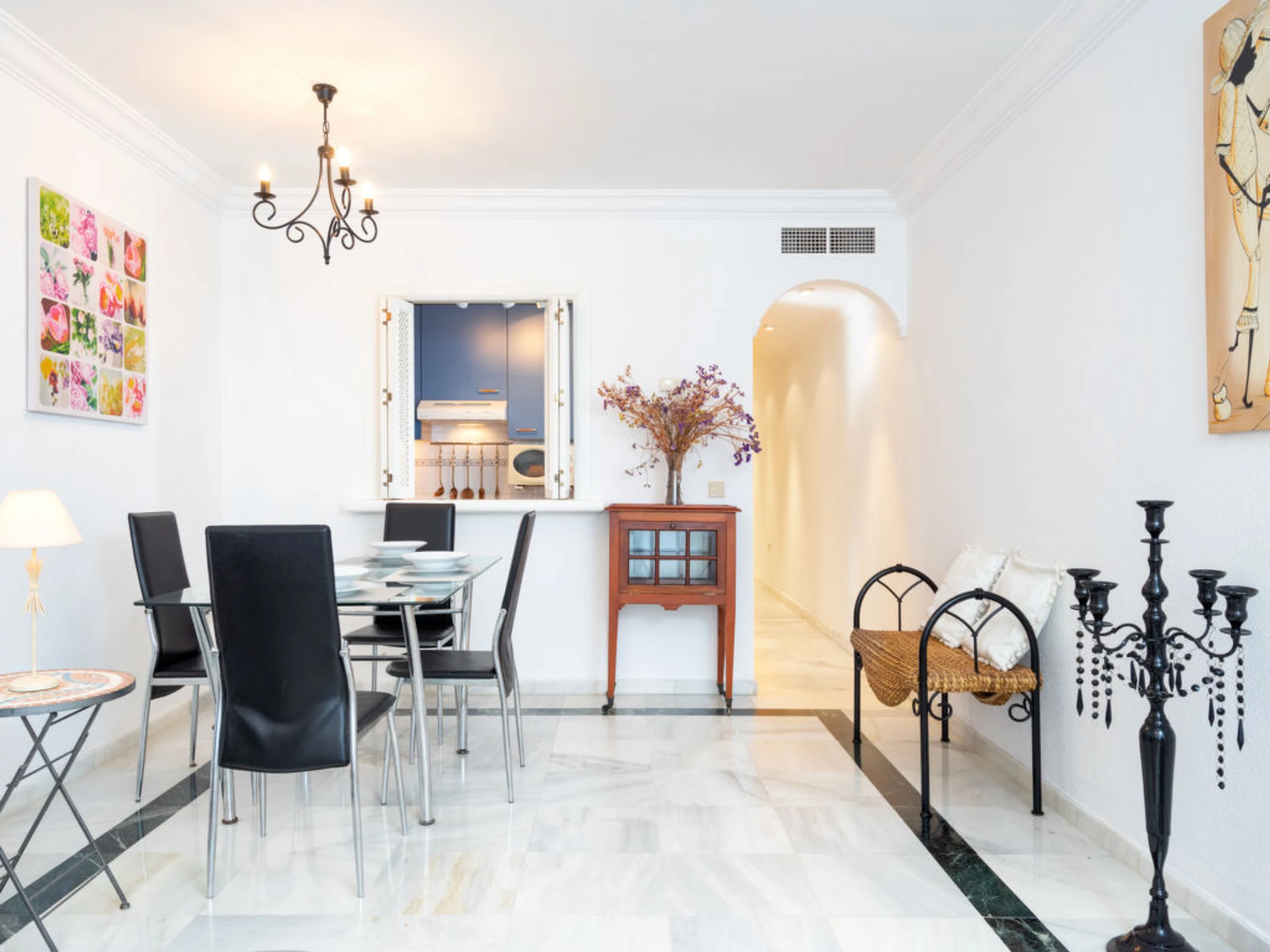 "Costa Nagueles", apartamento de 2 estancias 63 m2 en el 3° piso, orientación sur. Vivienda adecuada para 2 adultos. Con mobiliario confortable: salón-comedor con TV y TV satélite. Salida a la terraza. 1 dorm. con 2 camas. Cocina (4 fogones, horno, lavavajillas, microondas, congelador) con pasa-platos. Baño/bidet/WC. Aire acondicionado, aire caliente. Terraza 10 m2. Vista al mar y a la piscina. El alojamiento dispone de: lavadora. Plaza de aparcamiento. [hidden]