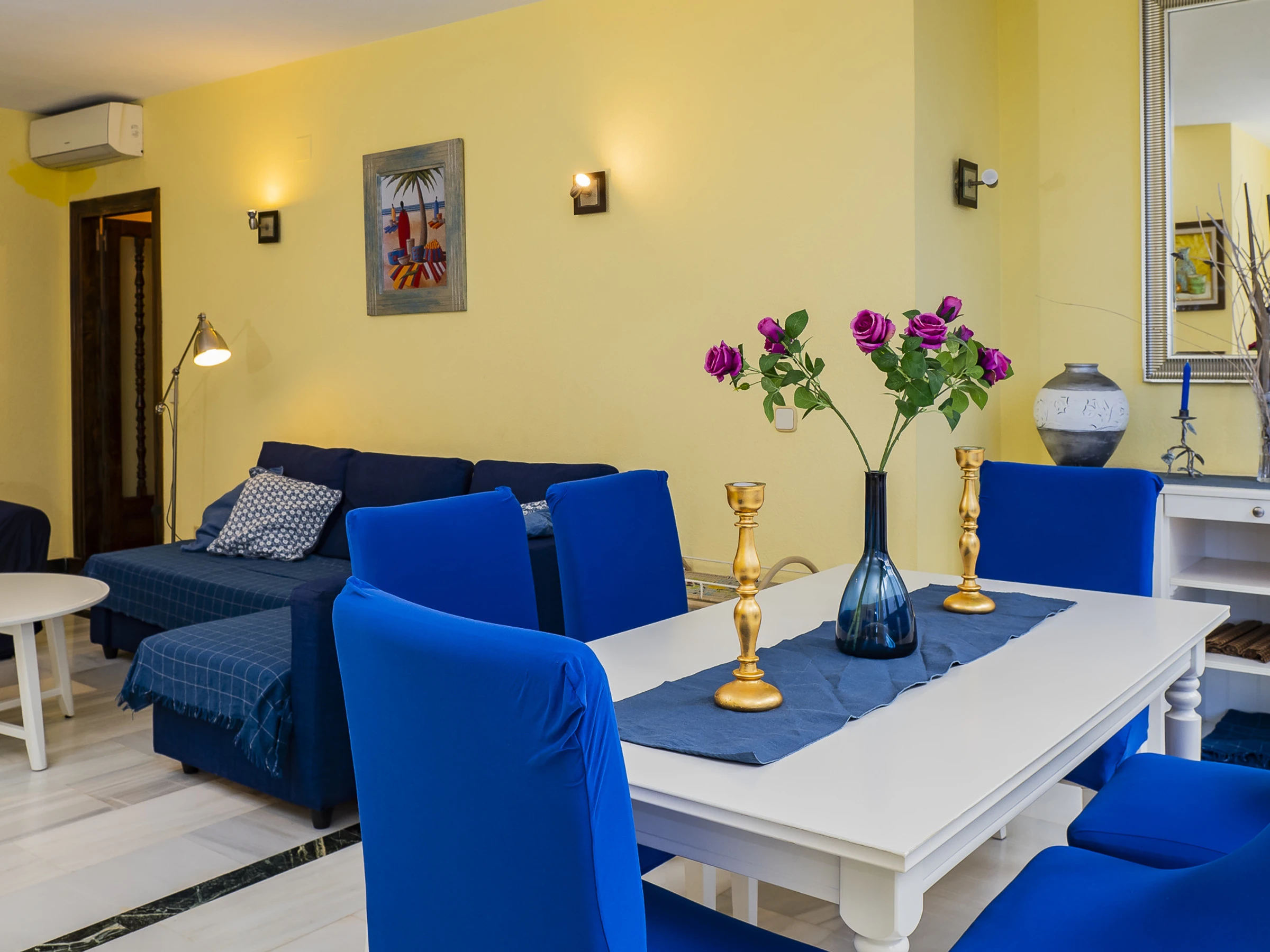 Este amplio apartamento en Marbella, con capacidad para 8 personas, se encuentra a solo 50 metros de la playa de arena Playa de Río Real y del paseo marítimo. Perfecto para quienes buscan combinar playa, ocio y comodidad sin necesidad de usar coche, gracias a su ubicación privilegiada cerca de restaurantes, supermercados y transporte público. Además, para quienes viajan en coche, dispone de plaza de aparcamiento en el edificio (altura máxima 1.90 cm).