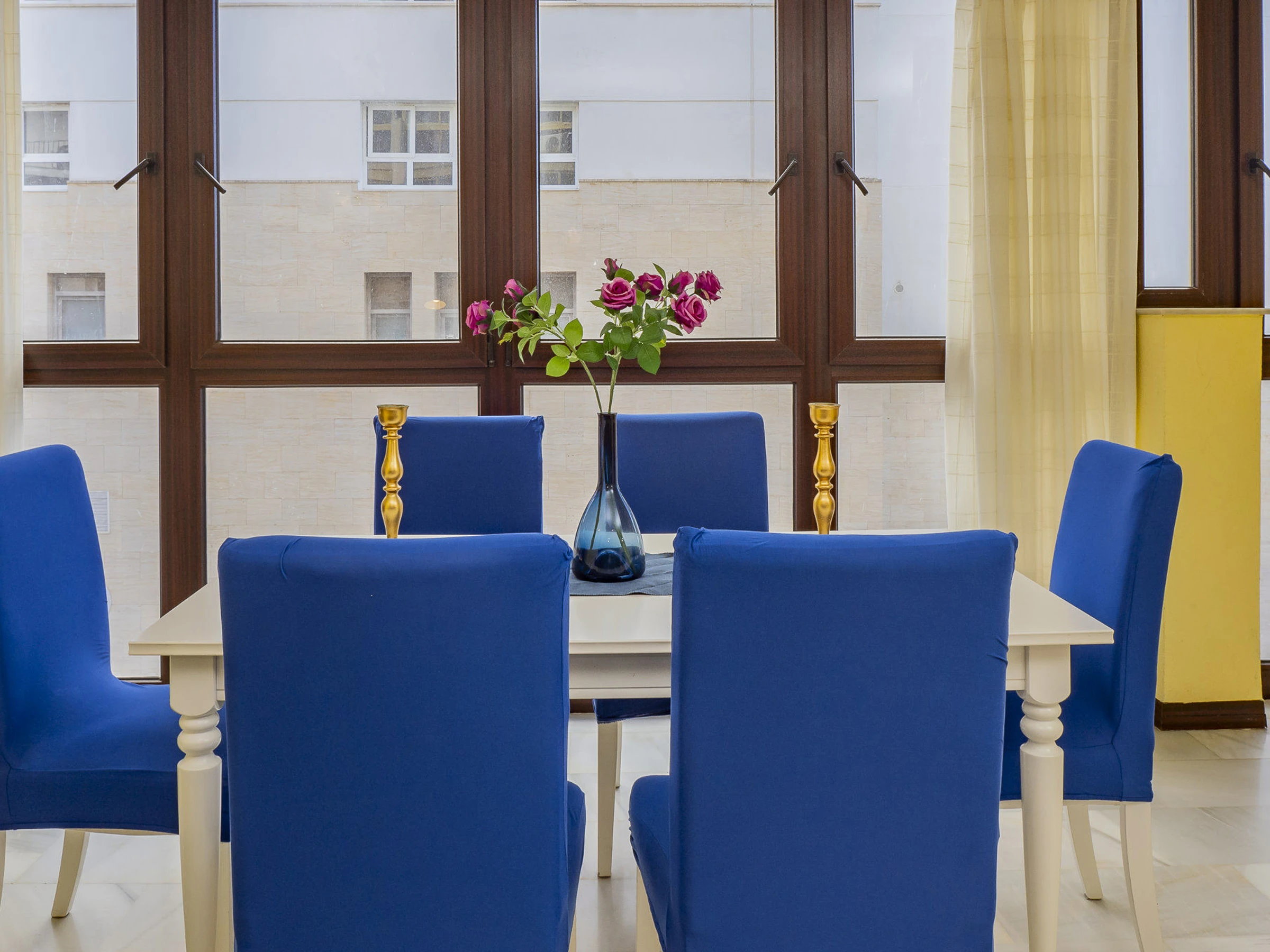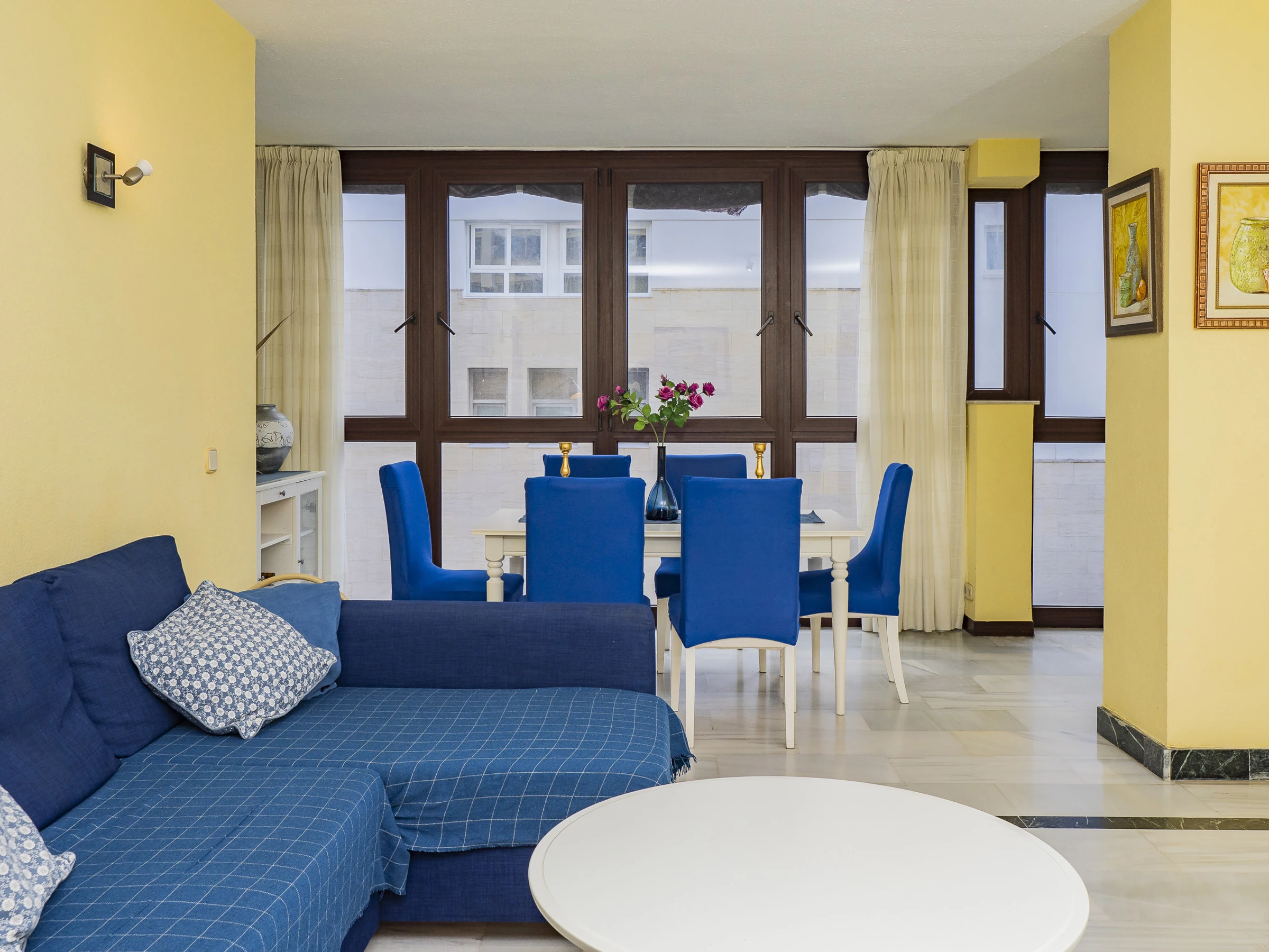 Situado en una primera planta con ascensor, el alojamiento ofrece 155 m² distribuidos en una cocina equipada con vitrocerámica, nevera, horno, microondas, lavavajillas y todos los utensilios necesarios para preparar tus comidas 🍳. El salón comedor está dividido en dos zonas: una para comer en familia y otra para relajarse con televisión y sofá cama doble, que aporta plazas adicionales para el descanso, completando la capacidad para 8 personas. La claridad del salón destaca gracias a su amplio ventanal con vistas al mar.