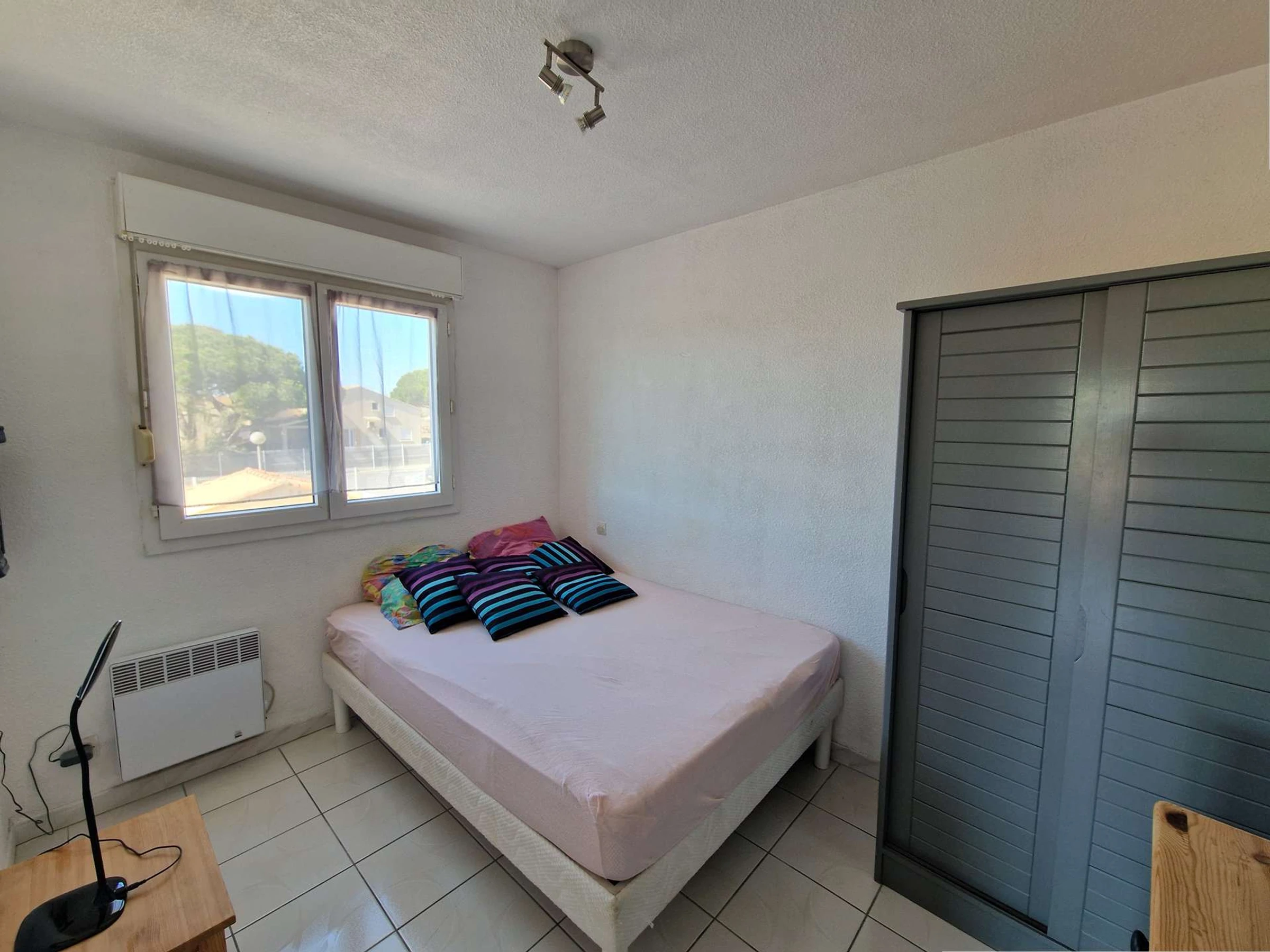 Ubicado en una residencia con piscina, este cómodo apartamento de un dormitorio es ideal para unas vacaciones en pareja o en familia, a solo 500 metros de la playa y cerca de comercios.