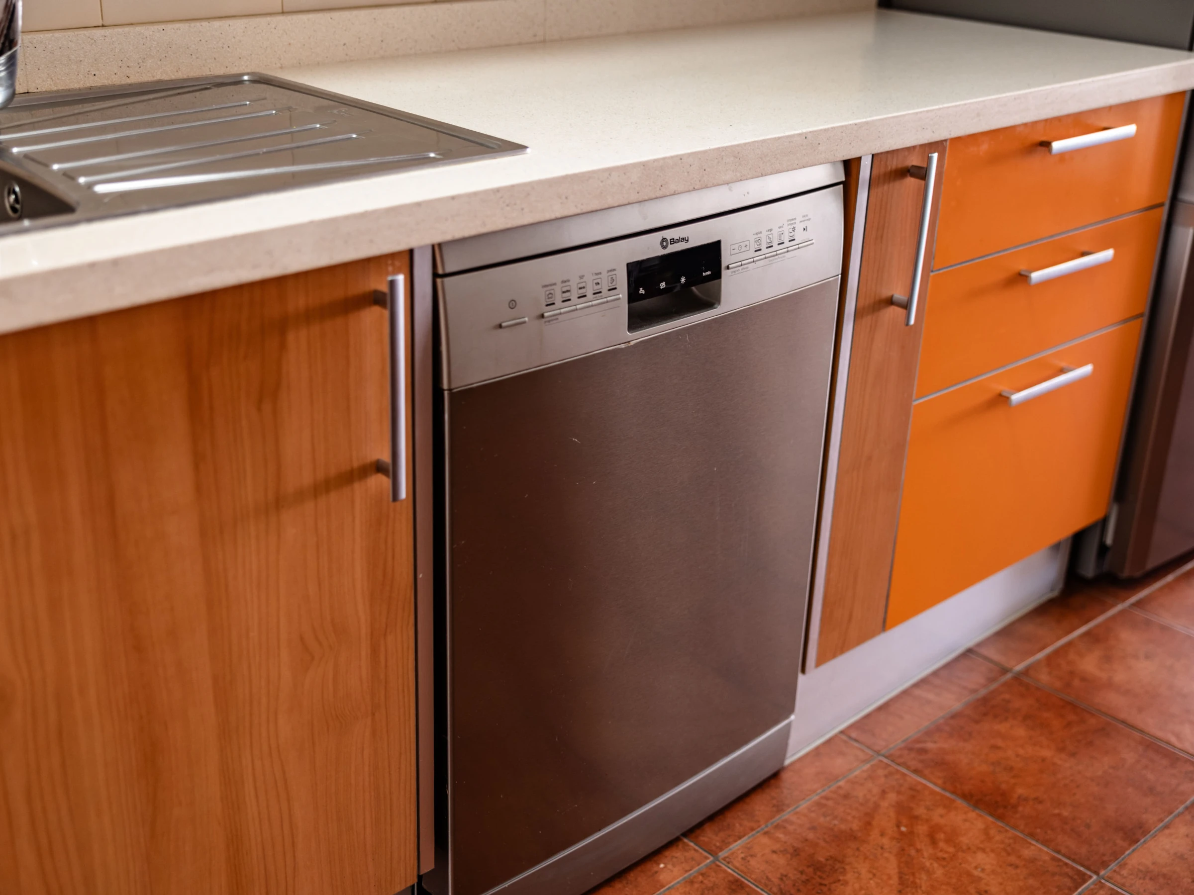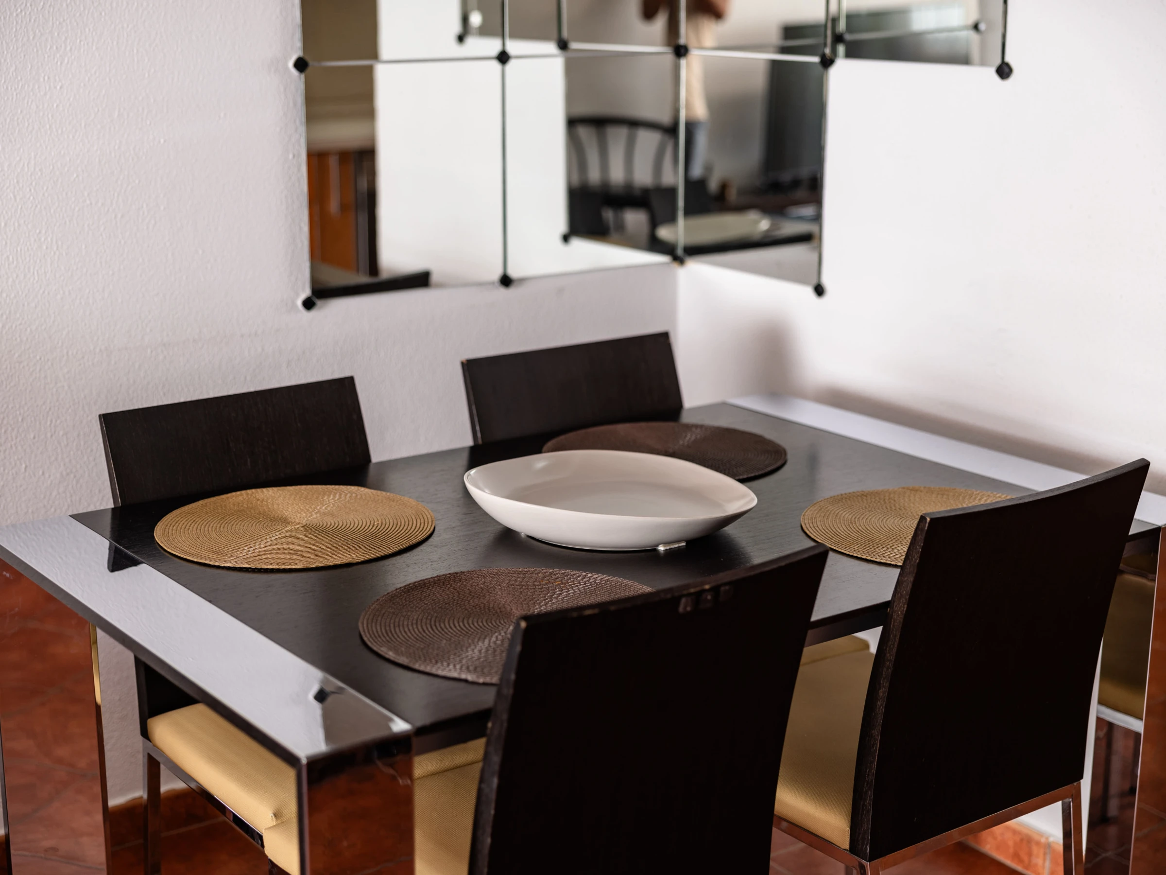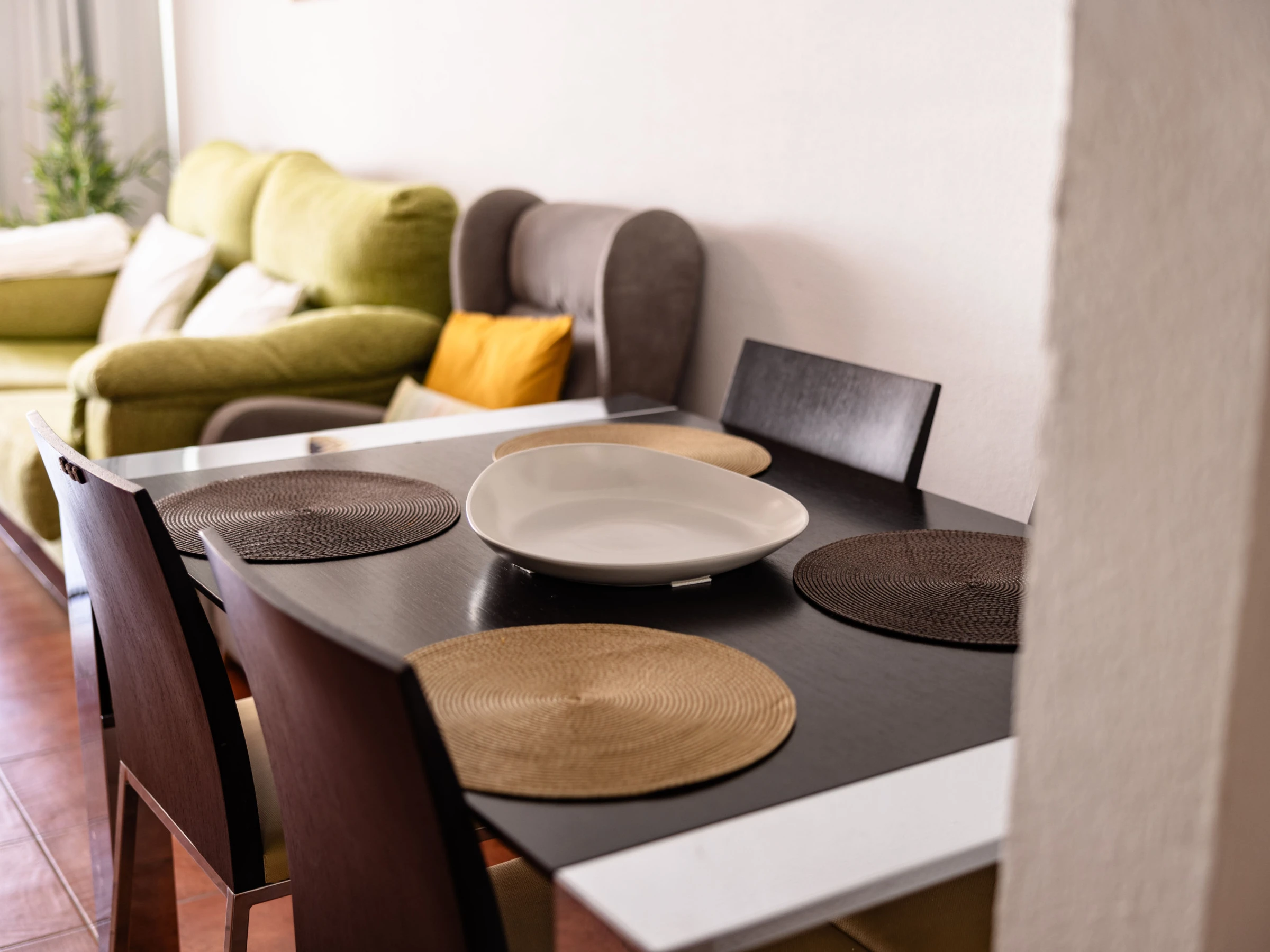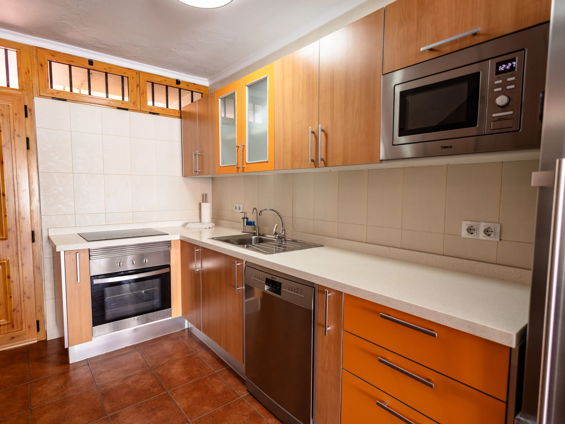 La cocina americana está totalmente equipada con nevera, congelador, lavadora, cafetera, horno, microondas, lavavajillas y todos los utensilios necesarios para preparar cómodamente tus comidas. Además, cuenta con wifi y TV.