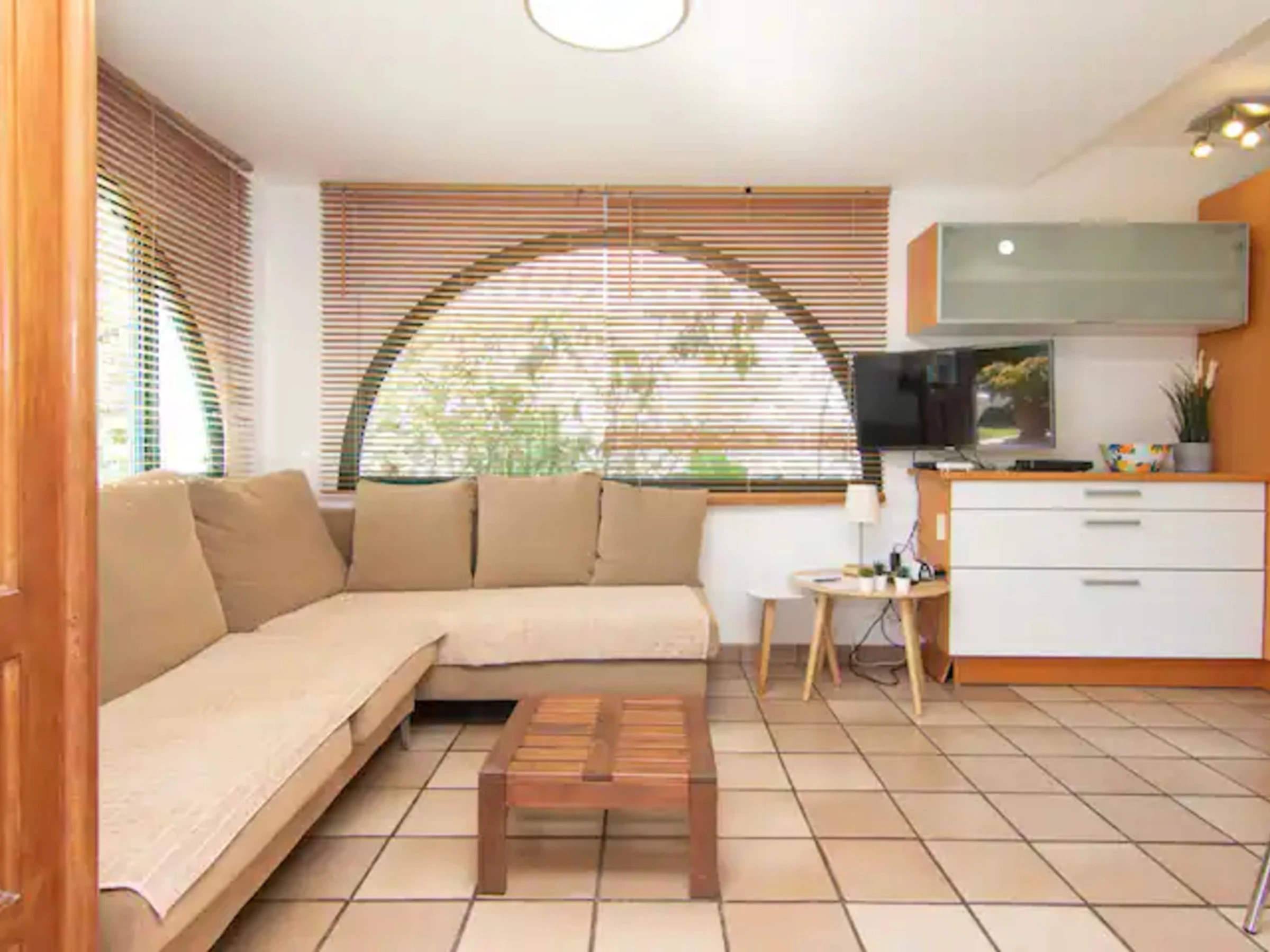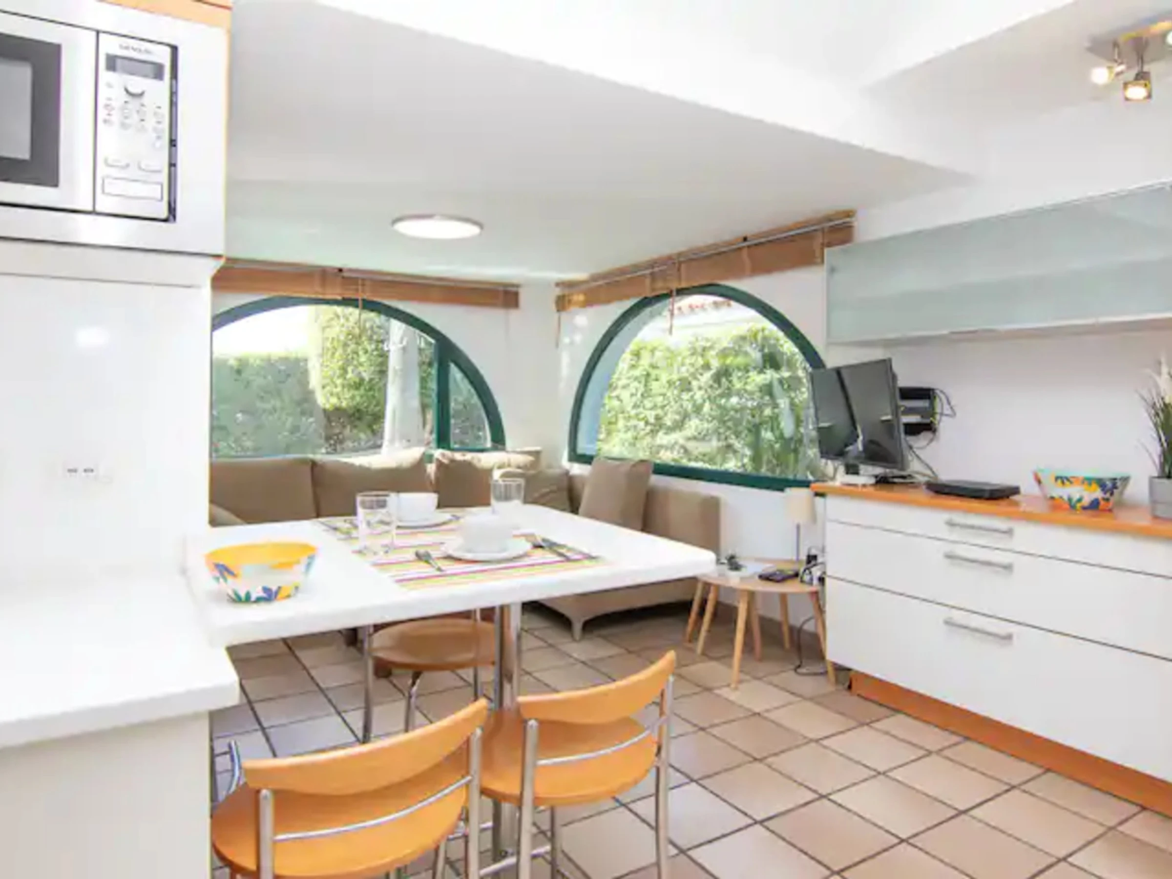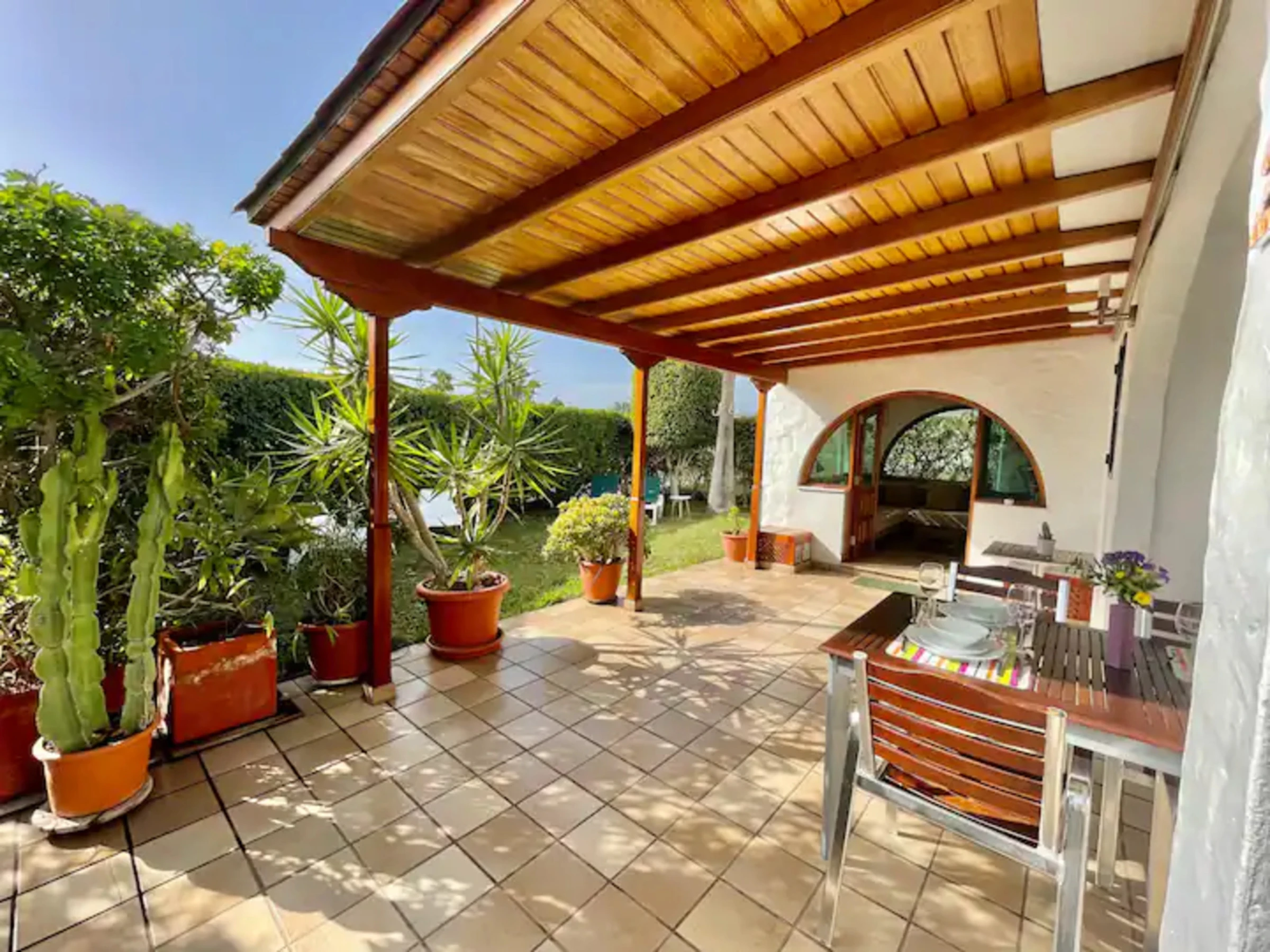 Disfruta de unas vacaciones en pareja o en familia en este magnifico bungalow gestionado por Gestion Vacacional Canarias (GVC) en Maspalomas. Con una amplia terraza, este alojamiento ofrece todo lo necesario para una estancia cómoda y relajante.