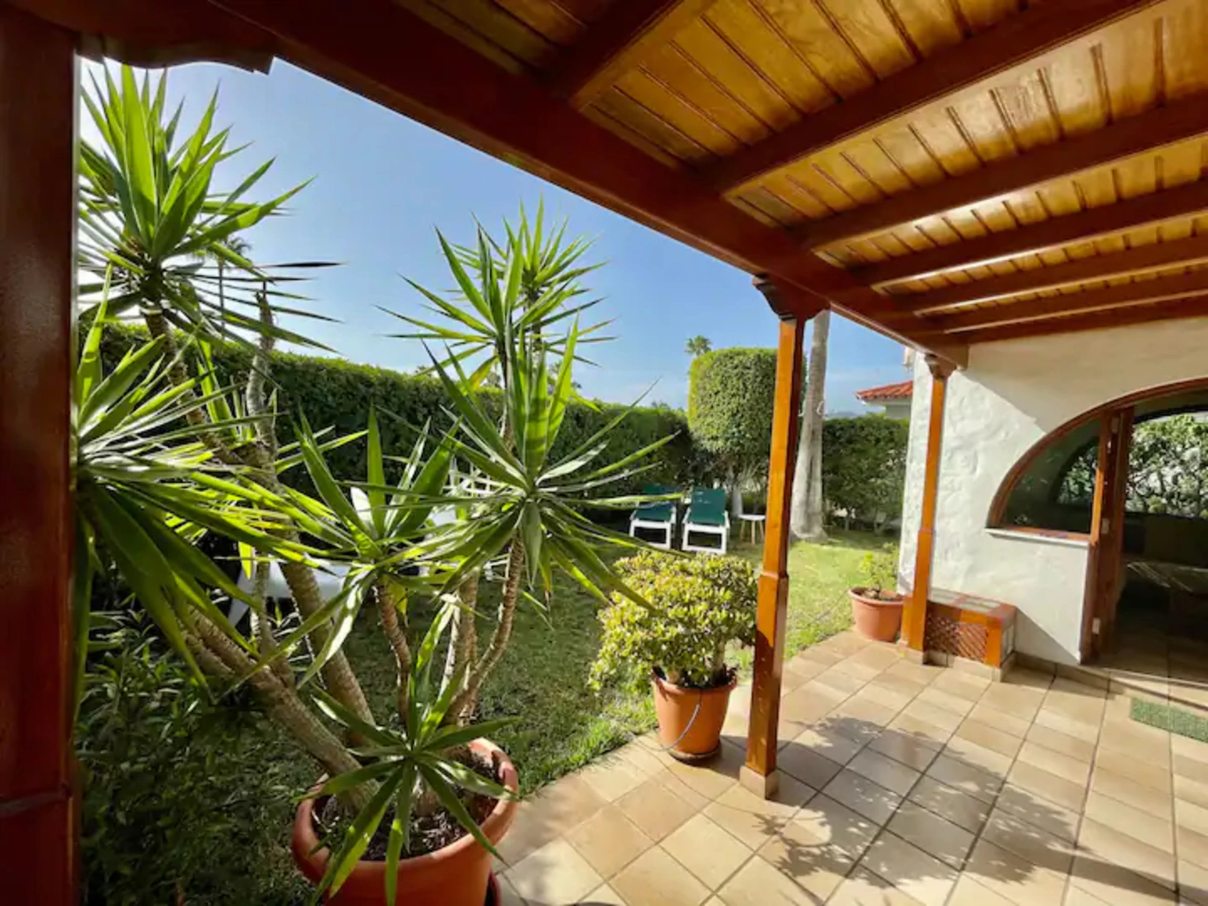 El apartamento se encuentra en una zona estupenda, con un jardín privado y mobiliario de exterior. Es un lugar ideal para relajarse y disfrutar de unas vacaciones en pareja o en familia.