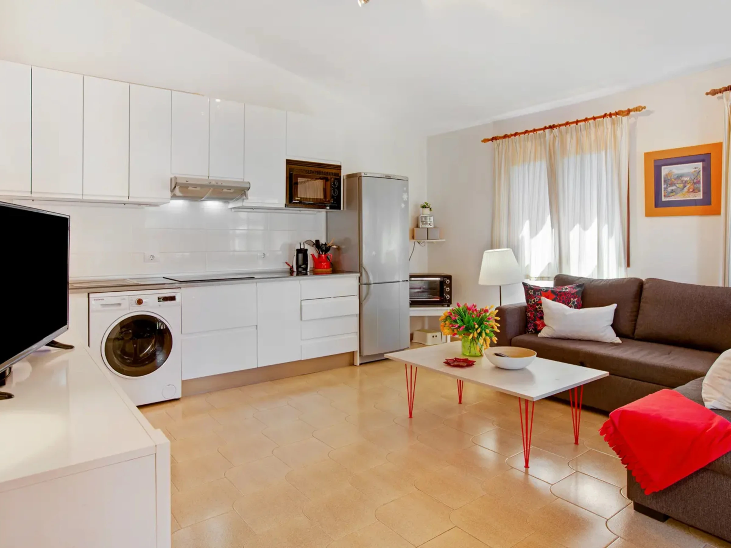 Dispone de jardín, mobiliario jardín, 30 m² de terraza, lavadora, acceso internet (wifi), secador, piscina comunitaria+infantil, parking aire libre en mismo edificio, 1 ventilador, 1 Televisor.