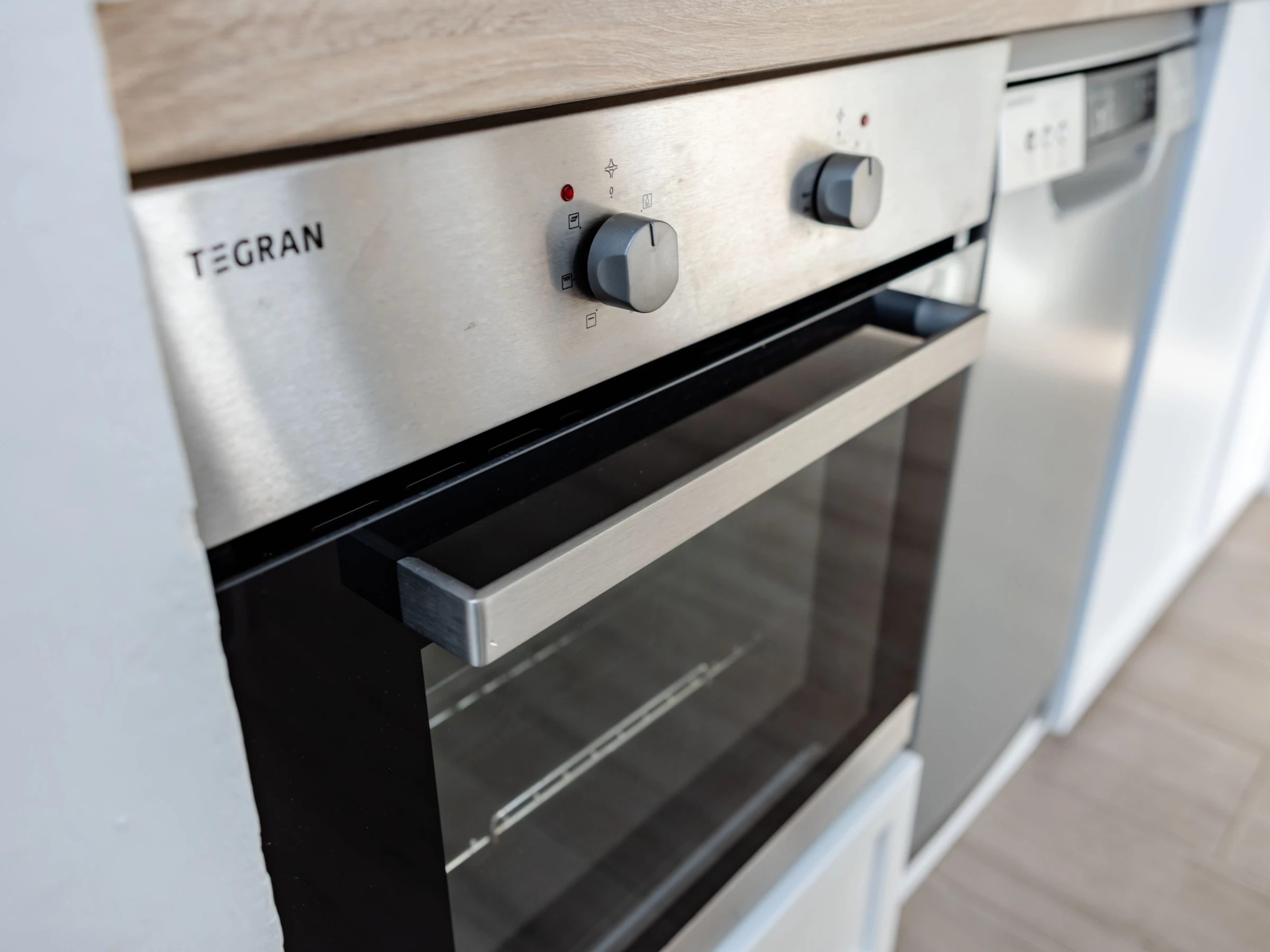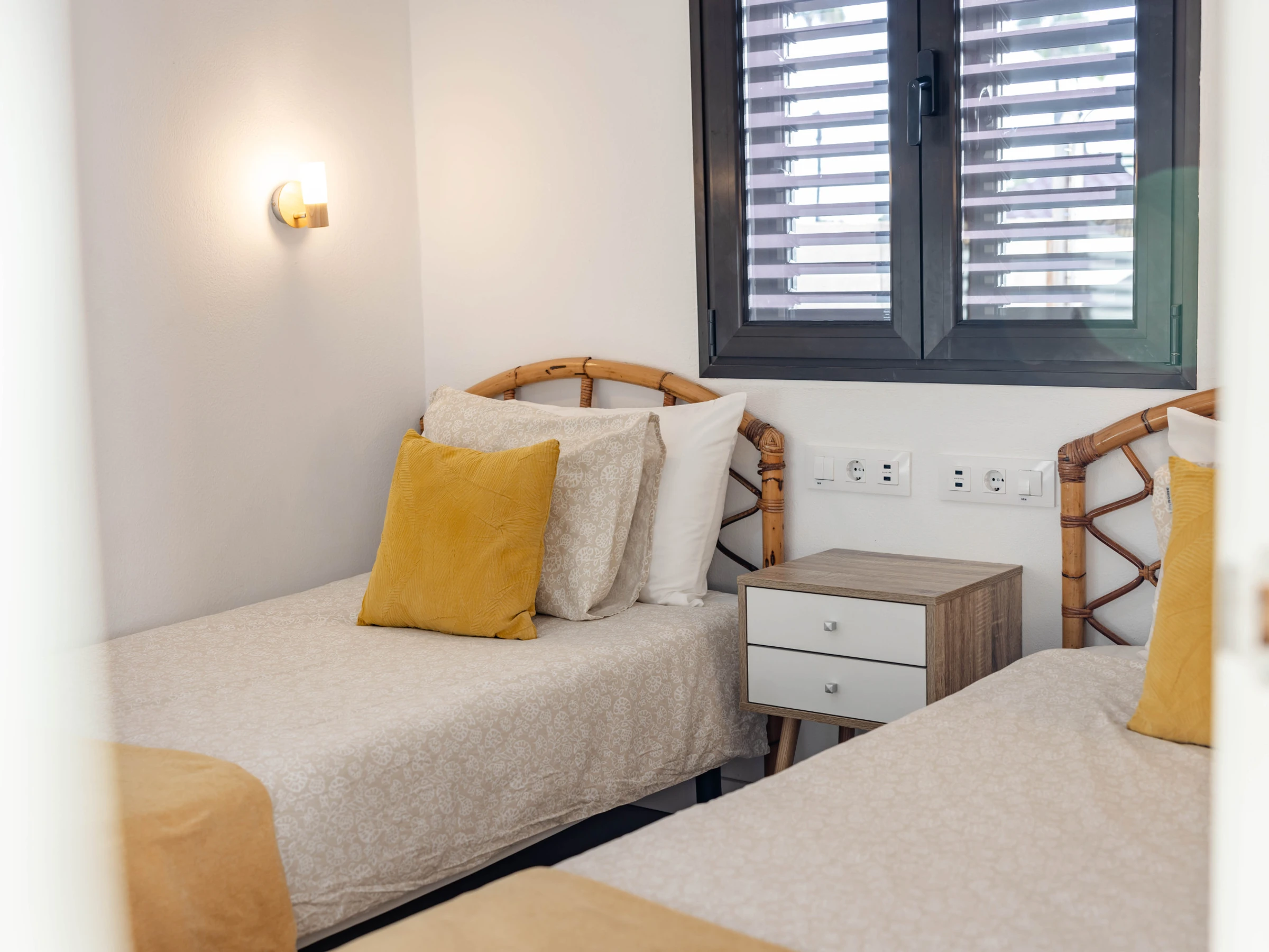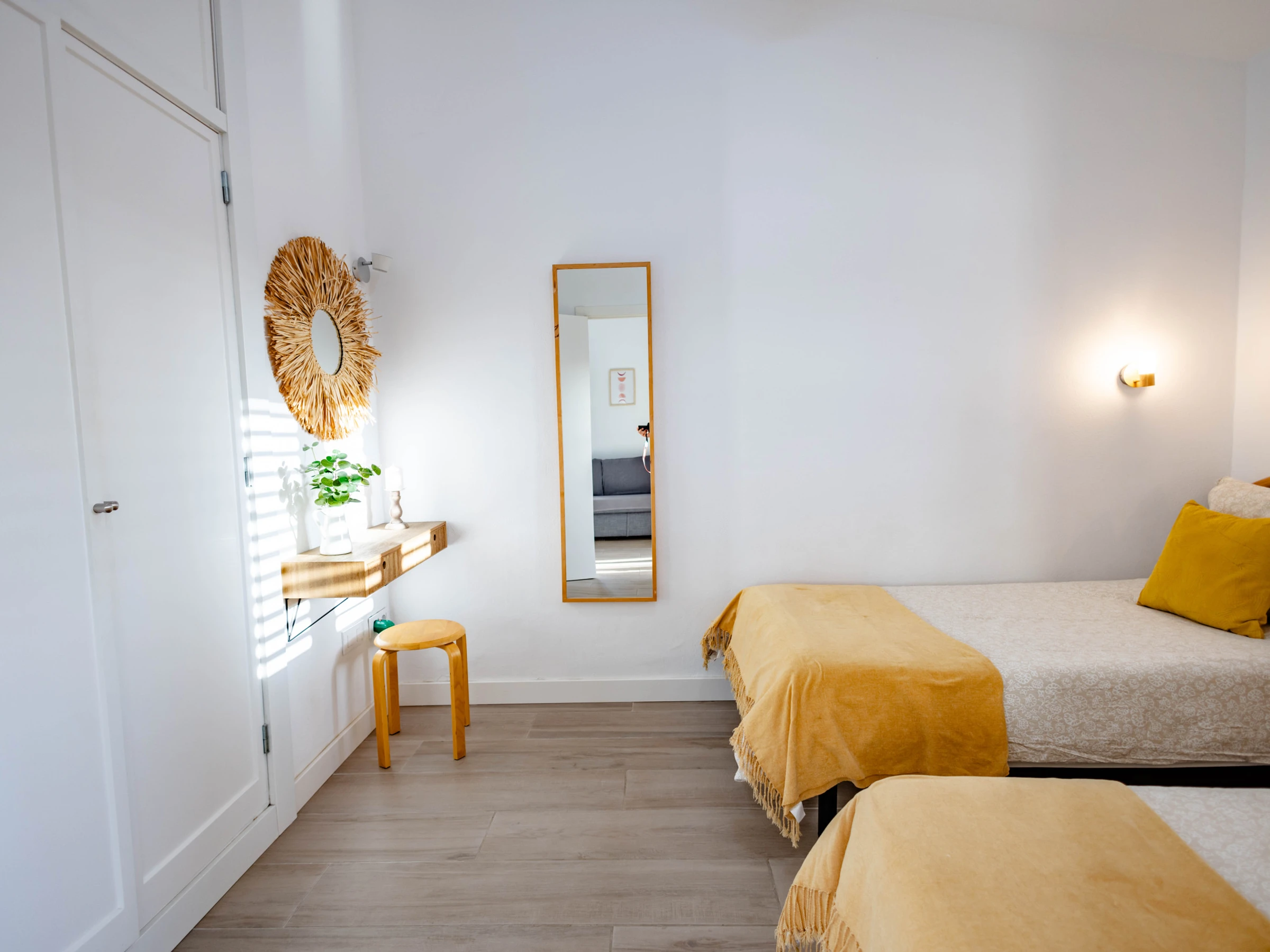 El apartamento cuenta con una cocina americana totalmente equipada, que incluye nevera, congelador, lavadora, cafetera, horno, microondas, lavavajillas y todos los utensilios necesarios. Además, dispone de una sala de estar con un cómodo sofá-cama doble y dos camas individuales, lo que permite alojar hasta 4 personas.