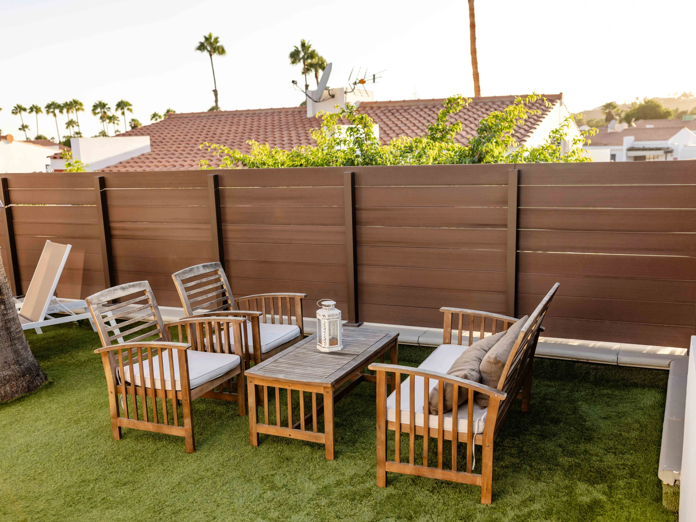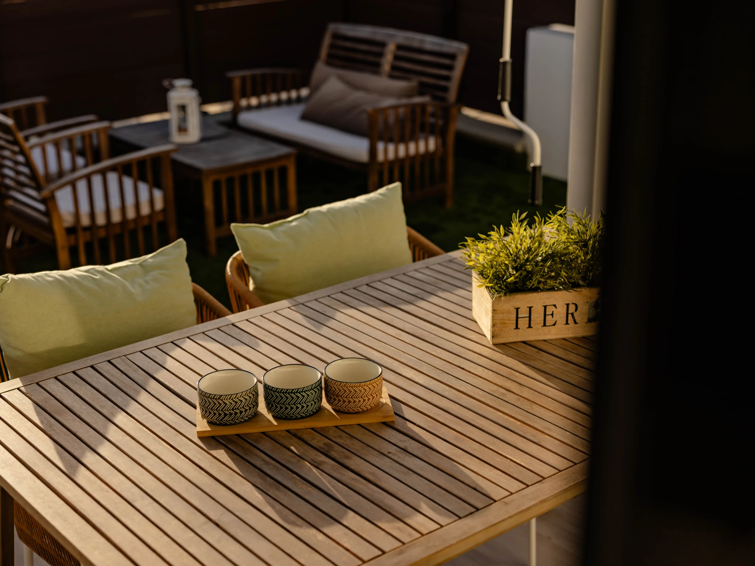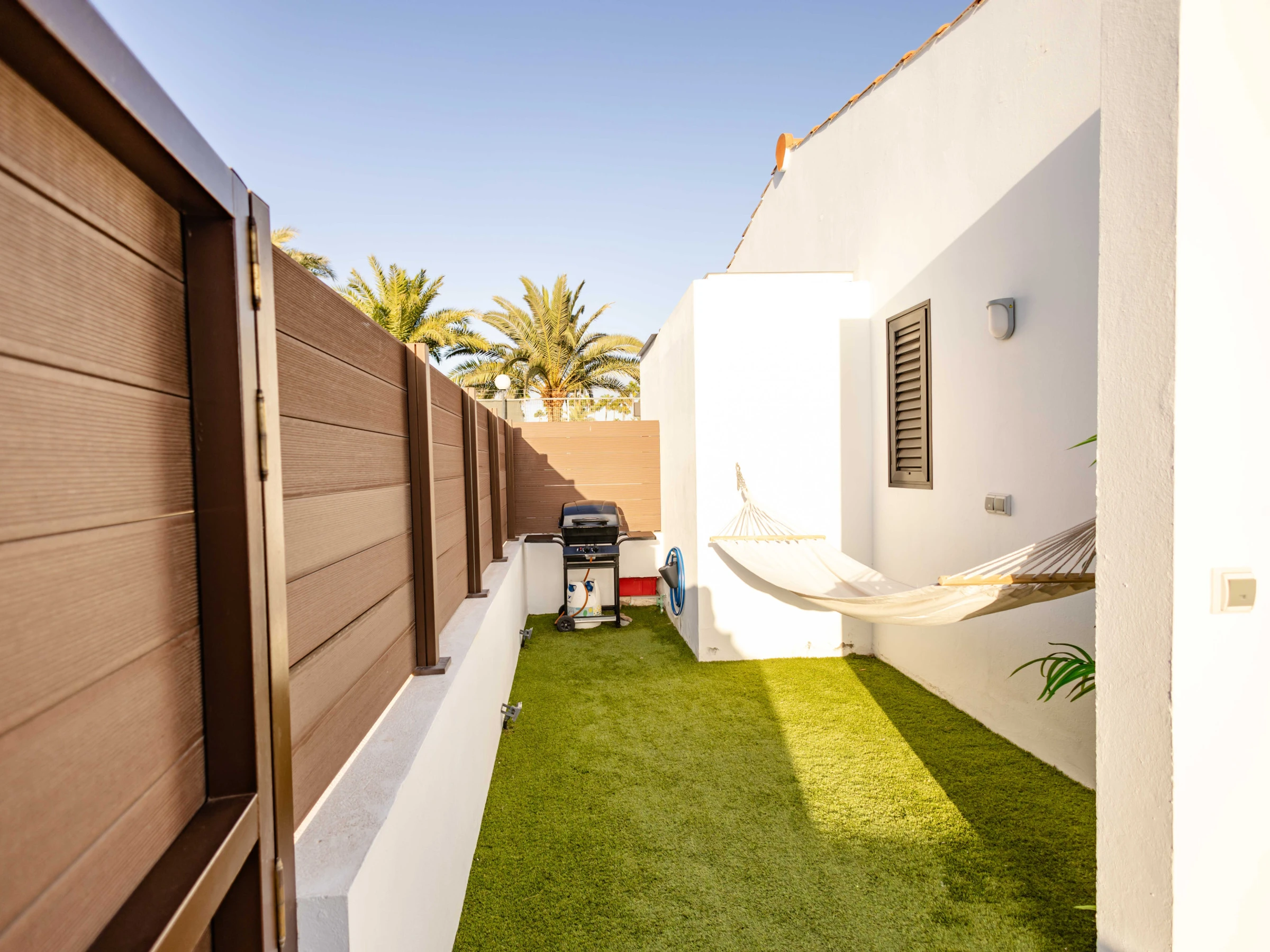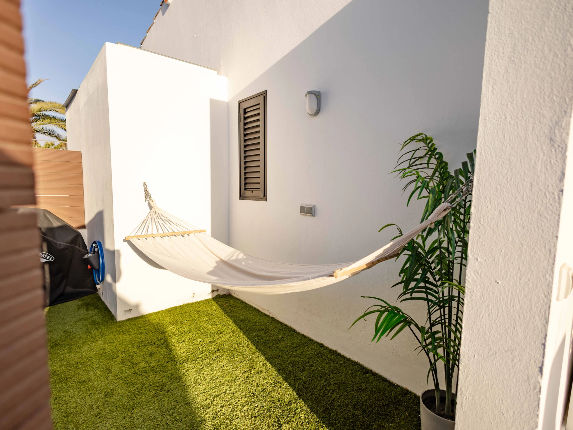 En el exterior, los huéspedes pueden disfrutar de una terraza privada amueblada, perfecta para relajarse o disfrutar de una comida al aire libre. Dispone además del Jacuzzi, de una ducha de exterior, barbacoa, tumbonas y una hamaca de tela. También tienen acceso a un jardín comunitario y una piscina compartida.