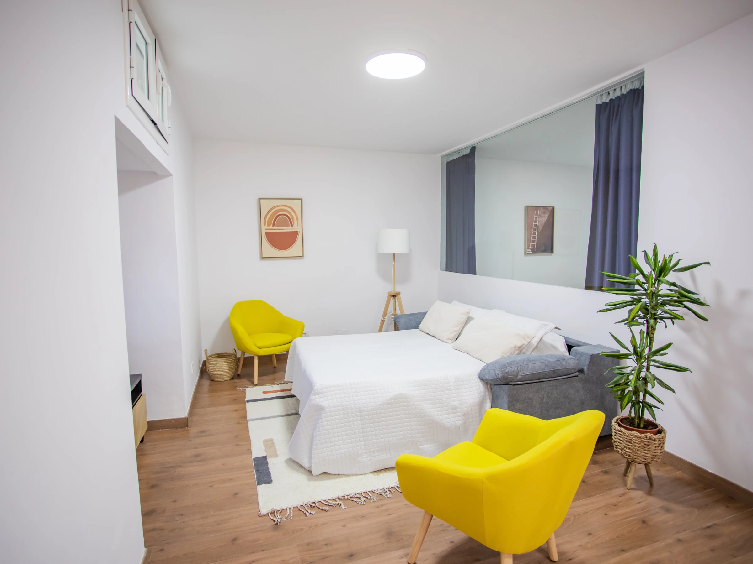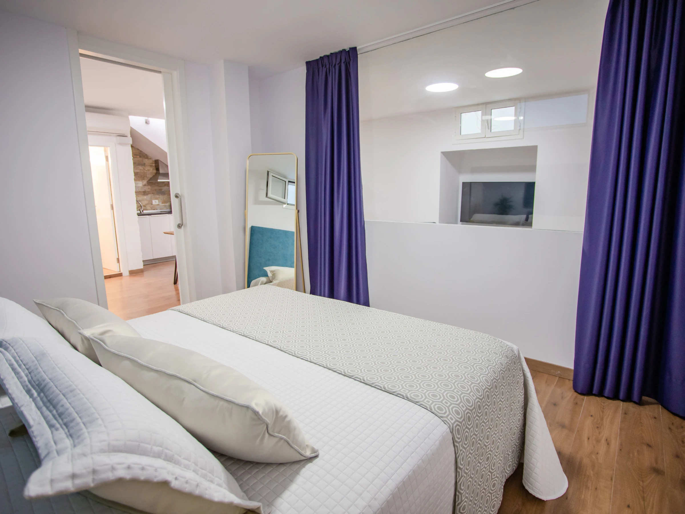 El apartamento cuenta con 1 dormitorio con una cama queen size, y un sofá cama de apertura italiana en el salón. Dispone a su vez de un baño con ducha y una cocina americana completamente equipada con nevera, congelador, lavadora, cafetera, horno, microondas y todos los utensilios necesarios.