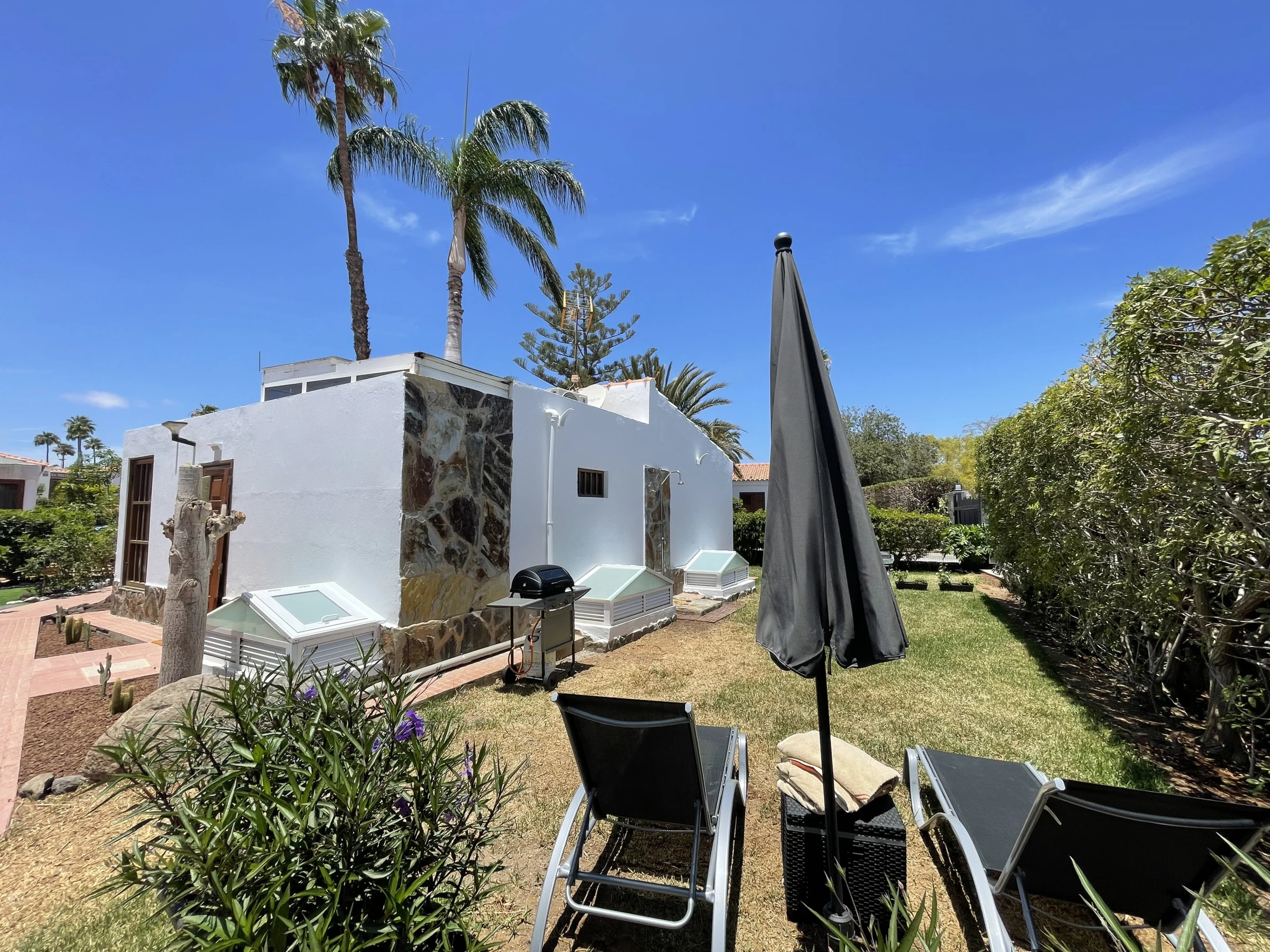 Disfruta de unas vacaciones en familia o en pareja en este acogedor apartamento gestionado por Gestion Vacacional Canarias (GVC) en Maspalomas. Con una amplia terraza totalmente equipada con barbacoa, zona comedor, ducha exterior, sombrilla y tumbonas, este alojamiento ofrece todo lo necesario para una estancia cómoda y relajante.