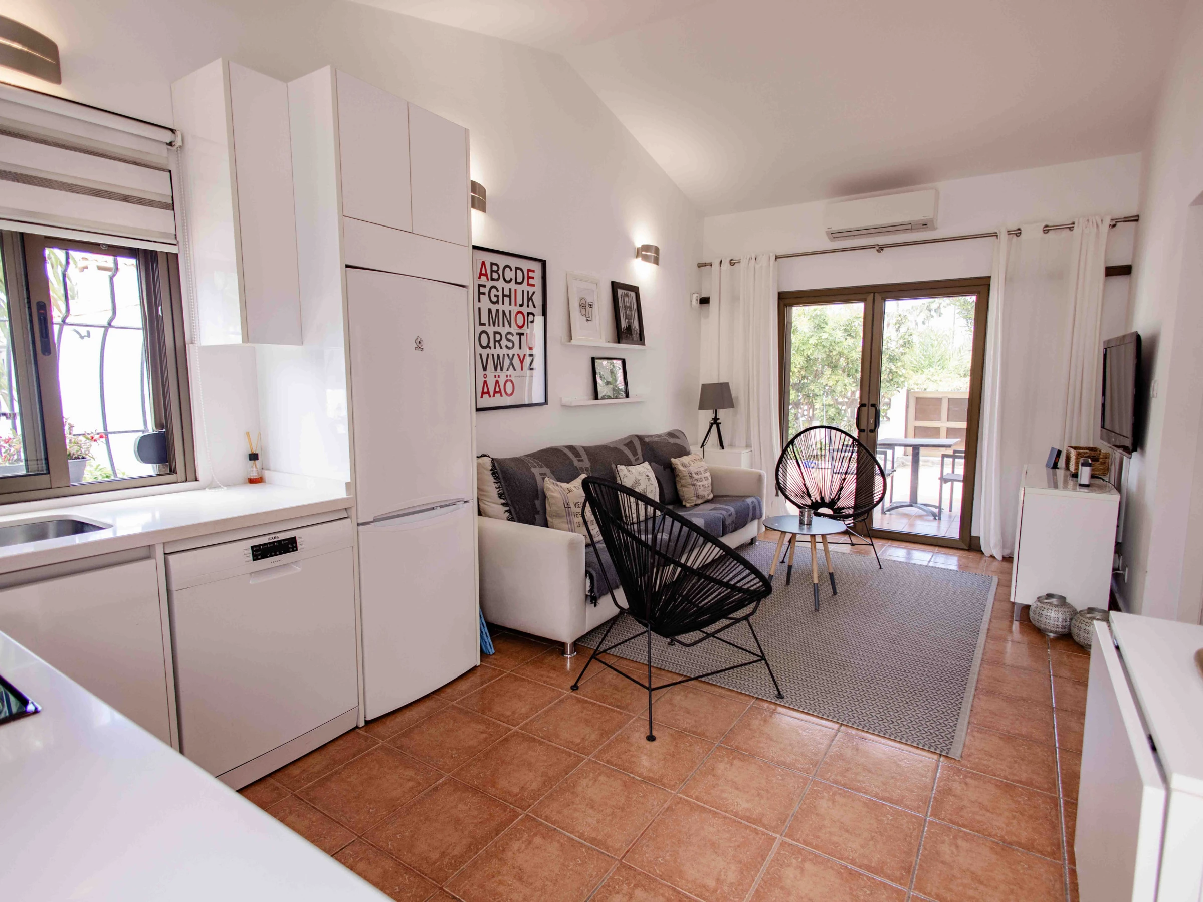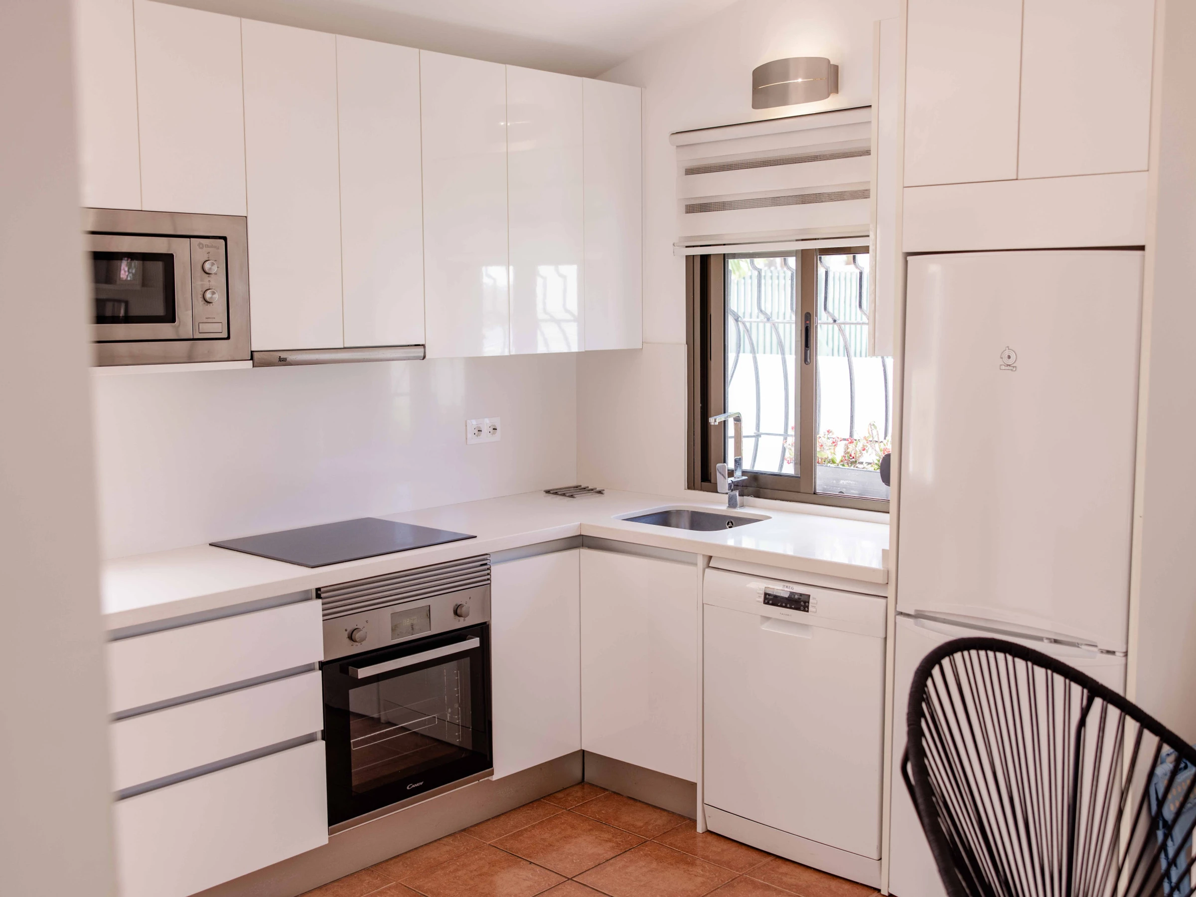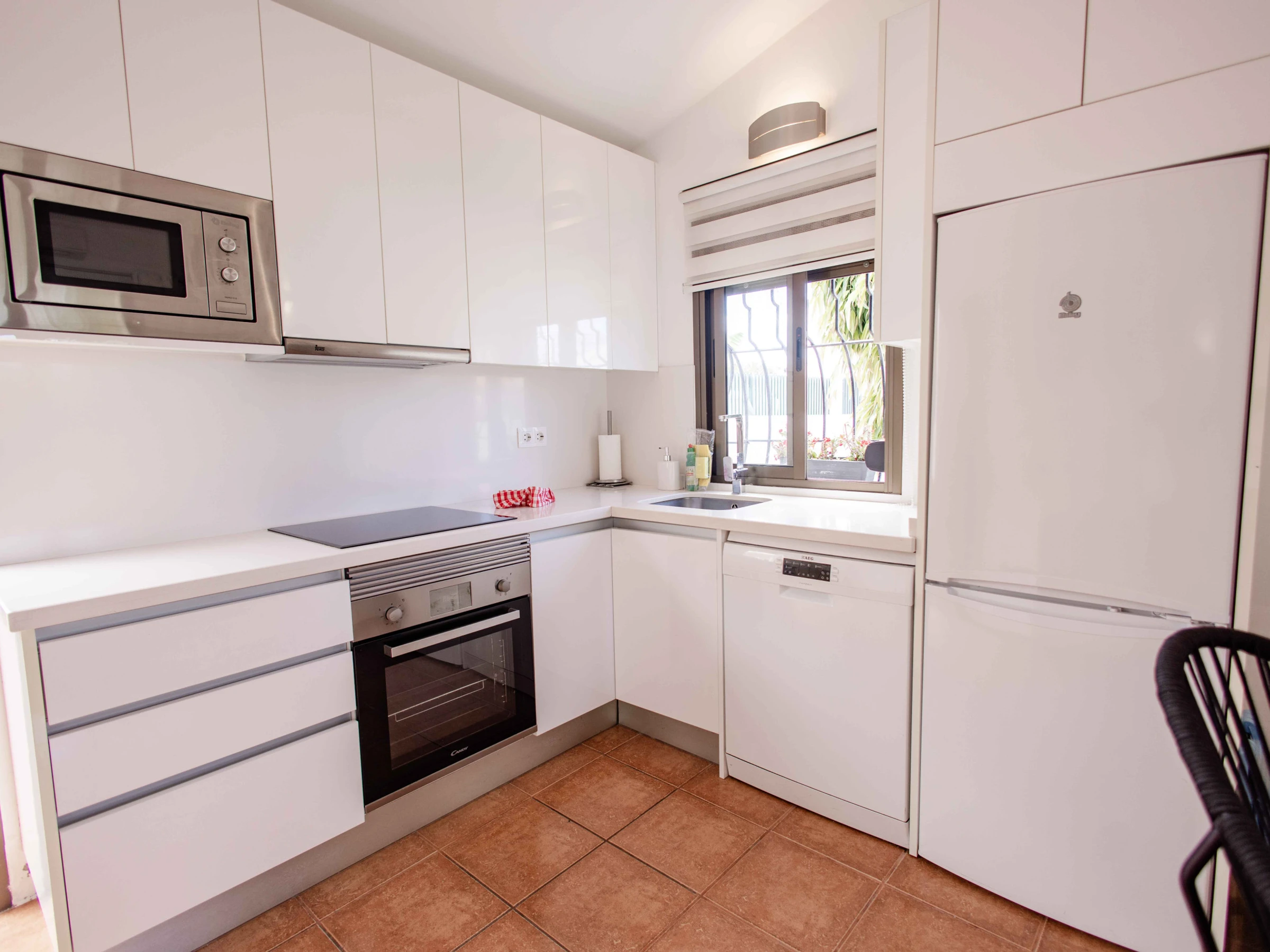 La propiedad dispone de varias piscinas comunitarias, perfectas para refrescarse en los cálidos días. Además, el apartamento está equipado con una cocina americana totalmente equipada, que incluye electrodomésticos como nevera, congelador, lavavajillas, microondas y cafetera.