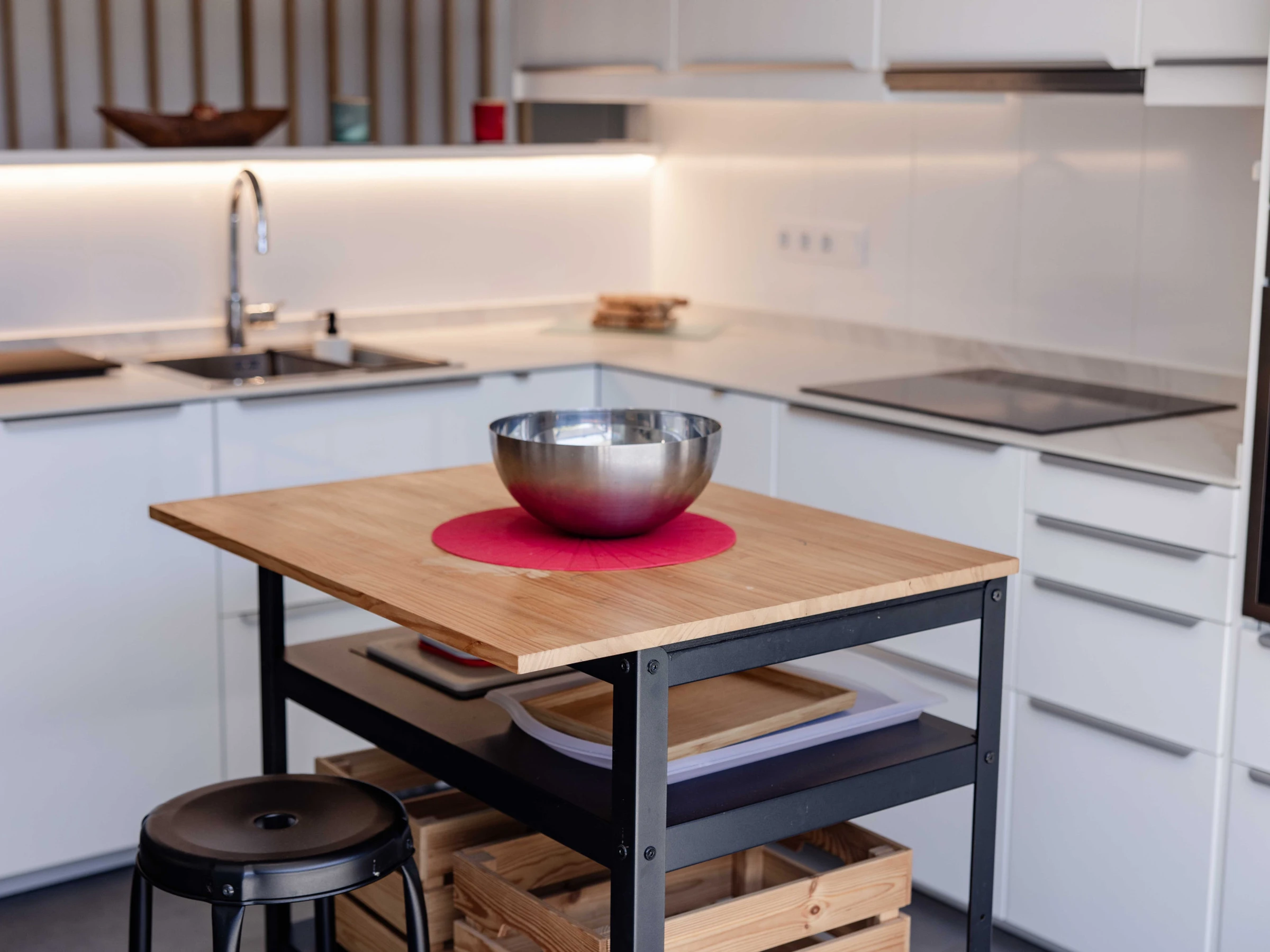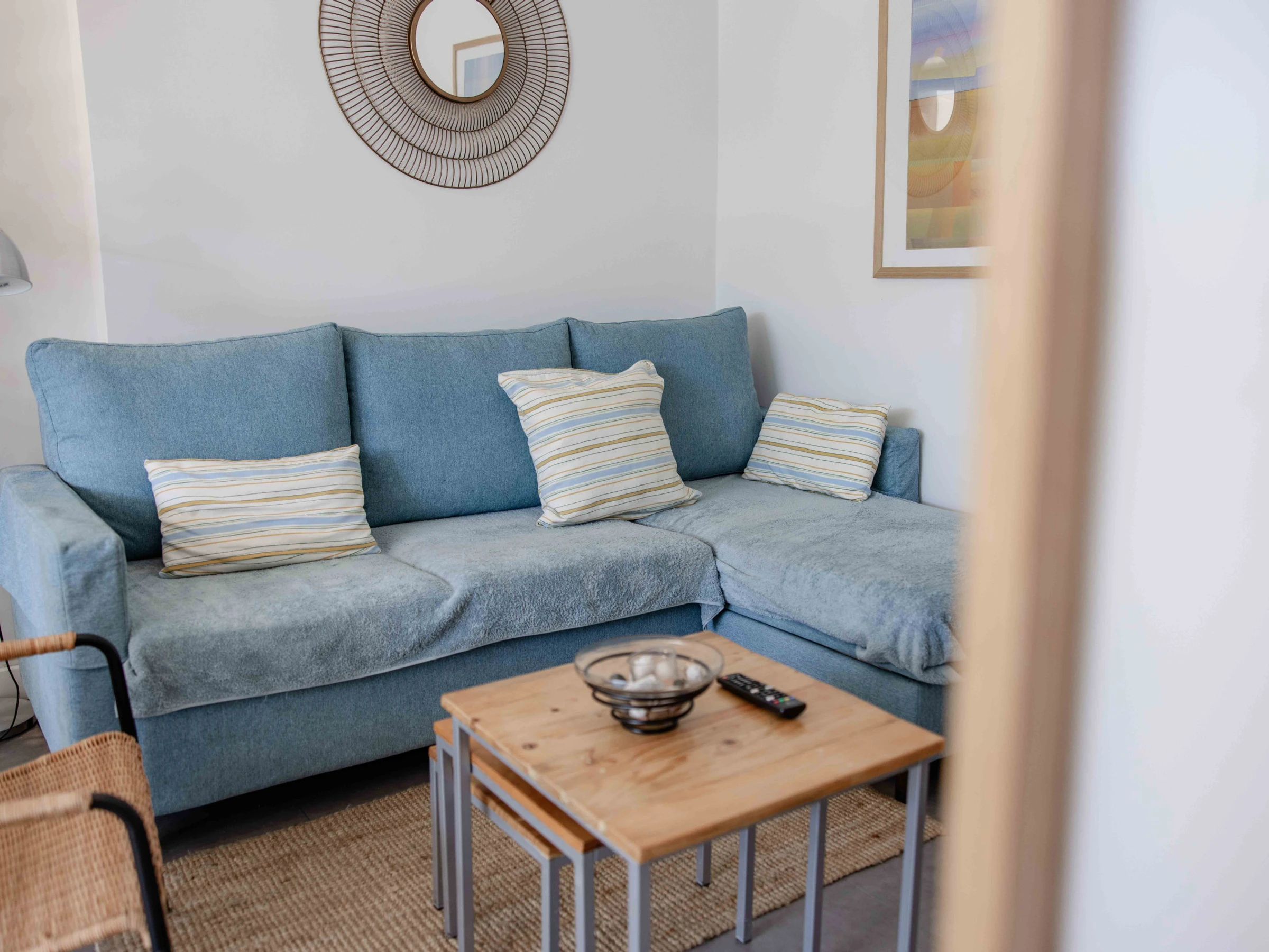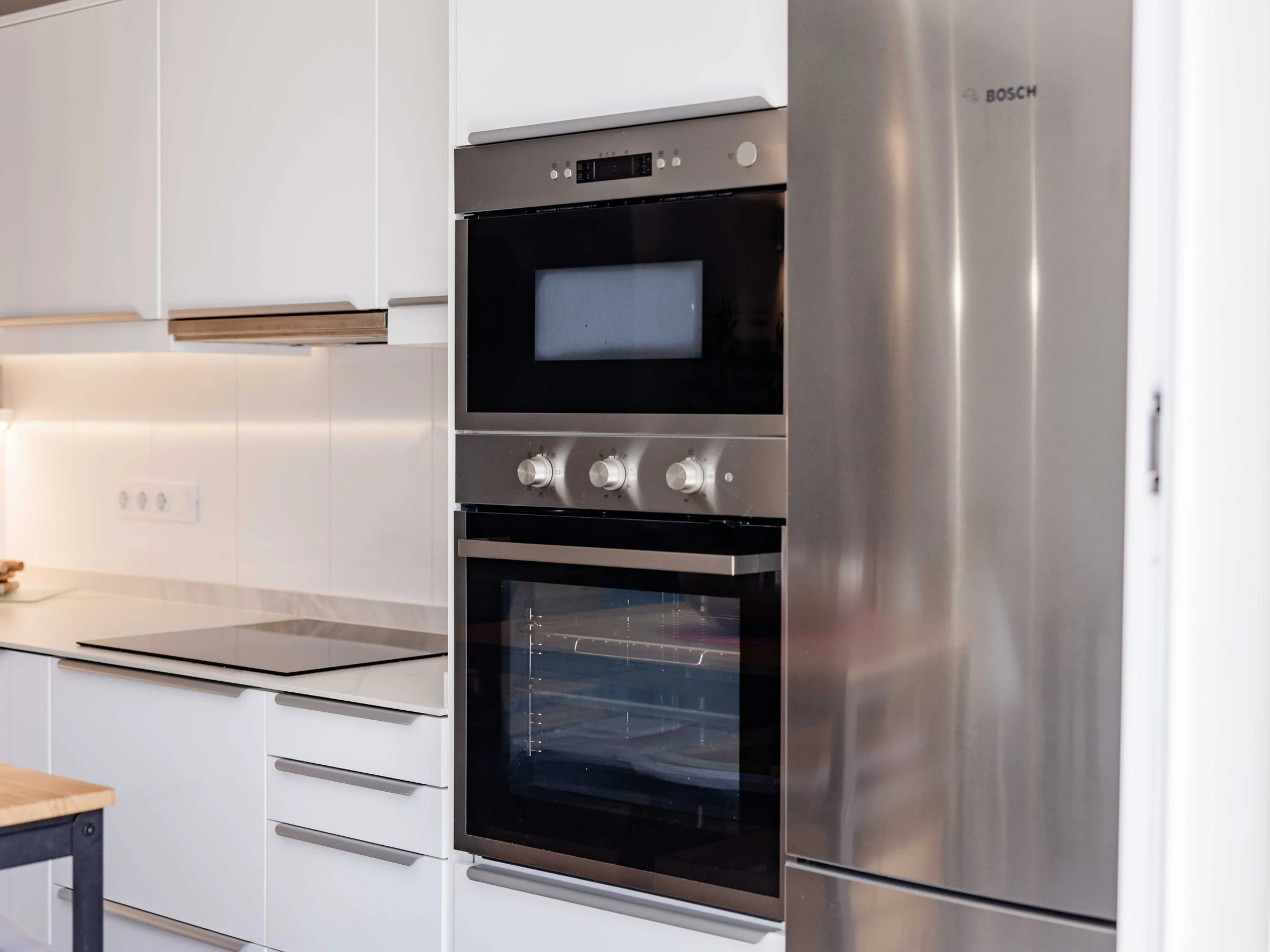 Dispone de dos dormitorios, cocina completamente equipada con nevera, congelador, cafetera, horno, microondas, lavavajillas y todos los utensilios necesarios para preparar comidas en casa; así como lavadora en el cuarto de baño.