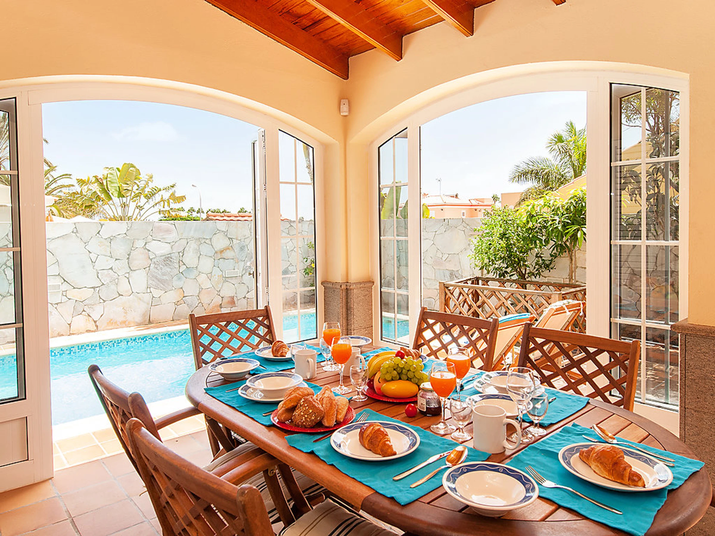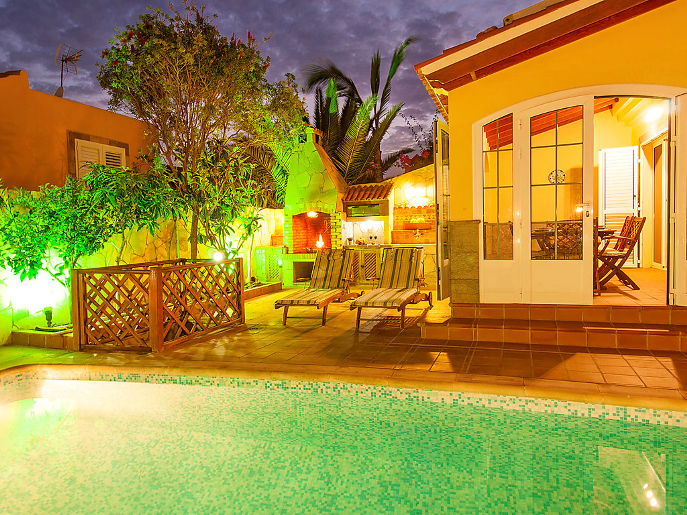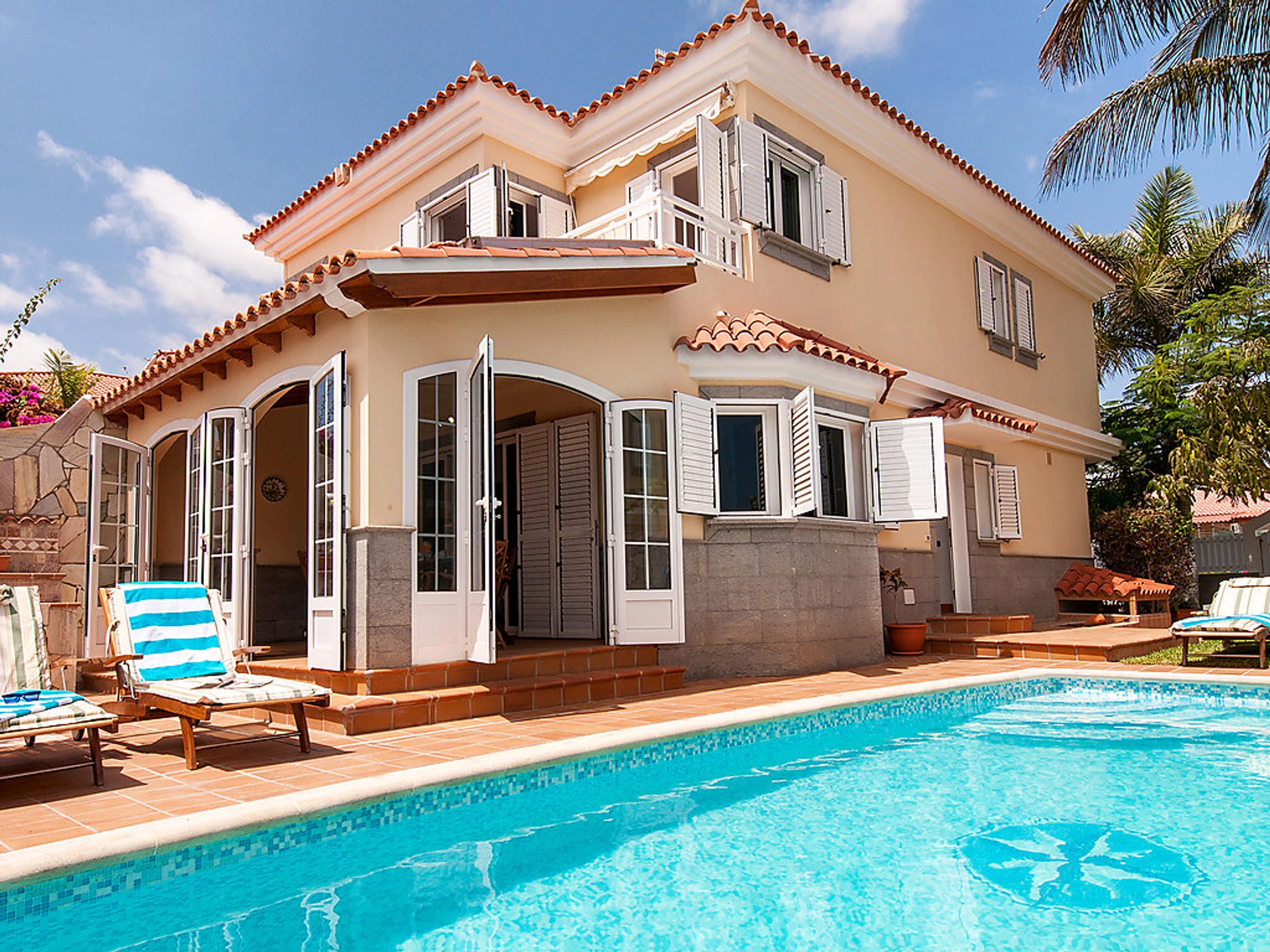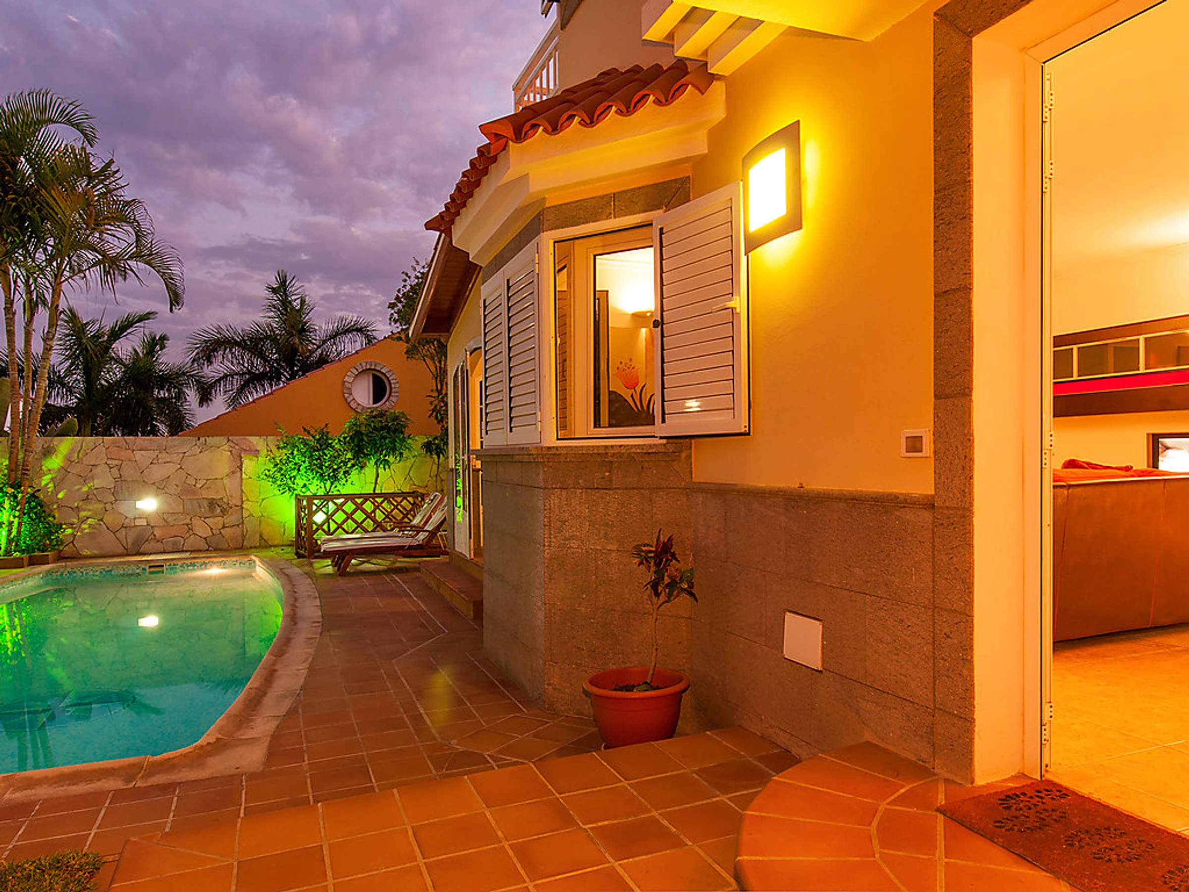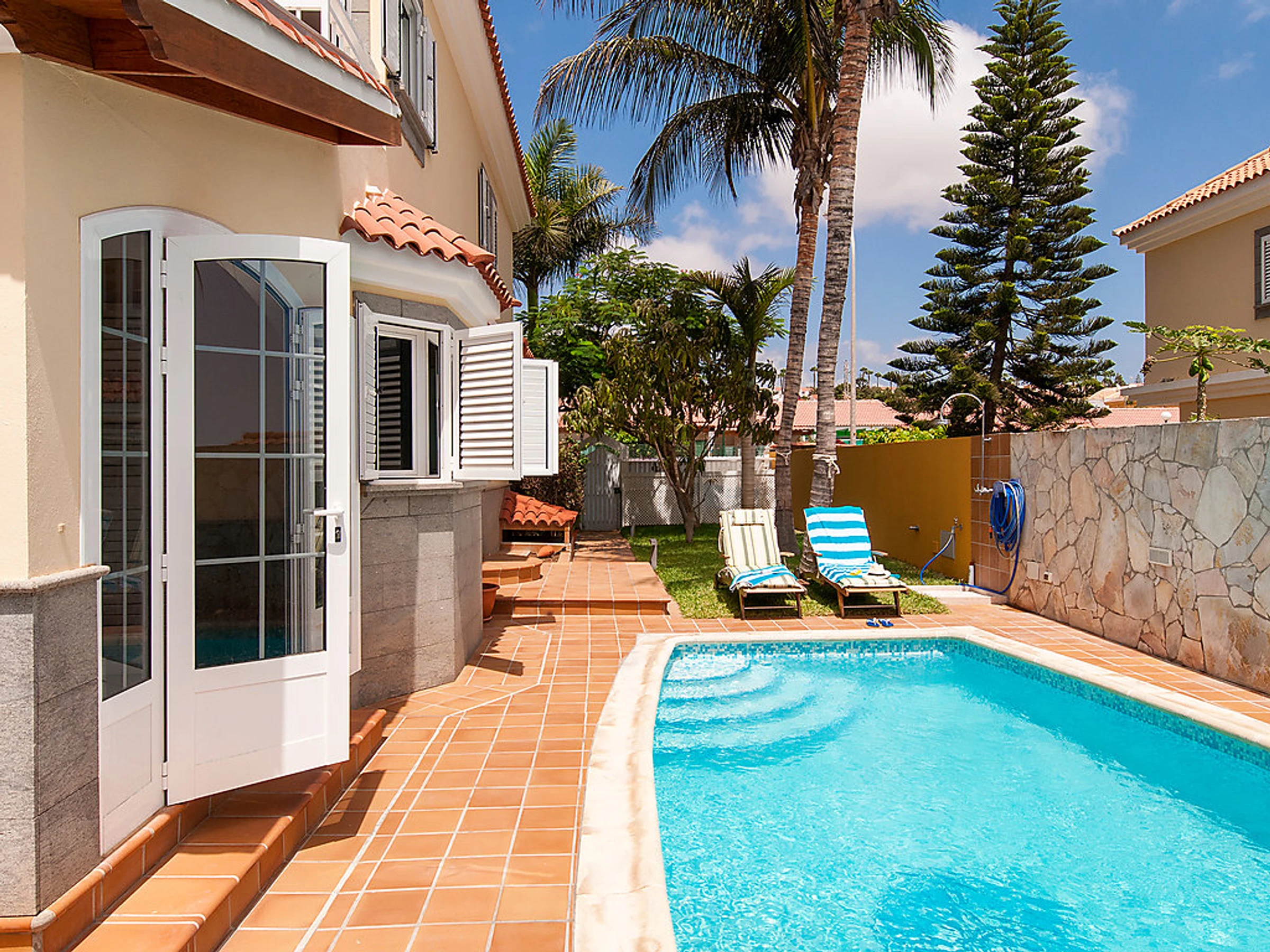 Villa, idónea para niños, confortable, lujosa "Villa Sonneland con piscina privada". Equipamiento de la vivienda: aire acondicionado, billar, lavadora (privado). Parking: garaje individual. Acceso en coche todo el año. Acceso por escaleras. Situación: en la periferia, en el barrio de Sonnenland, MASPALOMAS, lugar tranquilo, soleado en la playa. Vista desde la vivienda al mar, a las montañas, al jardín y al paisaje. Entorno de la vivienda: jardín (privado, vallado), piscina (privado, climatizada), ducha exterior (privado), barbacoa (privado). Infraestructura y distancias: tienda 2.8 km, tienda de comestibles 100 m, supermercado 100 m, restaurante 100 m, campo de golf 2.8 km. Piscina climatizable (extra: 30 €/día, solicitar en la reserva y pagar en plaza). A 20 min. caminando y a 5 min. en coche de la playa y del centro de Maspalomas. Las llegadas en los siguientes horarios deberán abonar un coste extra en plaza: 20:30-22:00: 30€, 22:00-00:00: 50€, 00:00-01:30: 80.