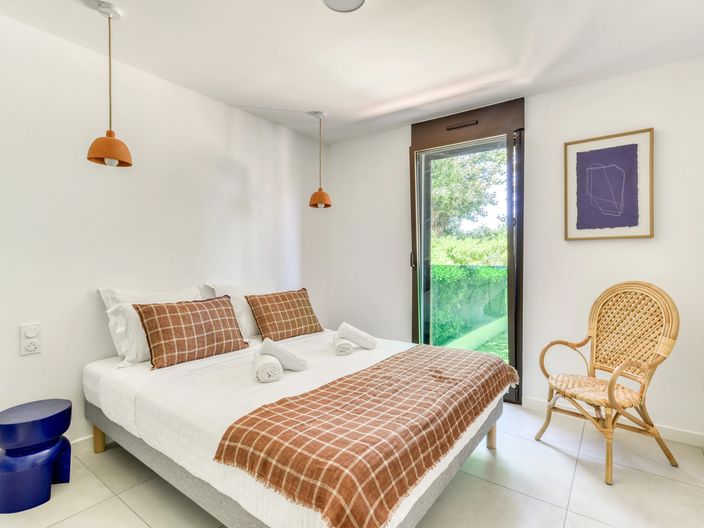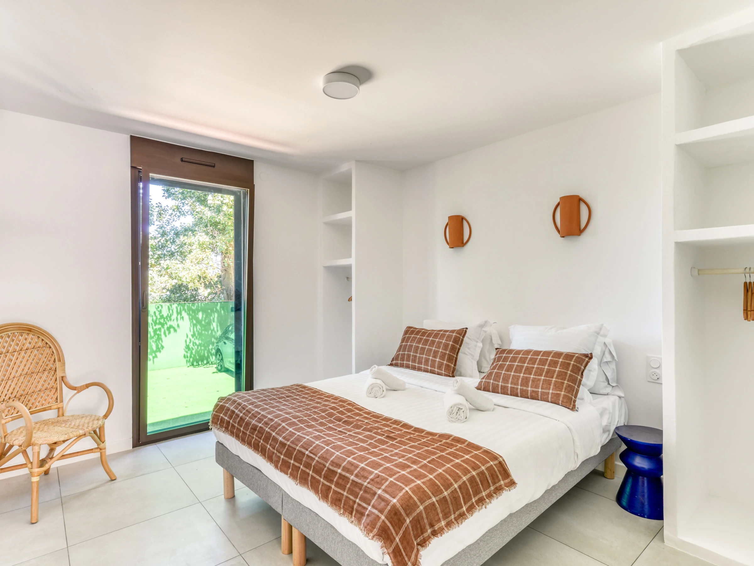 Alma, es un apartamento de dos habitaciones de 60 m2 en planta baja de jardín. Gran y amplio salón con sofá suave y cómodo que da a una terraza profunda para una superficie de vida de 30 m2. Dos habitaciones con hermosas dimensiones con camas Queen Size (160x200) para mayor comodidad. Hermosos armarios. Cuarto de baño al estilo italiano.