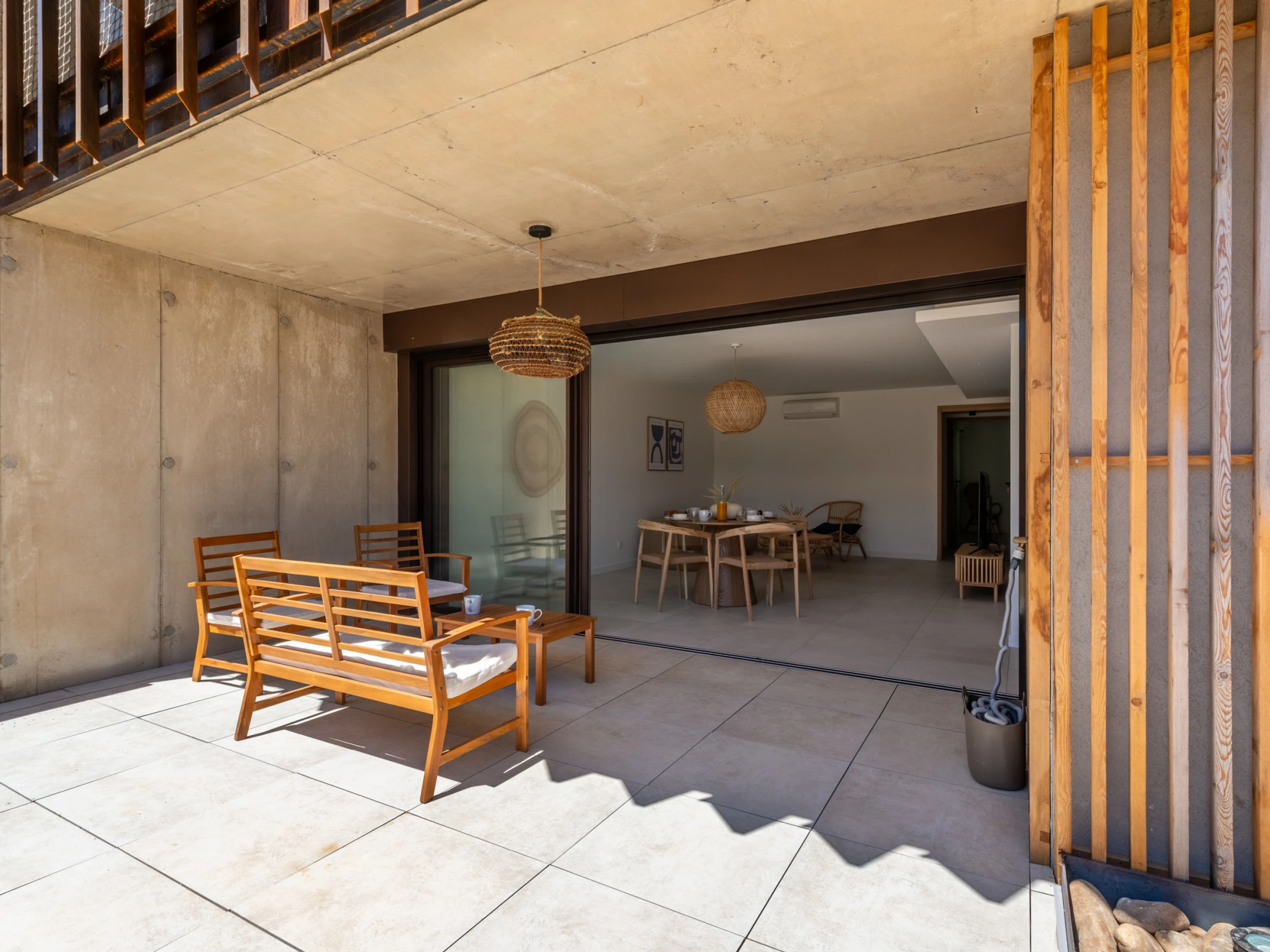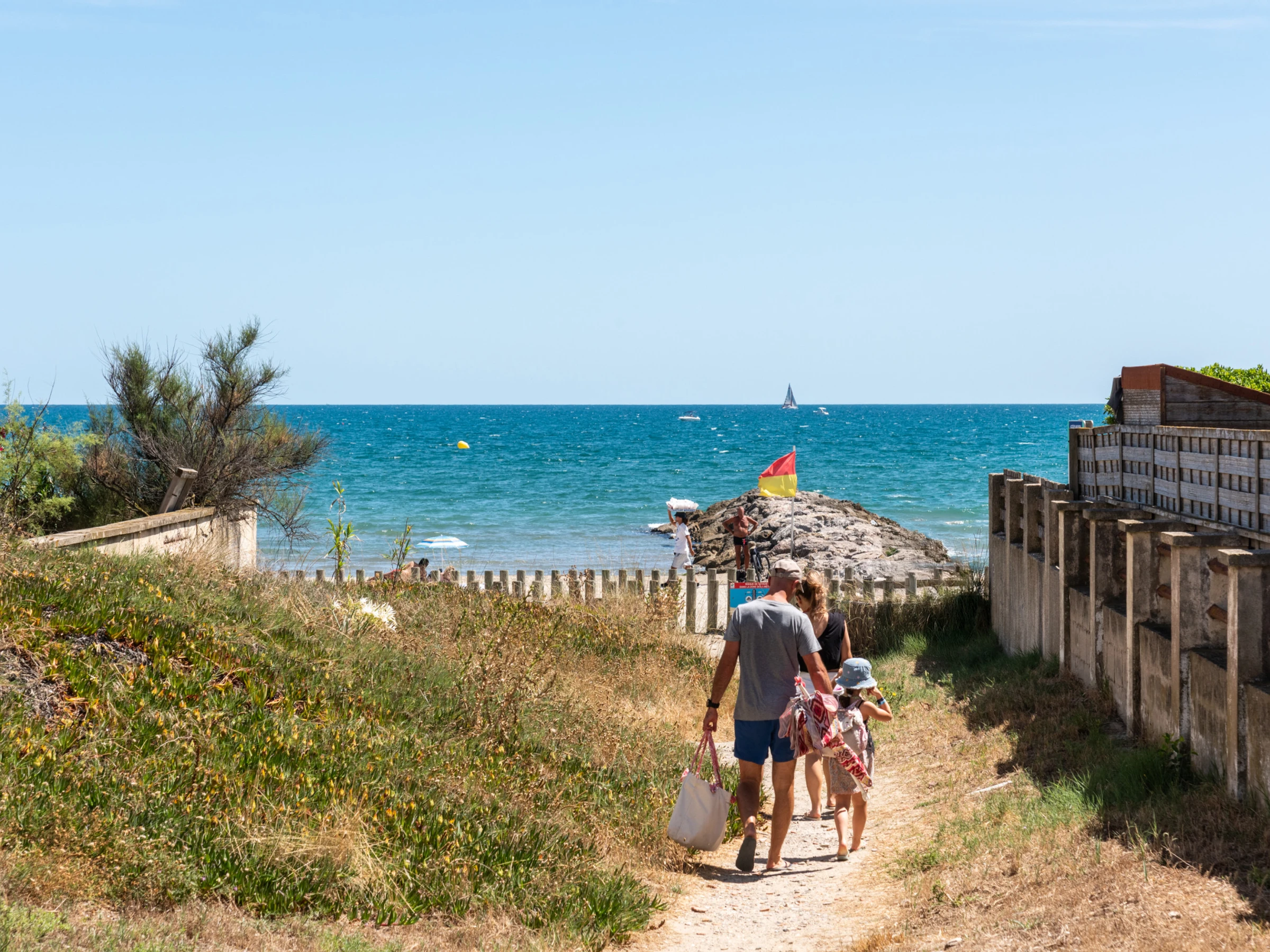 La playa está a dos pasos. Tal vez sean los primeros por la mañana en la playa haciendo paddle, nadando o los últimos por la noche relajándose en la playa solo para ustedes, porque la casa está justo detrás, a dos pasos.
