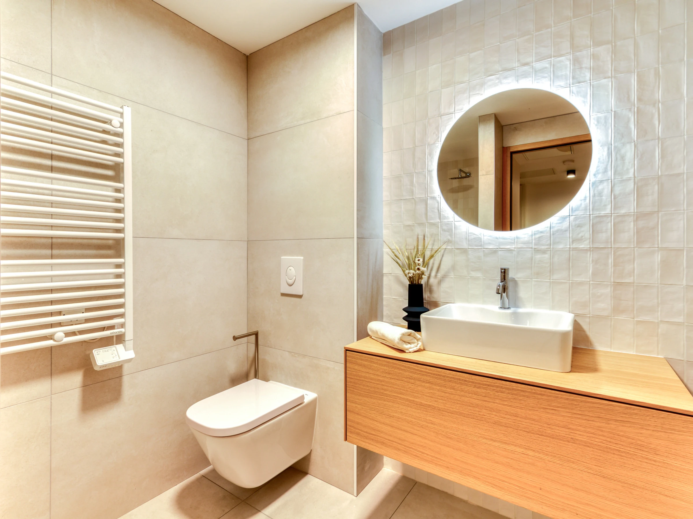 Los apartamentos son completamente nuevos (2025). Revestimientos de suelo de granito. Persianas eléctricas. Ventanales de aluminio con doble acristalamiento. Aire acondicionado reversible. Internet WI-FI. Parking individual privado. Calentador de agua termodinámico. Cargador de coche eléctrico, Lavadora colectiva en el sótano.