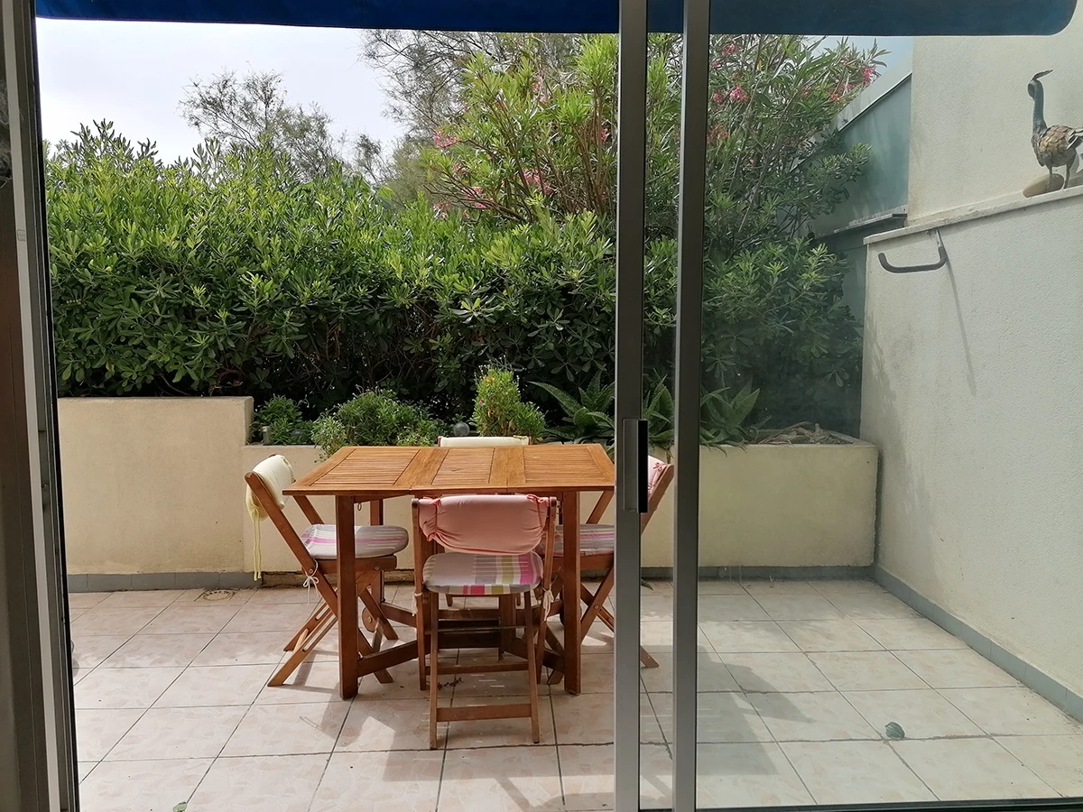 Bonito estudio ubicado en RCH, orientado al sureste, climatizado y equipado para 4 personas, tiene una gran terraza con vista al jardín de la residencia. Se compone de salón con sofá cama de 2 plazas y cama alta de 140, zona de cocina amueblada, baño con aseo. Cerca del puerto y sus comercios ya 5 minutos andando de la playa.