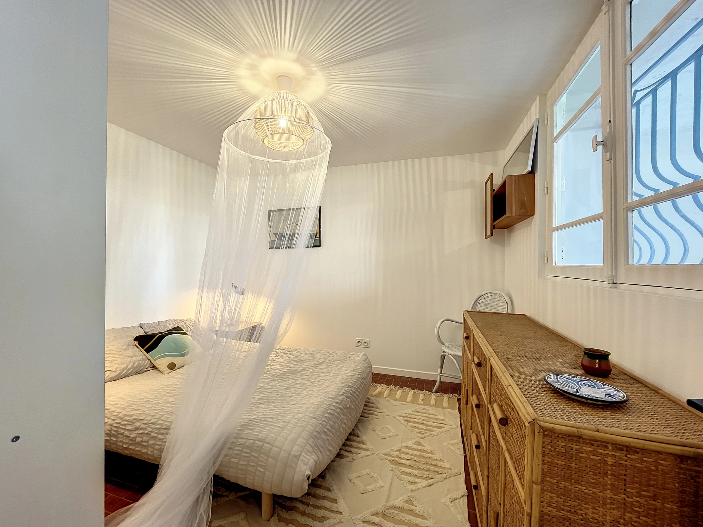 Apartamento tipo F3 con todas las comodidades en RCH en la playa. Completamente reformado en 2022, consta de salón con cocina y sofá no convertible, dormitorio con cama de matrimonio y dormitorio camarote grande con 2 literas y dos camas nido, baño con ducha doble, aseo independiente, terraza cubierta y gran terraza descubierta sobre la arena Parking. Armoniosamente decorado en un estilo bohemio chic.