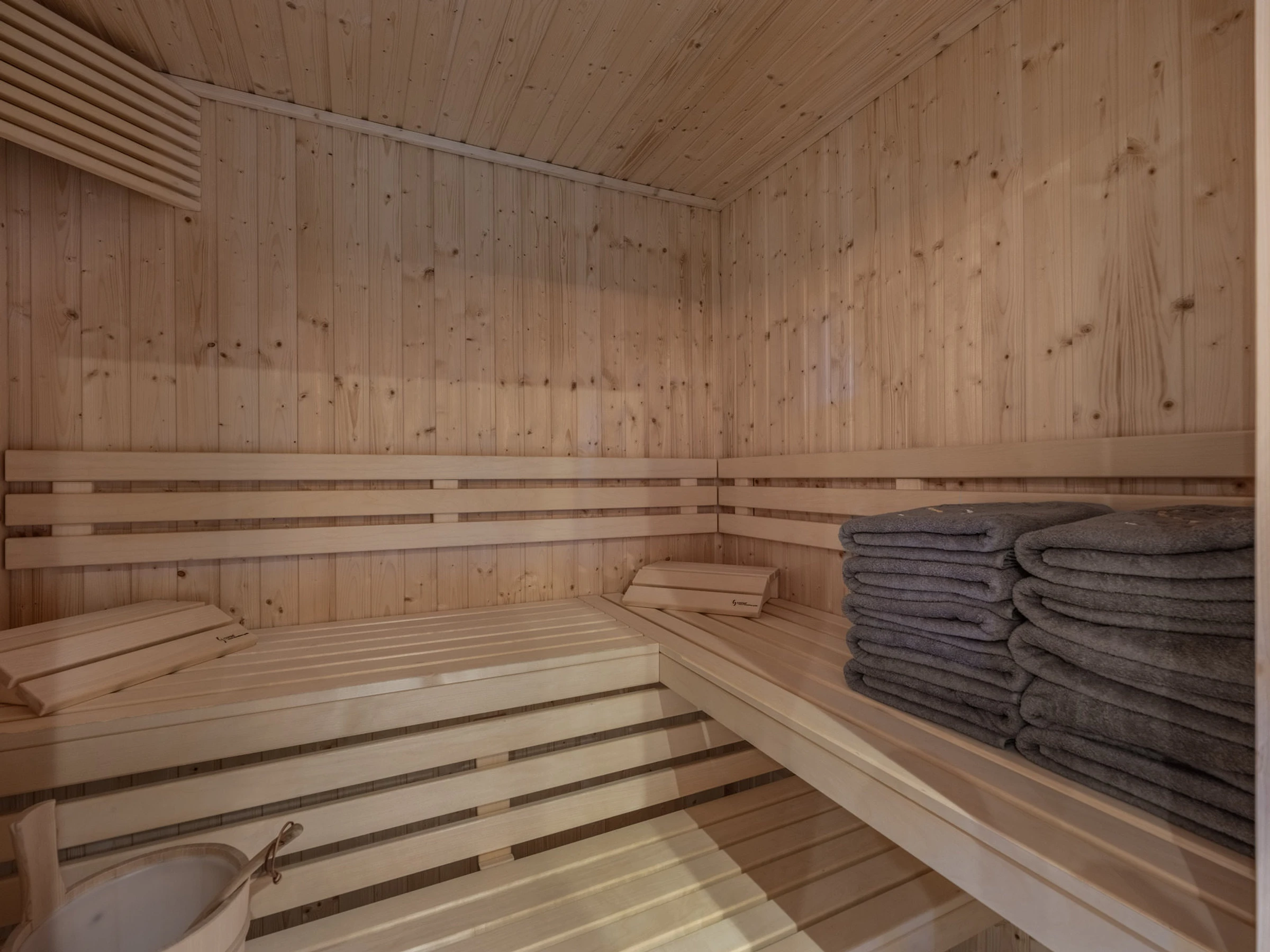 Las instalaciones de ocio del chalet harán las delicias de todos los ocupantes: piscina, sauna, hammam y sala de cine.