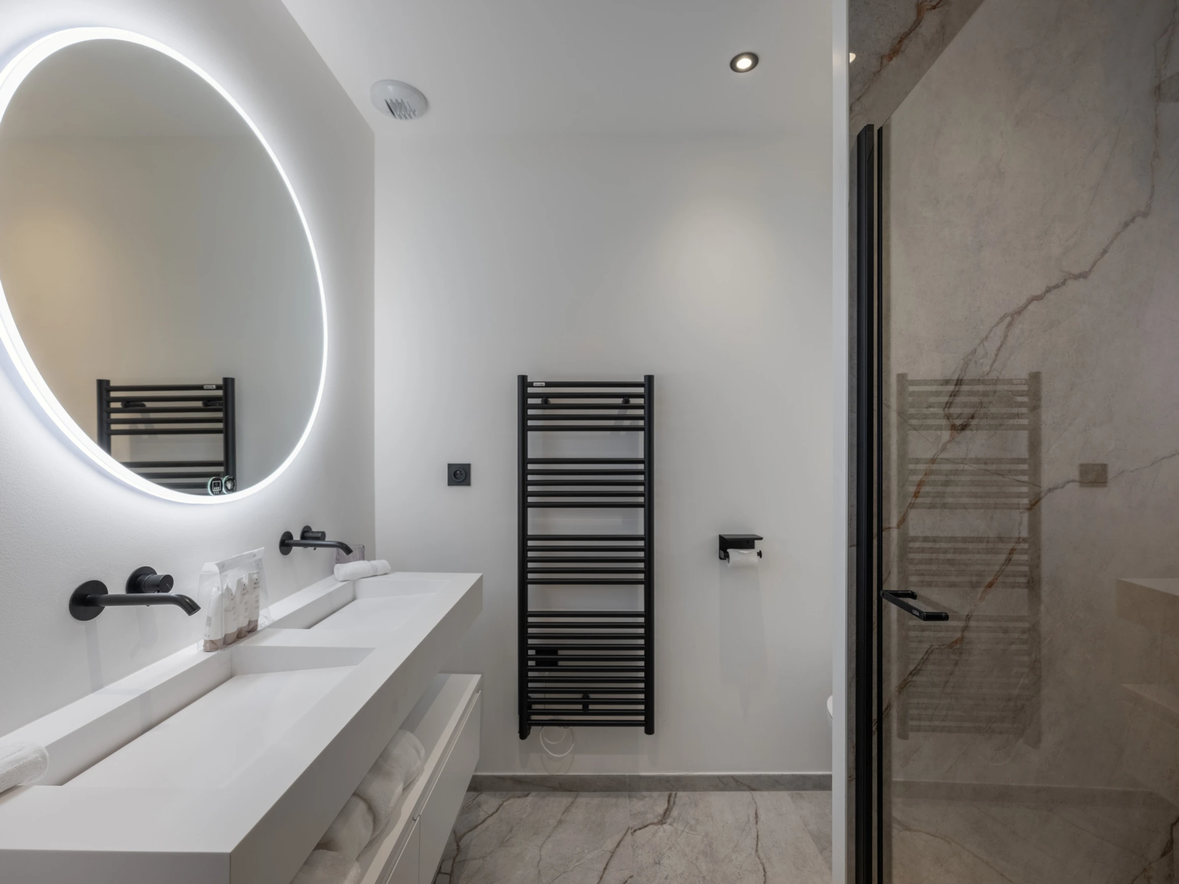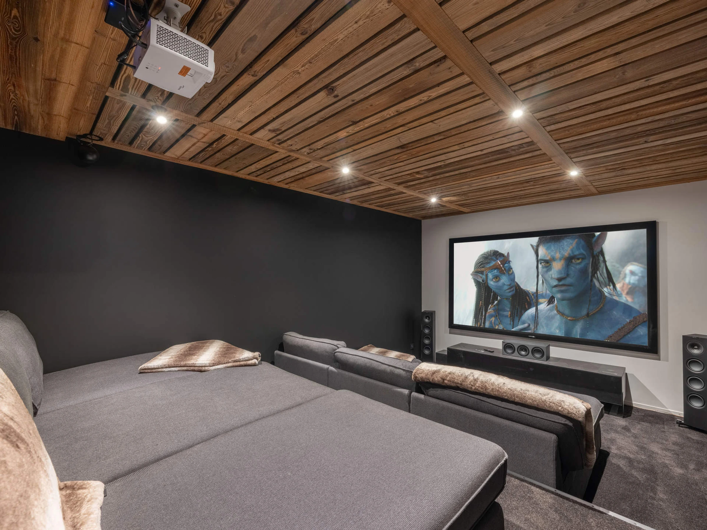 Las instalaciones de ocio del chalet harán las delicias de todos los ocupantes: piscina, sauna, hammam y sala de cine.