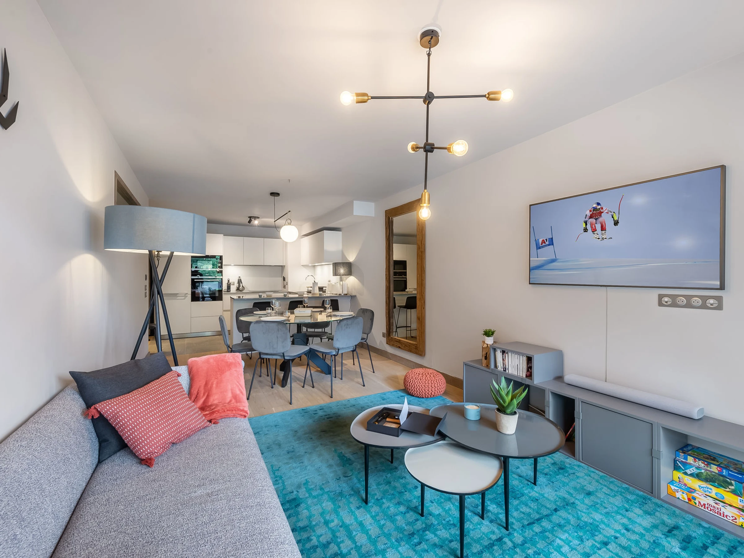 Apartamento nuevo de 75 m² en el barrio de Rochebrune. Disfrute de la tranquilidad de Rochebrune, cerca del centro del pueblo y del telesilla de Rochebrune. Perfectamente equipado, tiene capacidad para 4 adultos y 2 niños. Su decoración cálida y moderna le seducirá durante toda su estancia. Su balcón le permitirá disfrutar del sol de la mañana mientras contempla la finca Mont d'Arbois y el famoso Mont-Blanc.