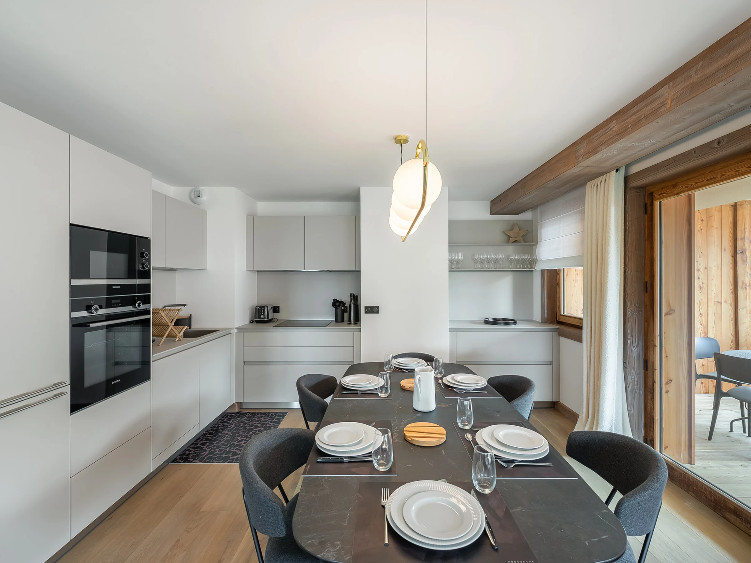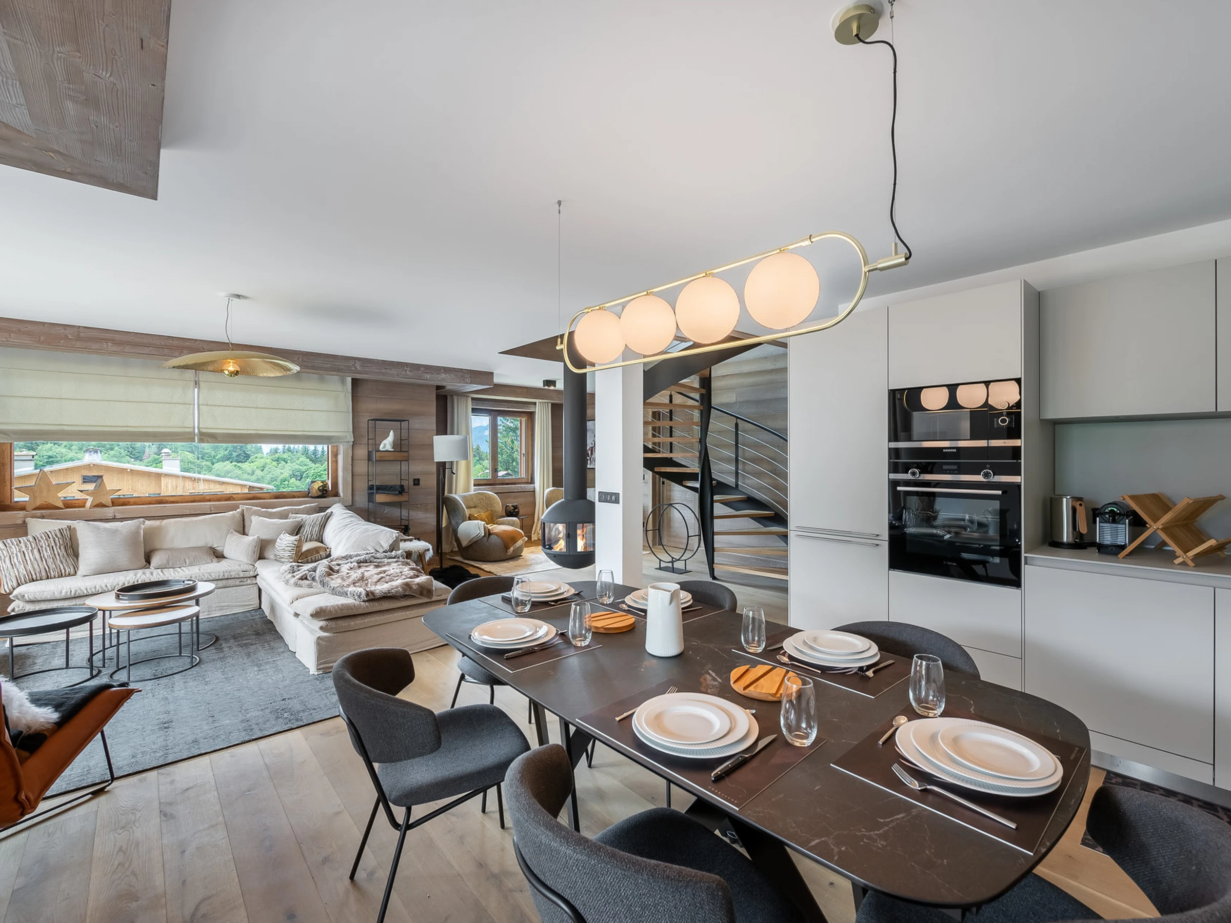 Nuevo apartamento dúplex de alta gama, ubicado en la última planta de la nueva residencia-chalet Ksar, en un entorno tranquilo con vistas a las montañas circundantes del Mont d'Arbois en Megève, con capacidad para 8 personas.