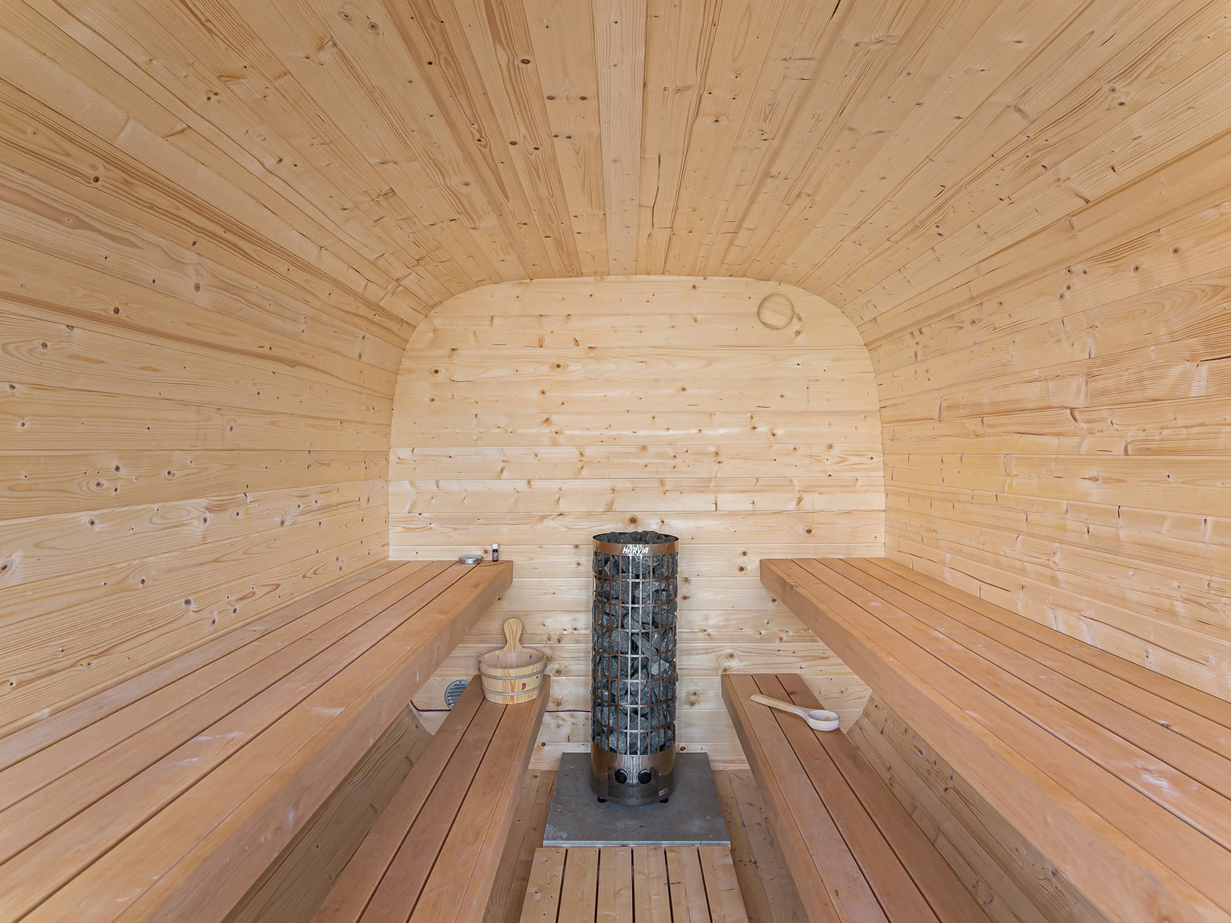 El chalet cuenta con numerosas instalaciones de ocio, como una piscina exterior climatizada (tanto en verano como en invierno), una sala de cine, una zona de juegos con futbolín y una sauna. Garaje con punto de carga eléctrica.