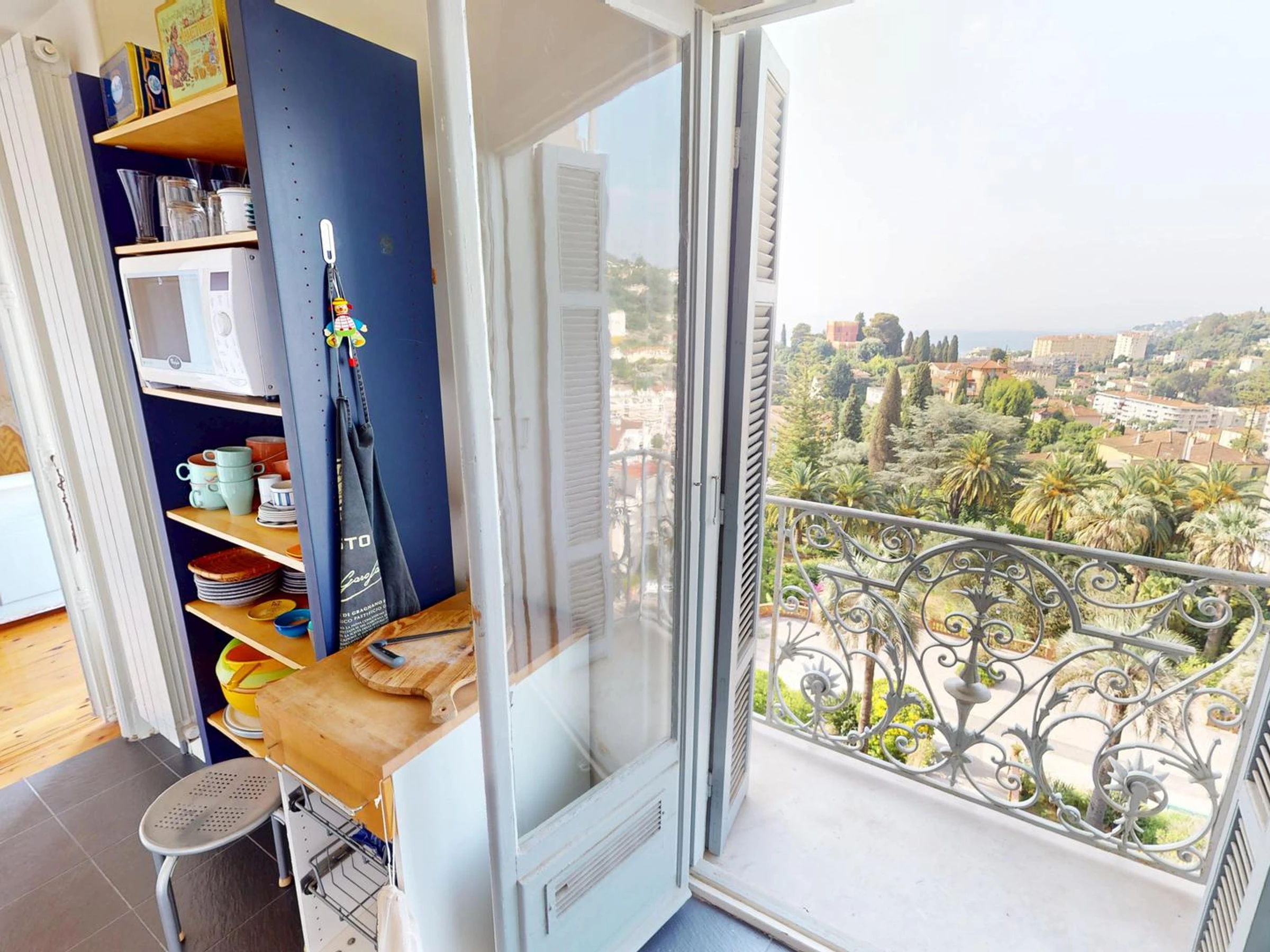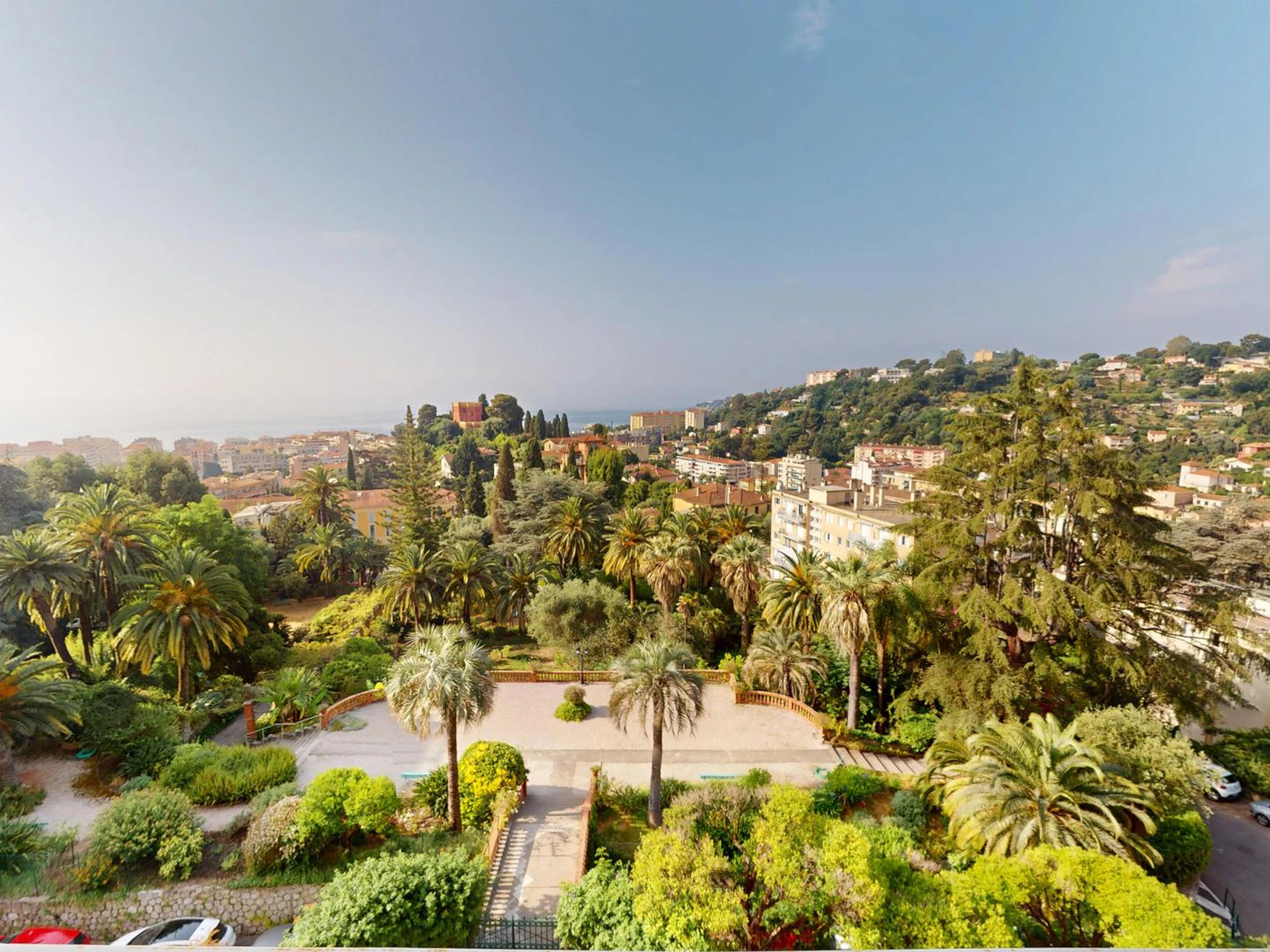 Precioso y espacioso apartamento de 2 dormitorios con vistas al mar en un antiguo palacio con conserje y parque, con vistas a la ciudad de Menton, a 10 minutos a pie del centro.