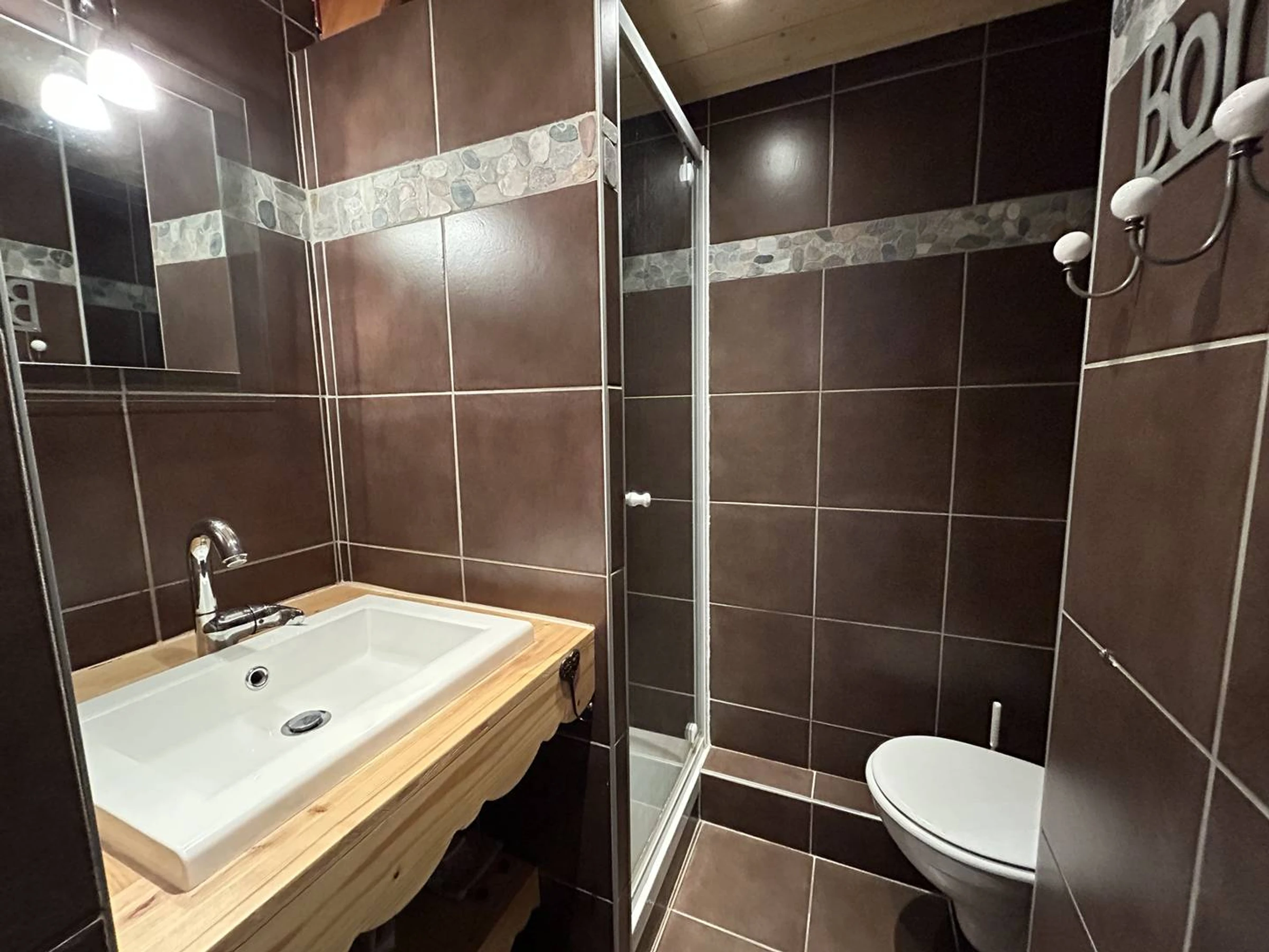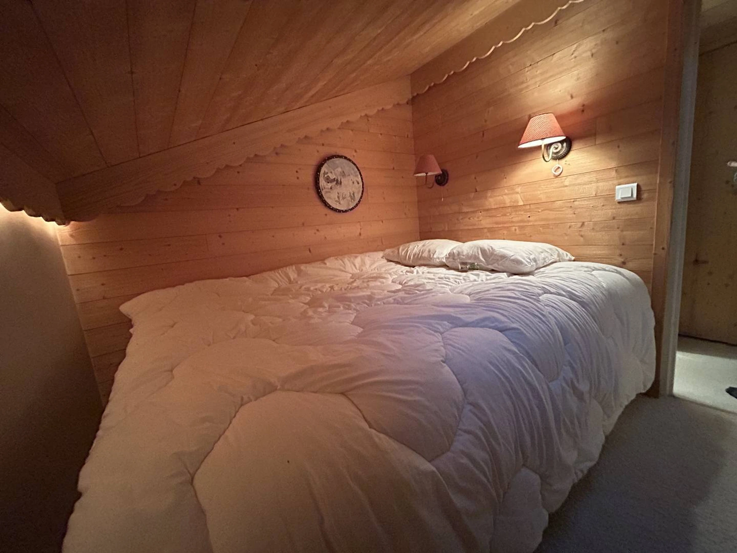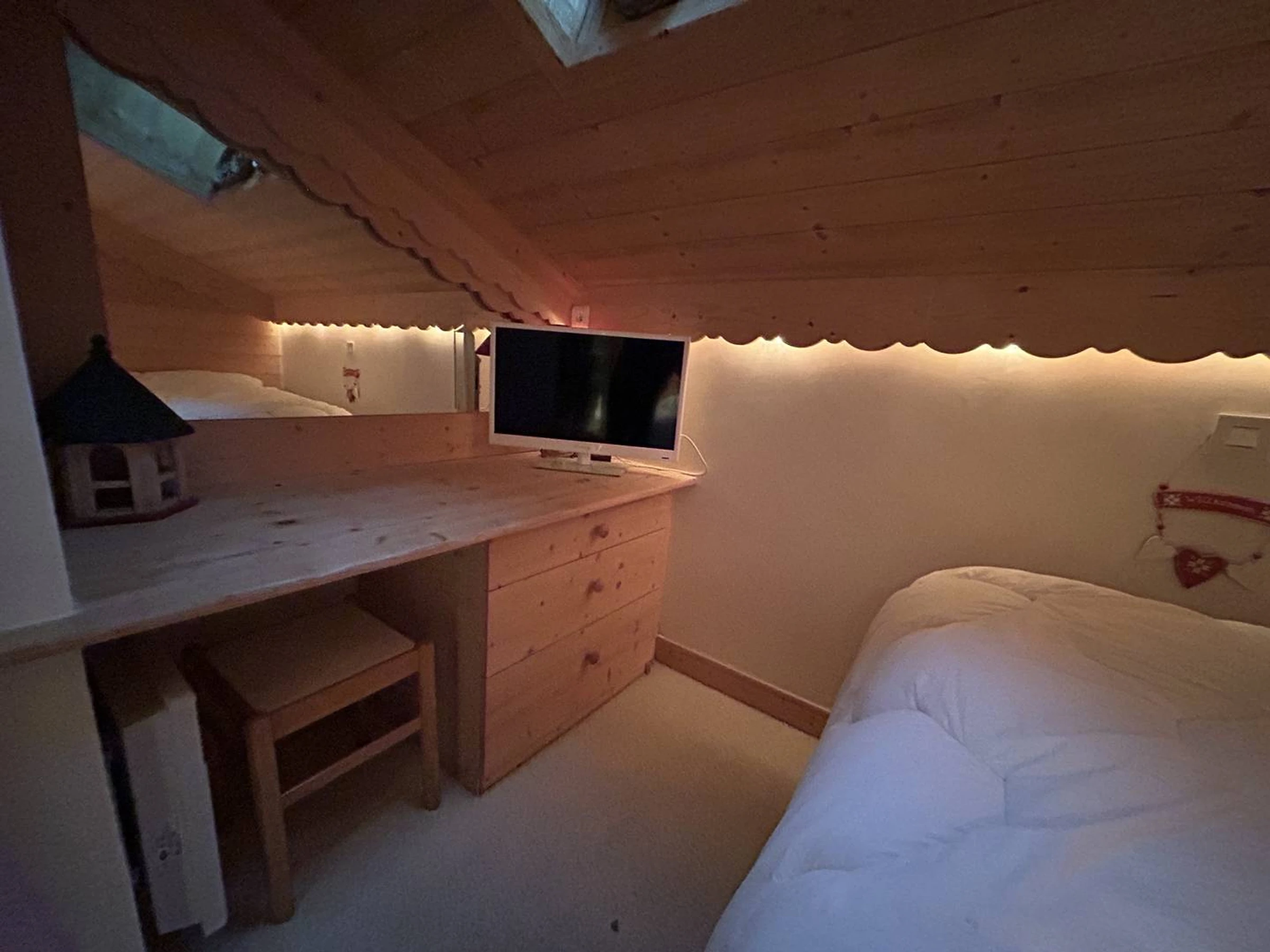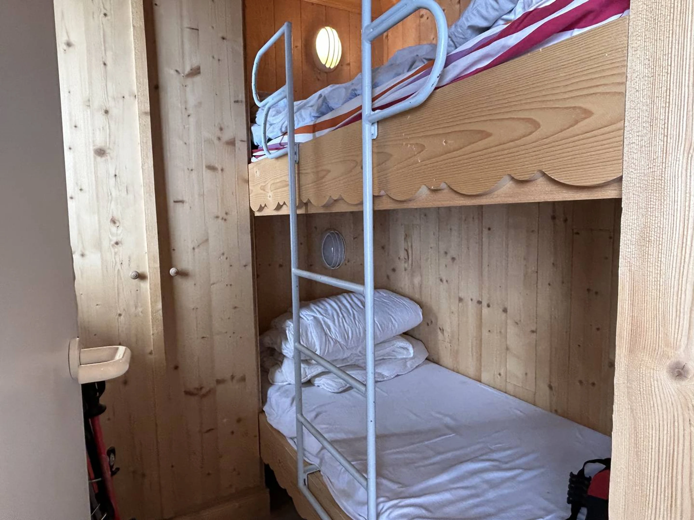 En la primera planta: un dormitorio en entreplanta (sin ventana y sin cerramiento) con techo muy inclinado (altura mínima de 80 cm a los pies de la cama). Un dormitorio abuhardillado con una cama doble (140 x 190 cm) y una claraboya. Un baño con bañera (sin WC). Guardaesquís y ascensor en la residencia.