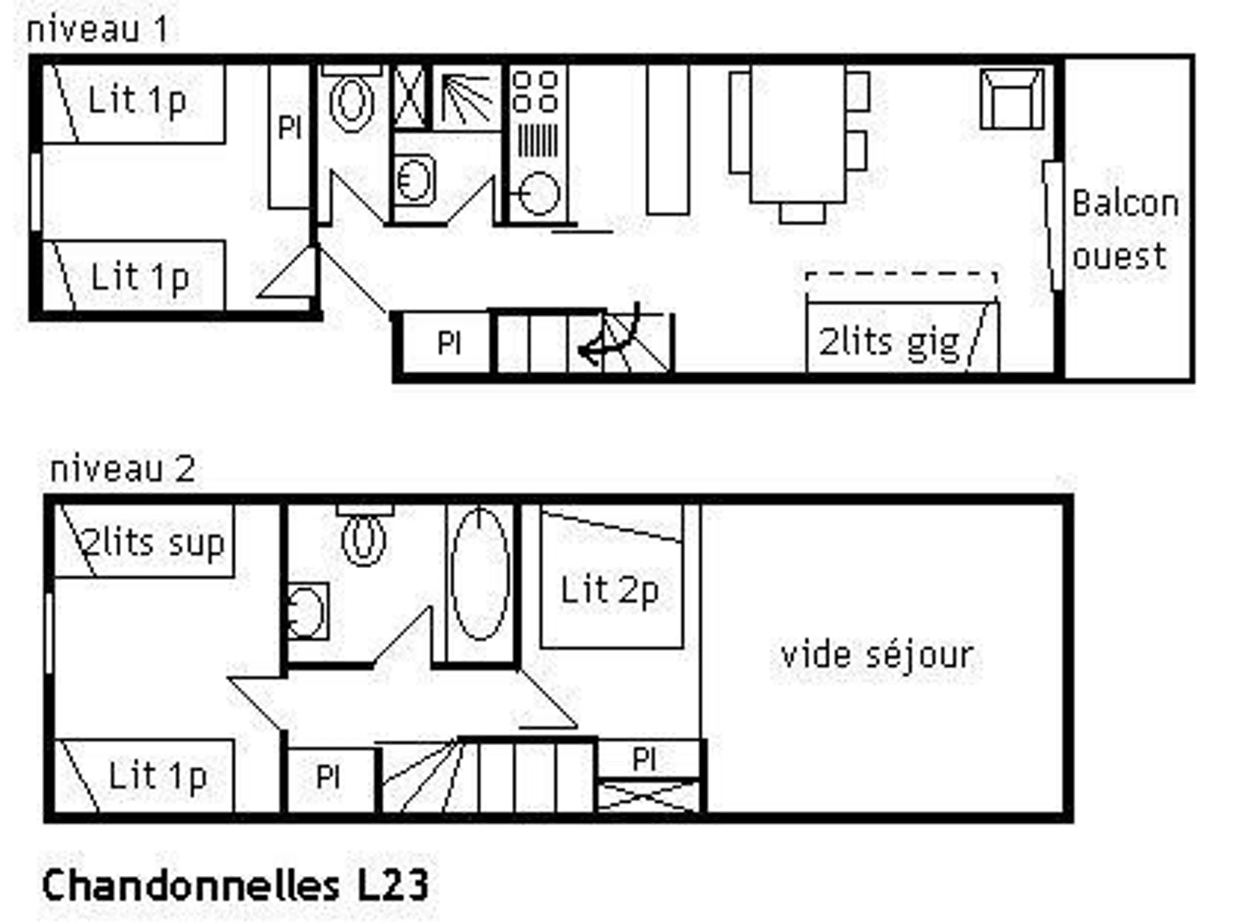 Este apartamento de vacaciones en Meribel está situado en el 3er piso con ascensor e incluye 1 sala de estar con televisión y 1 juego de camas plegables, una cocina equipada con lavavajillas, abierta al salón, un dormitorio con 2 camas individuales. , un cuarto de ducha y un aseo separado. La entreplanta se compone de un dormitorio abierto al salón con 1 cama doble, que da acceso a un baño con aseo y un dormitorio cerrado con un juego de literas además de una cama individual.