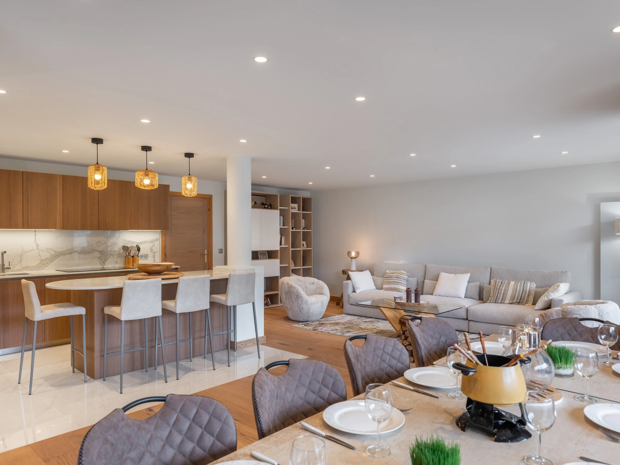- Cocina abierta totalmente equipada: frigorífico, horno, microondas, lavavajillas, placa de inducción, hervidor, cafetera, Nespresso, tostadora, batidora, raclette, exprimidor, lavadora secadora