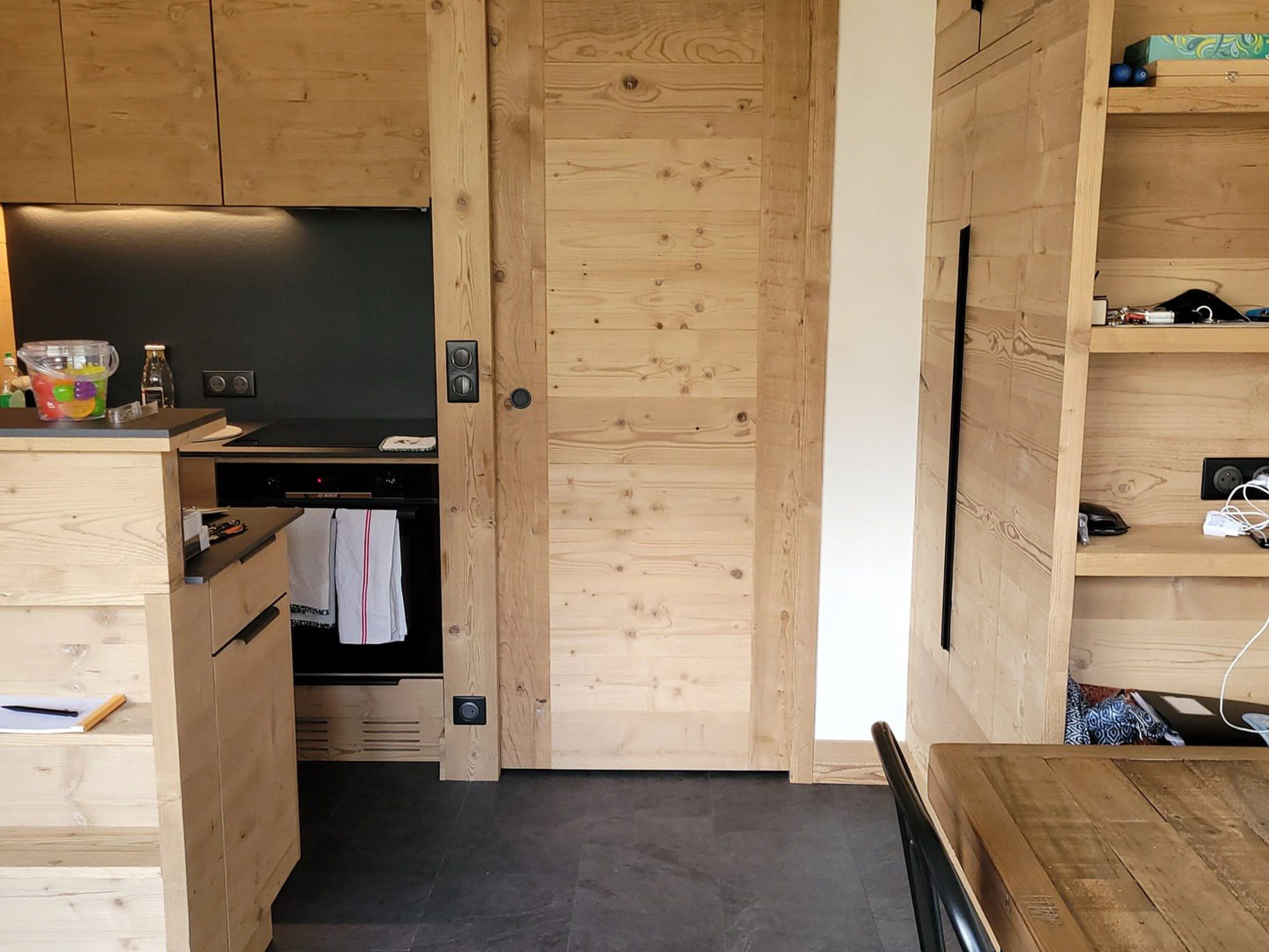 Cocina abierta equipada: lavavajillas, gran frigorífico, horno, microondas, máquina Nespresso, cafetera de filtro, 4 placas de inducción