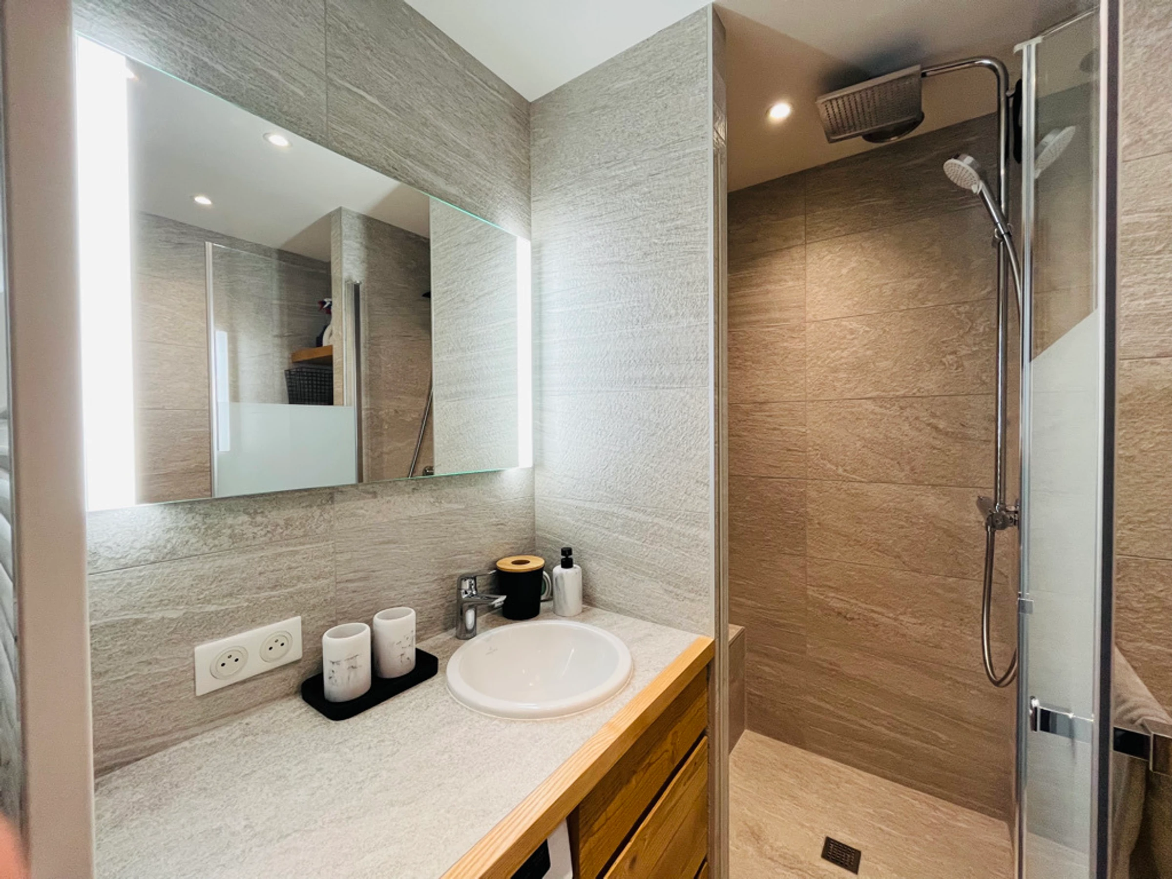 Baño con ducha, WC y lavadora