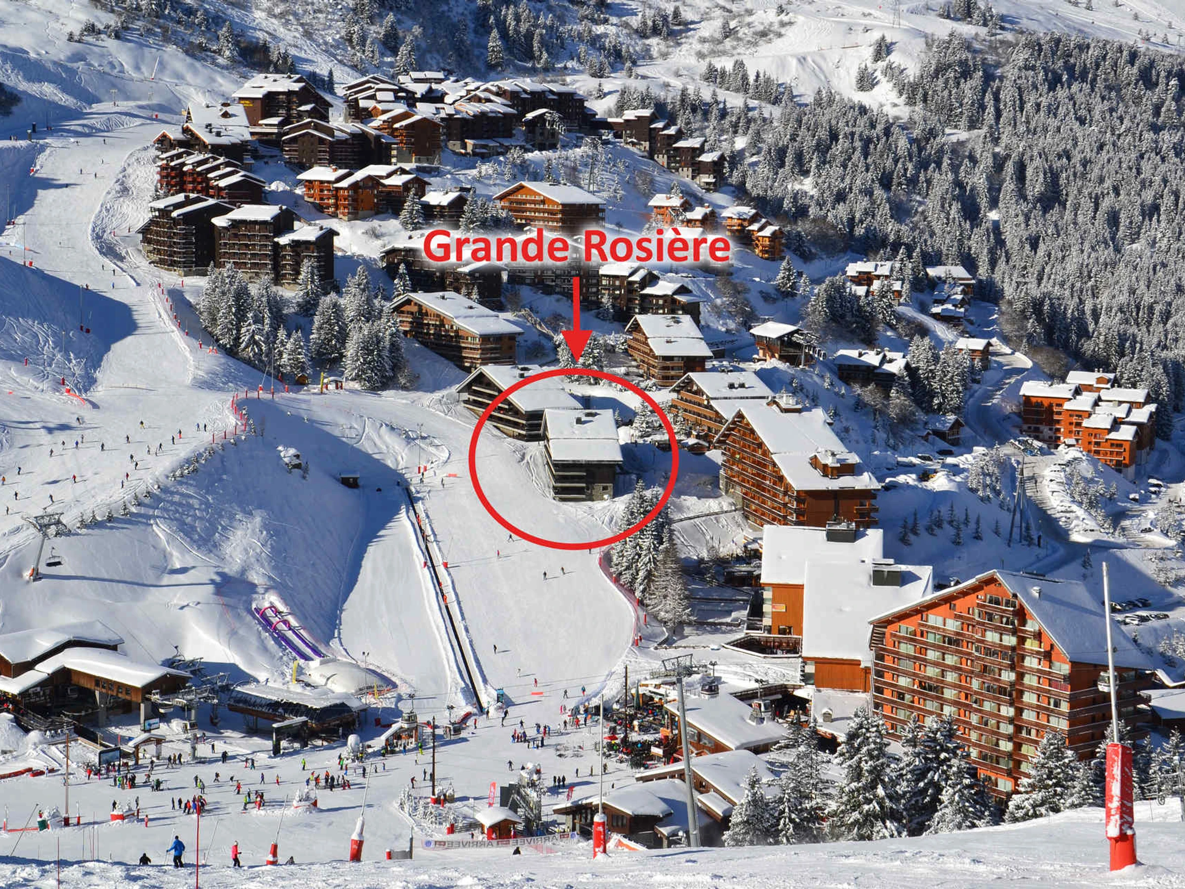 La residencia Grande Rosière se localiza al borde de las pistas y cerca del centro commercial de Mottaret (100m cogiendo las escaleras). El acceso a las pistas se hace directo saliendo del guardia esquí. Usted tiene que coger la pista azul "Little Himalaya" para llegar al punto de partida de las telecabinas.